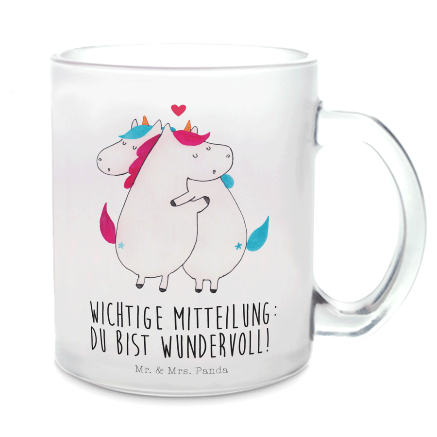 Für diese äußerst dringende Mitteilung muss immer Zeit sein. Man kann den Liebsten gar nicht oft genug sagen, dass sie wundervoll sind. Und wer sollte diese Botschaft besser transportieren als zwei kuschelnde Einhörner?