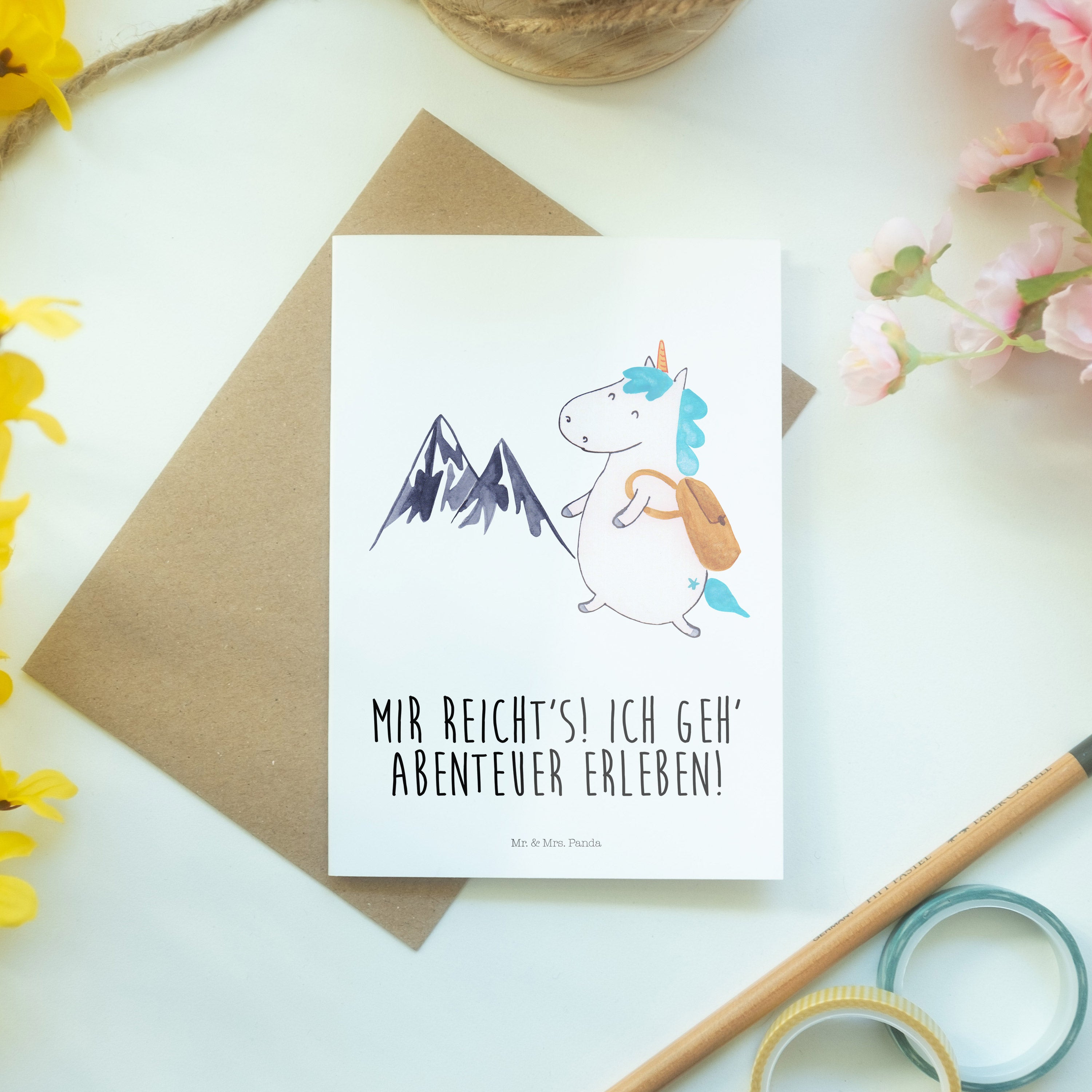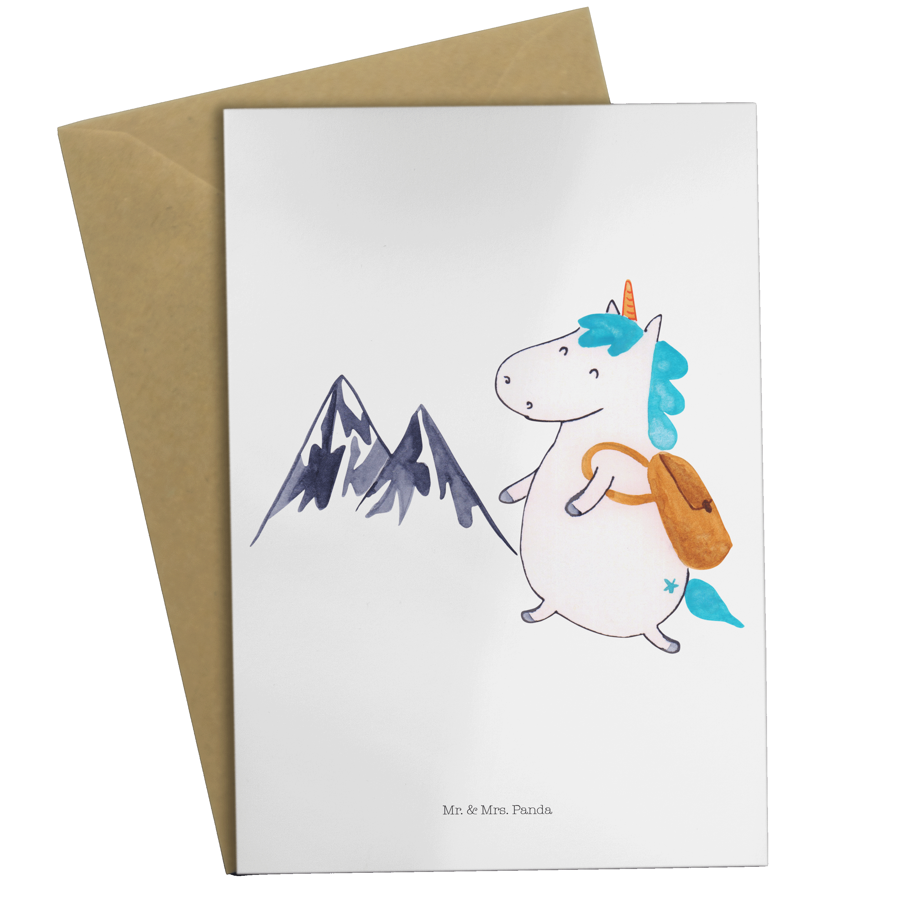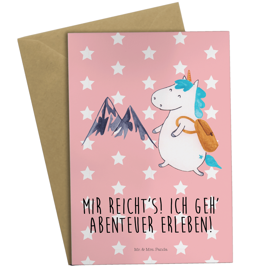 Grußkarte Einhorn Bergsteiger - mit Spruch - Rot Pastell