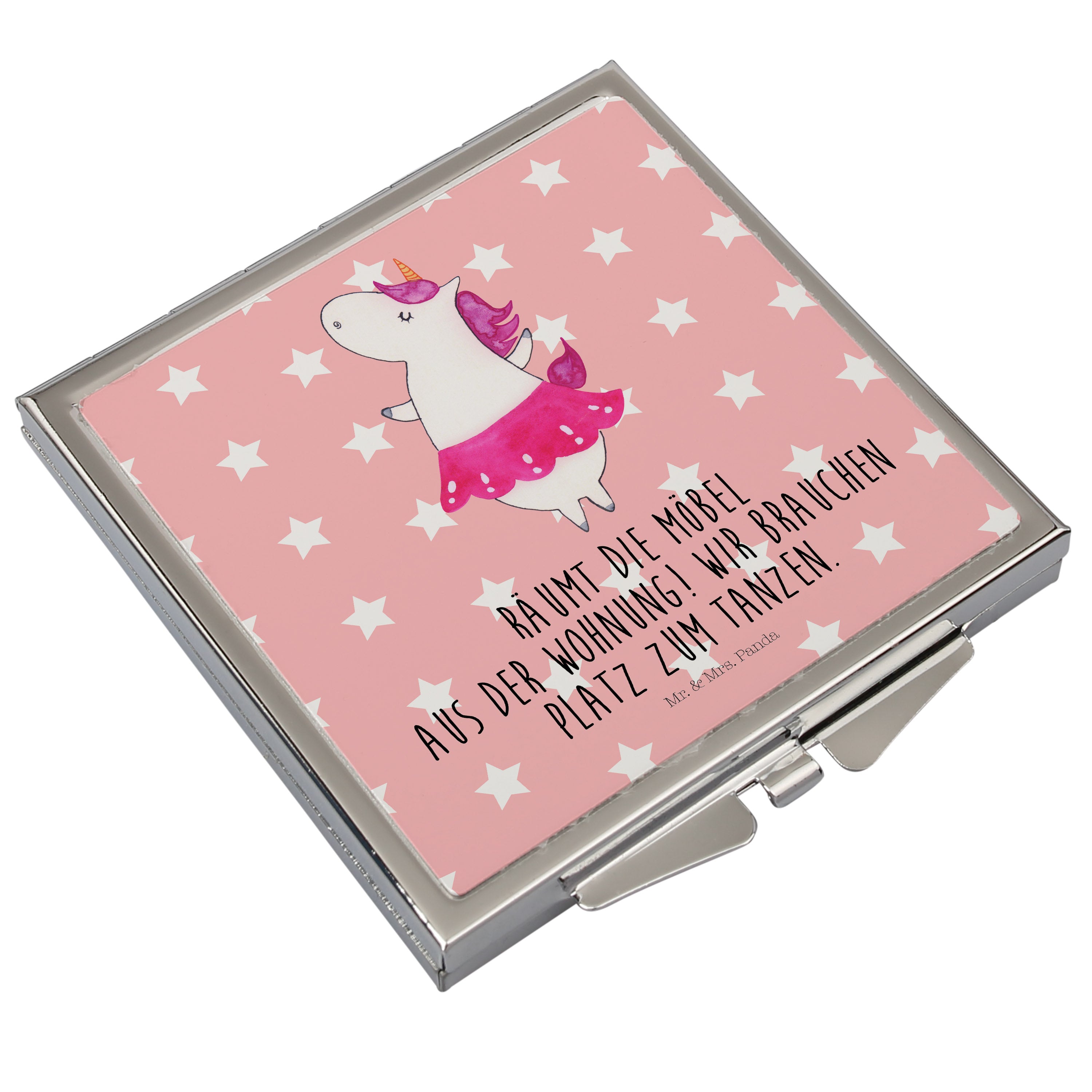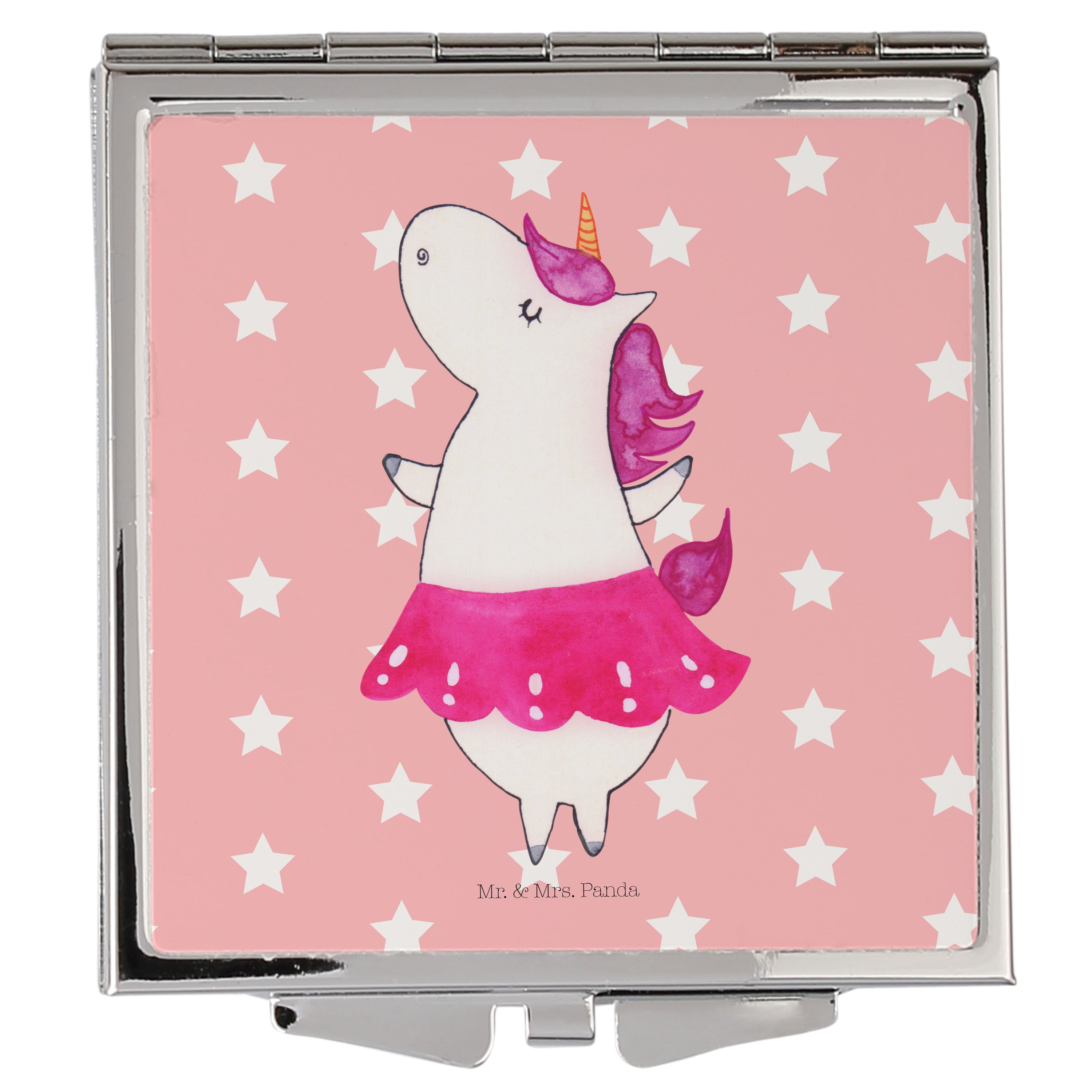 Handtaschenspiegel quadratisch Einhorn Ballerina - mit Spruch - Rot Pastell