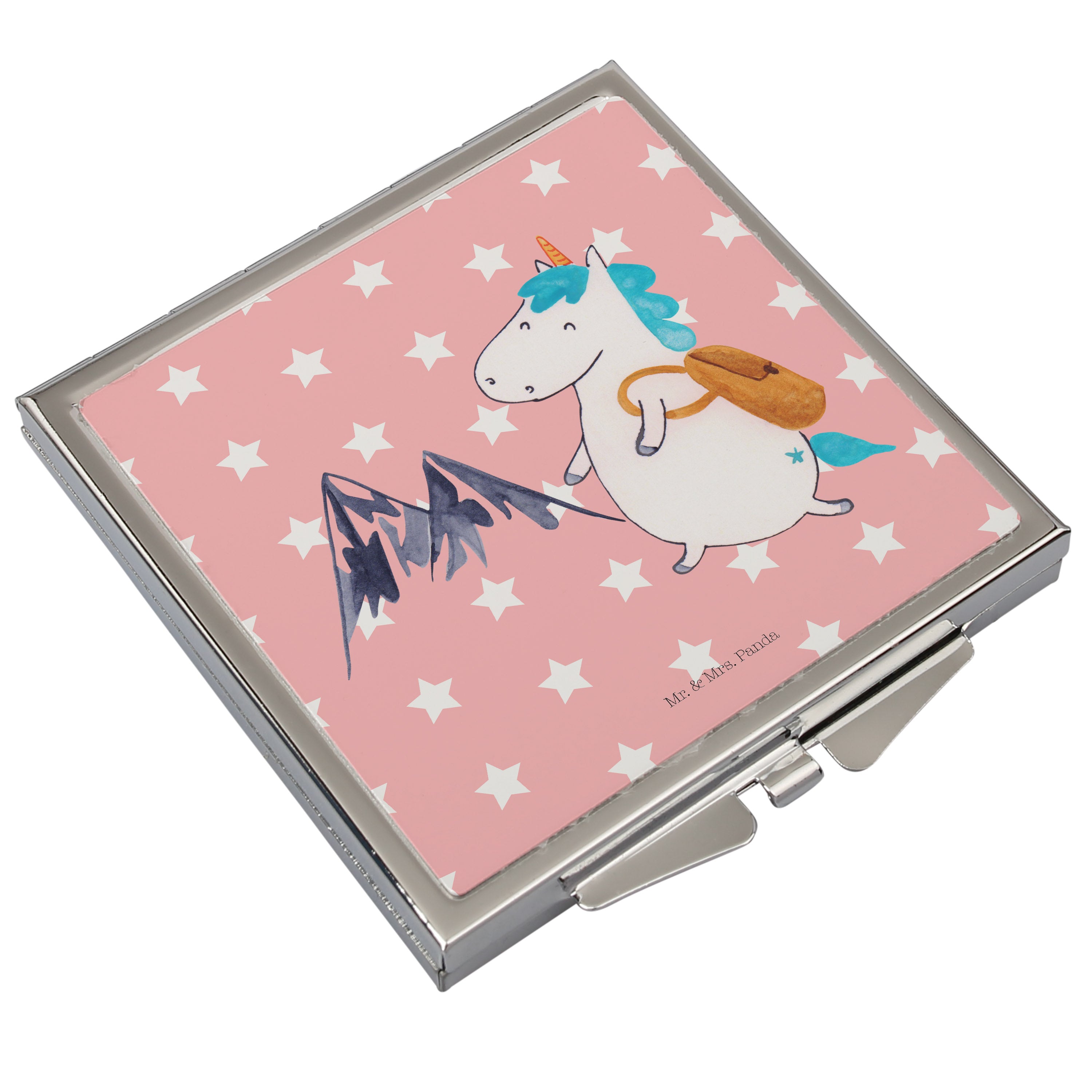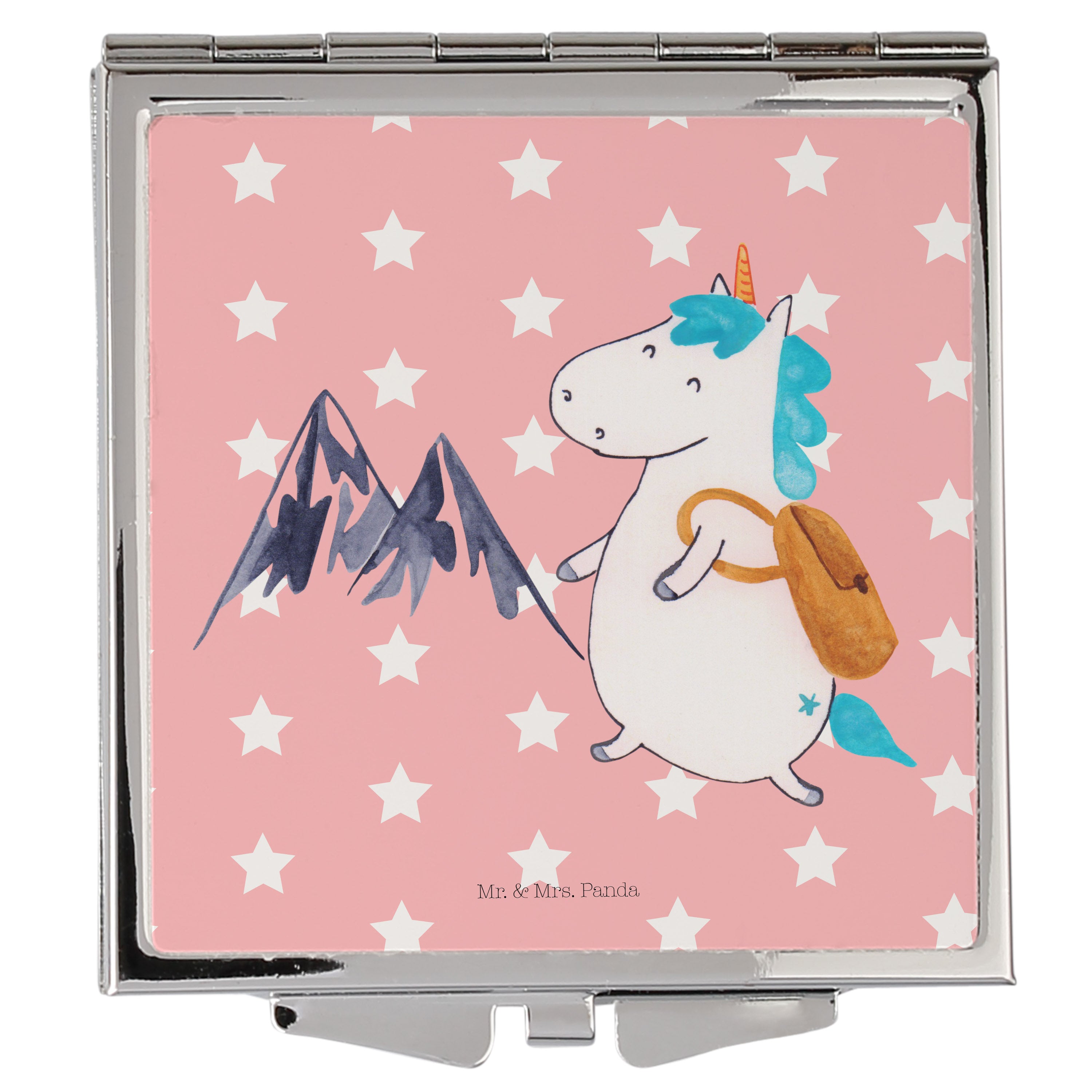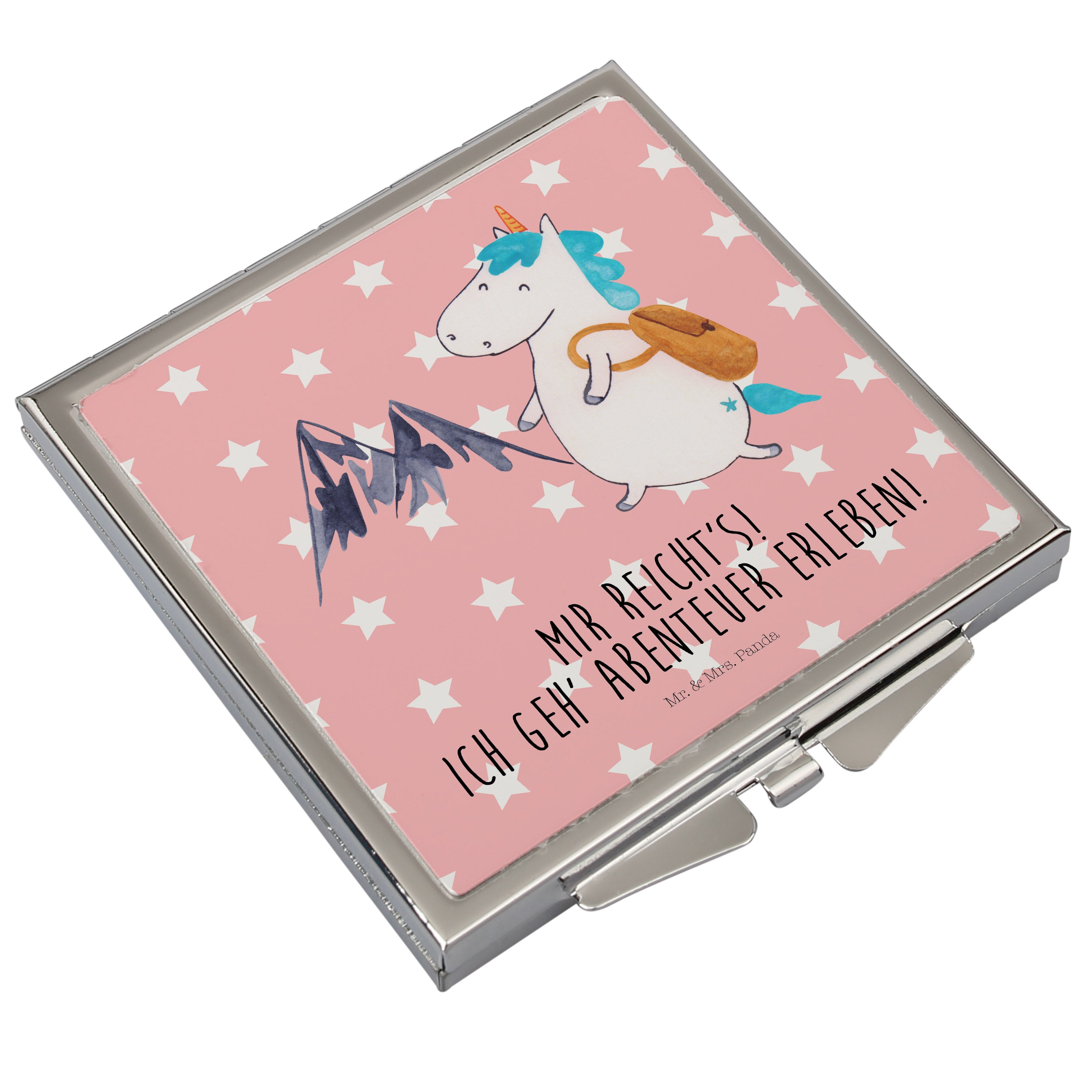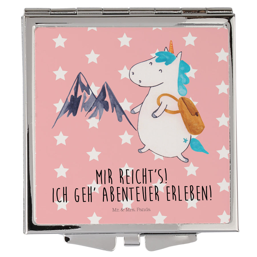 Handtaschenspiegel quadratisch Einhorn Bergsteiger - mit Spruch - Rot Pastell