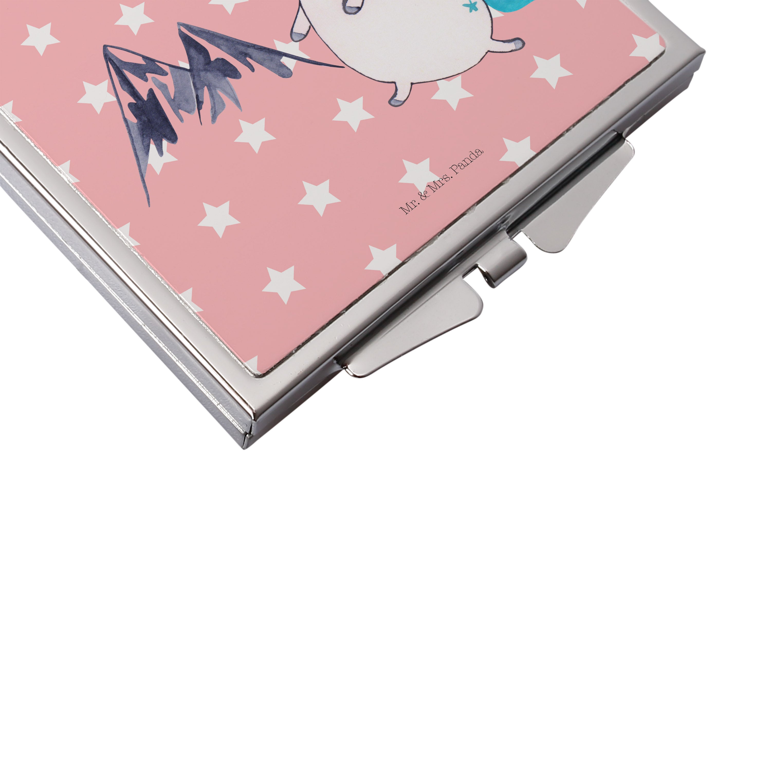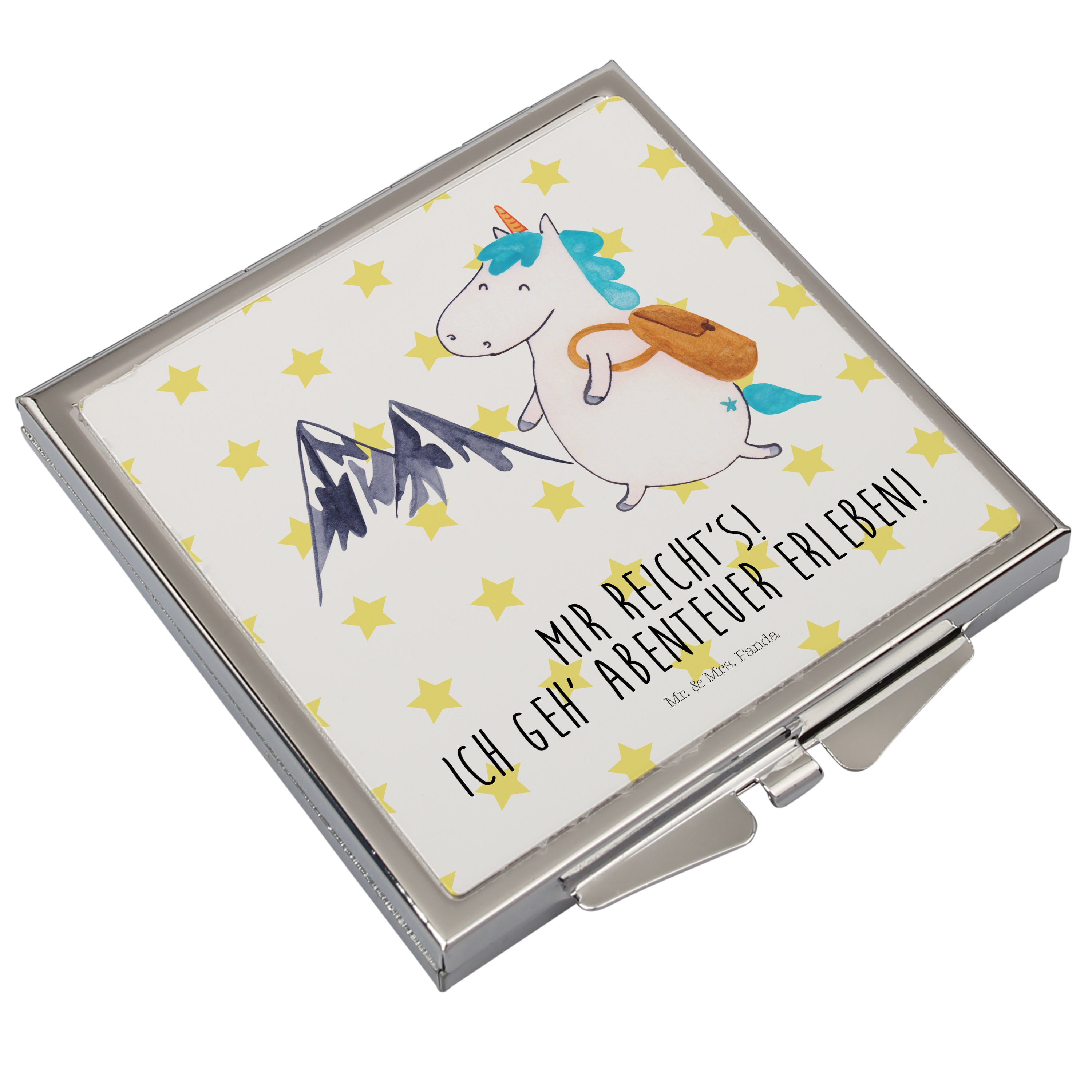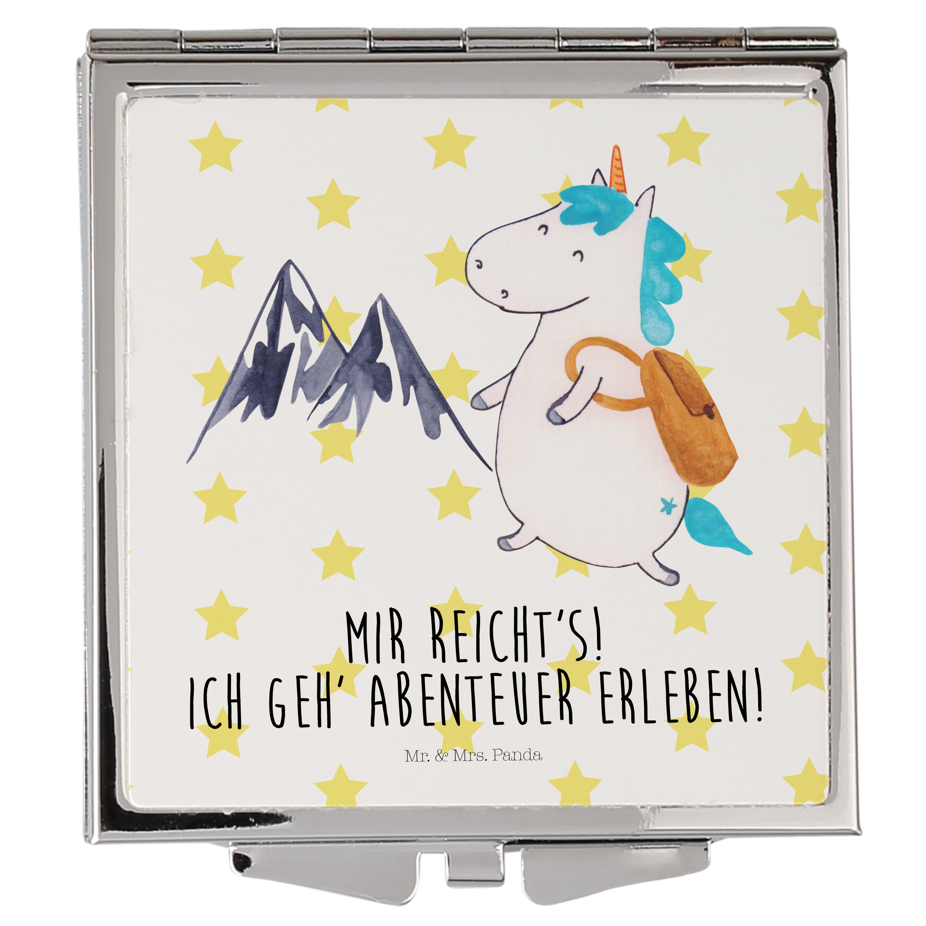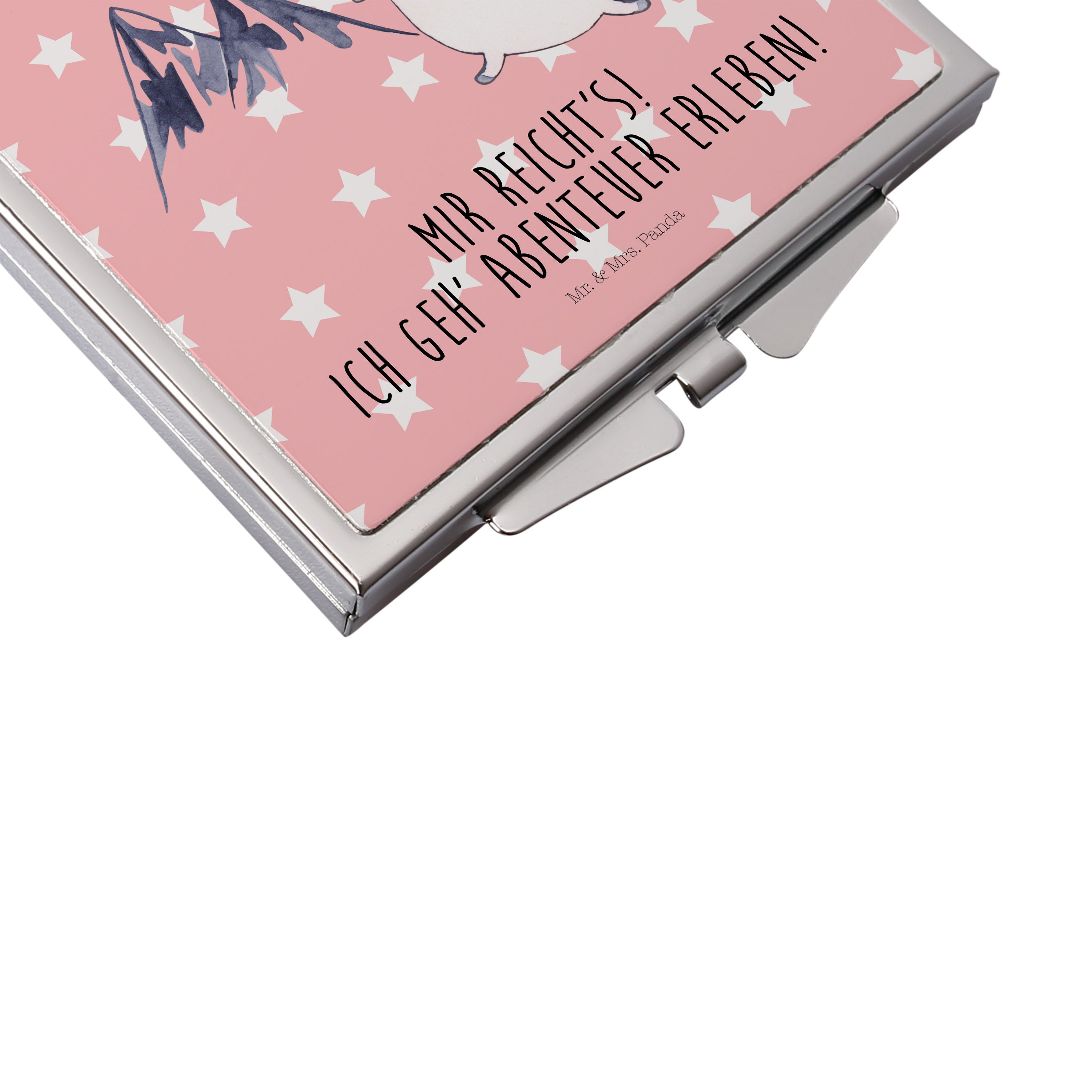 Handtaschenspiegel quadratisch Einhorn Bergsteiger - mit Spruch - Rot Pastell