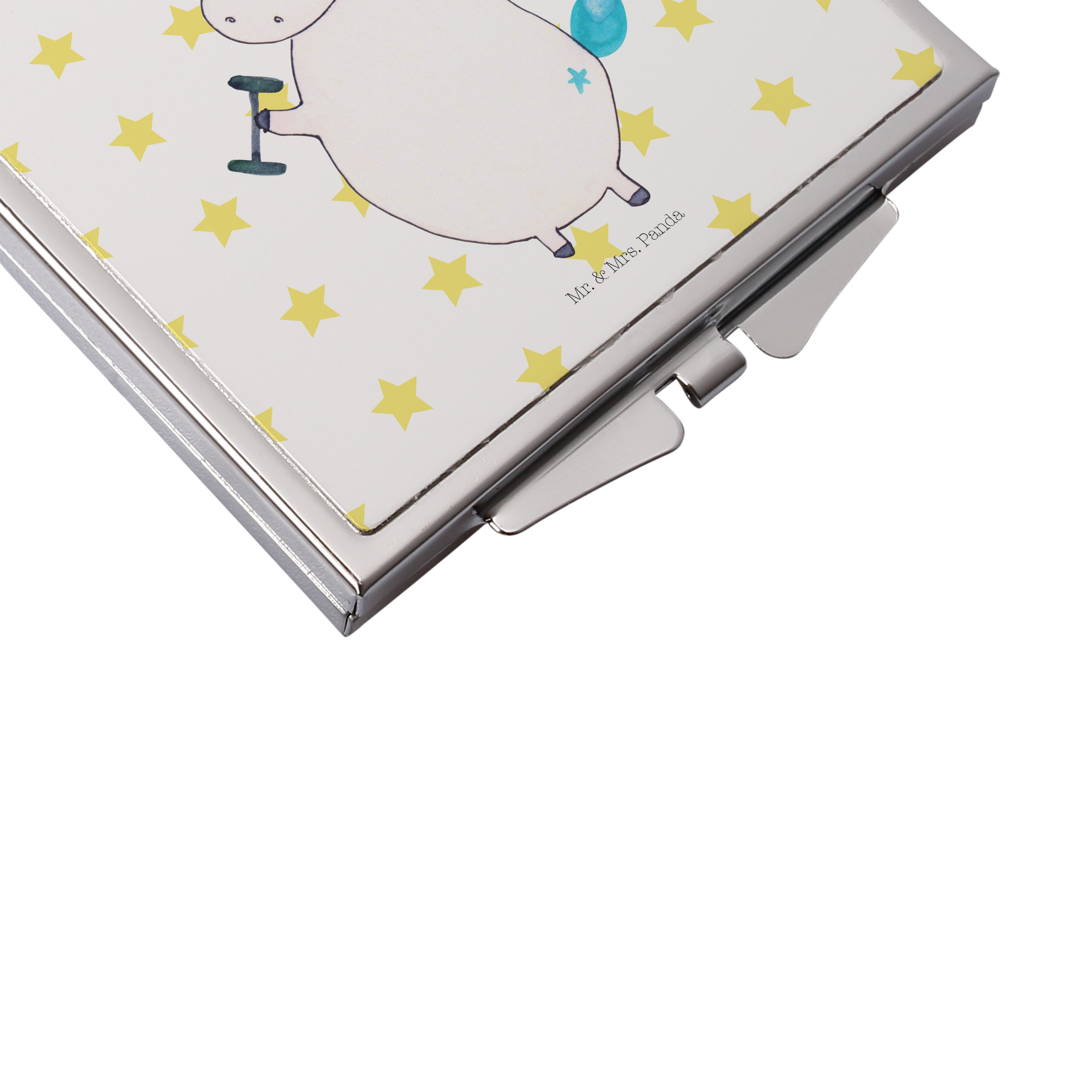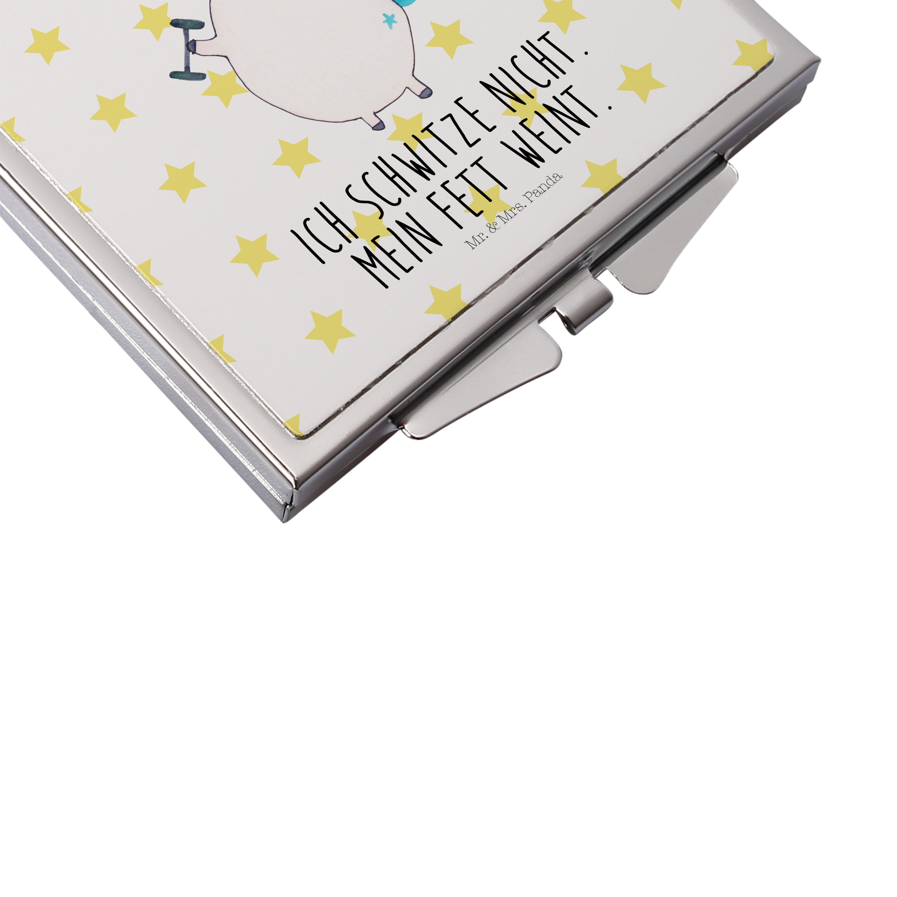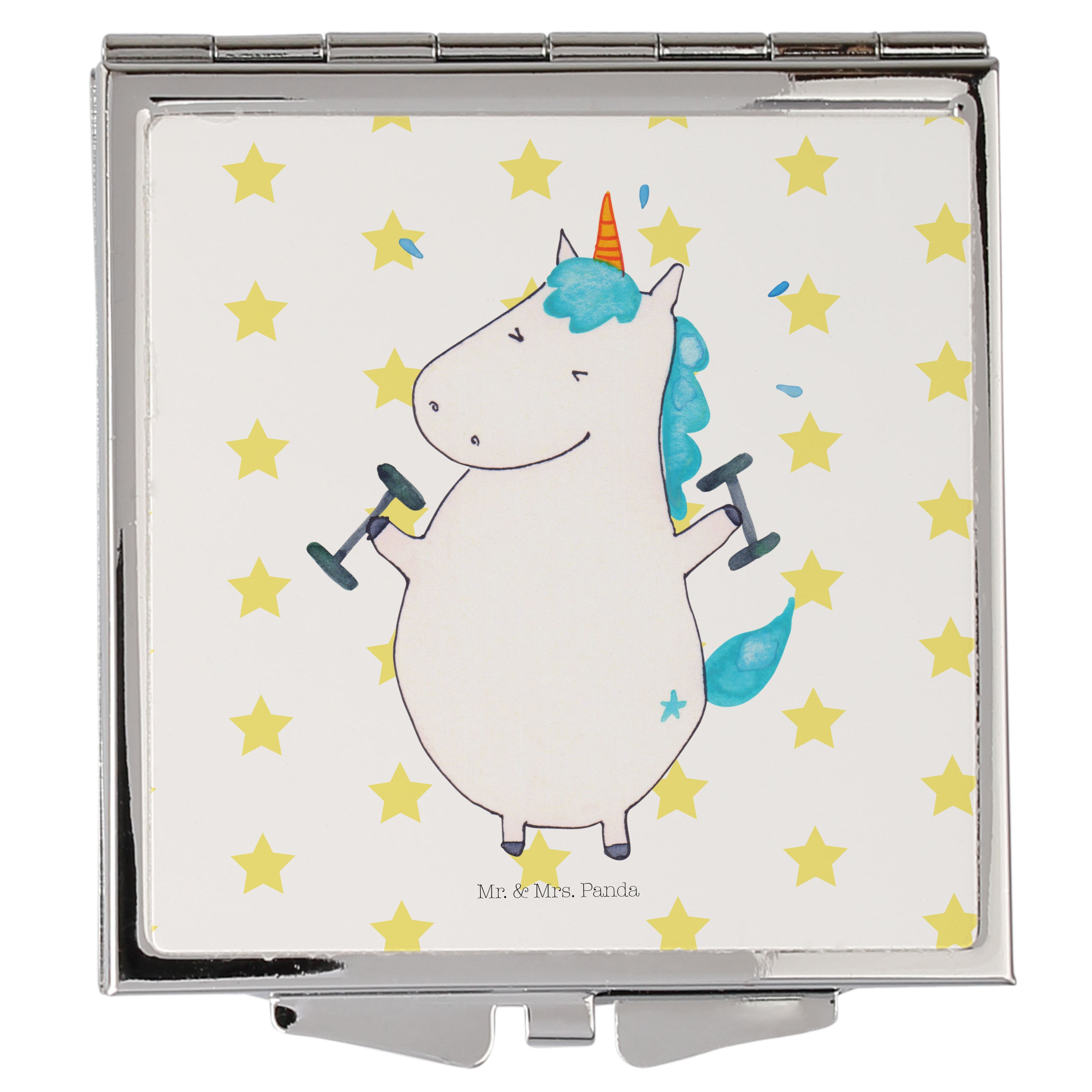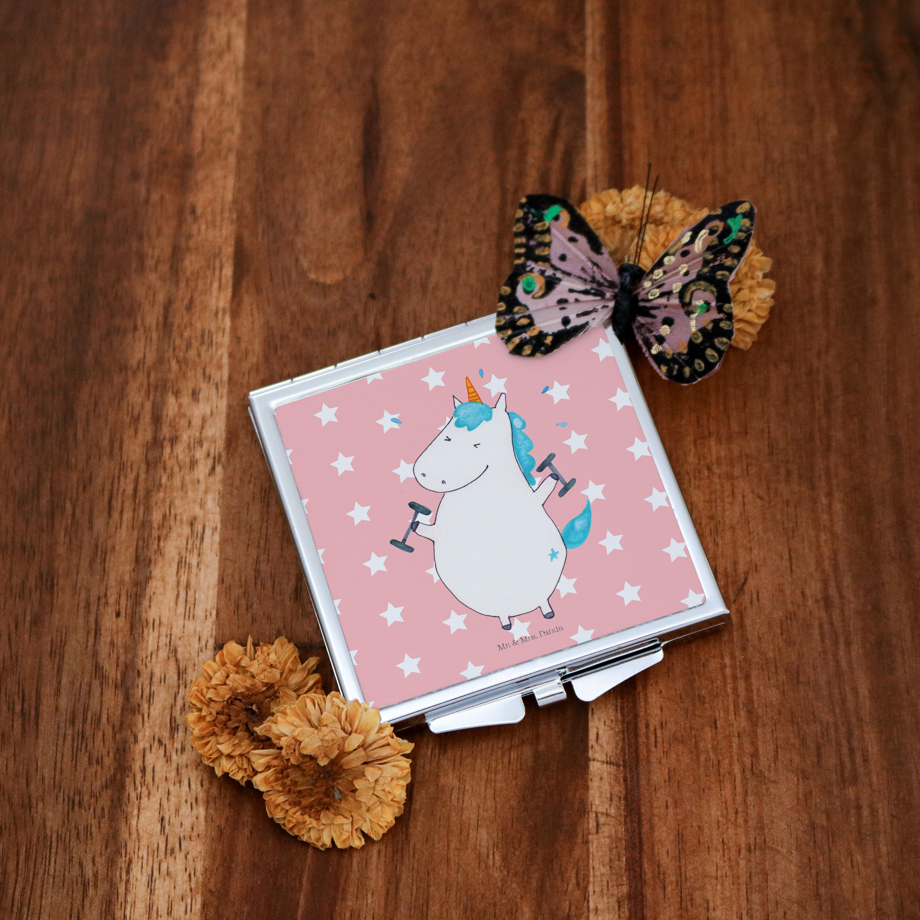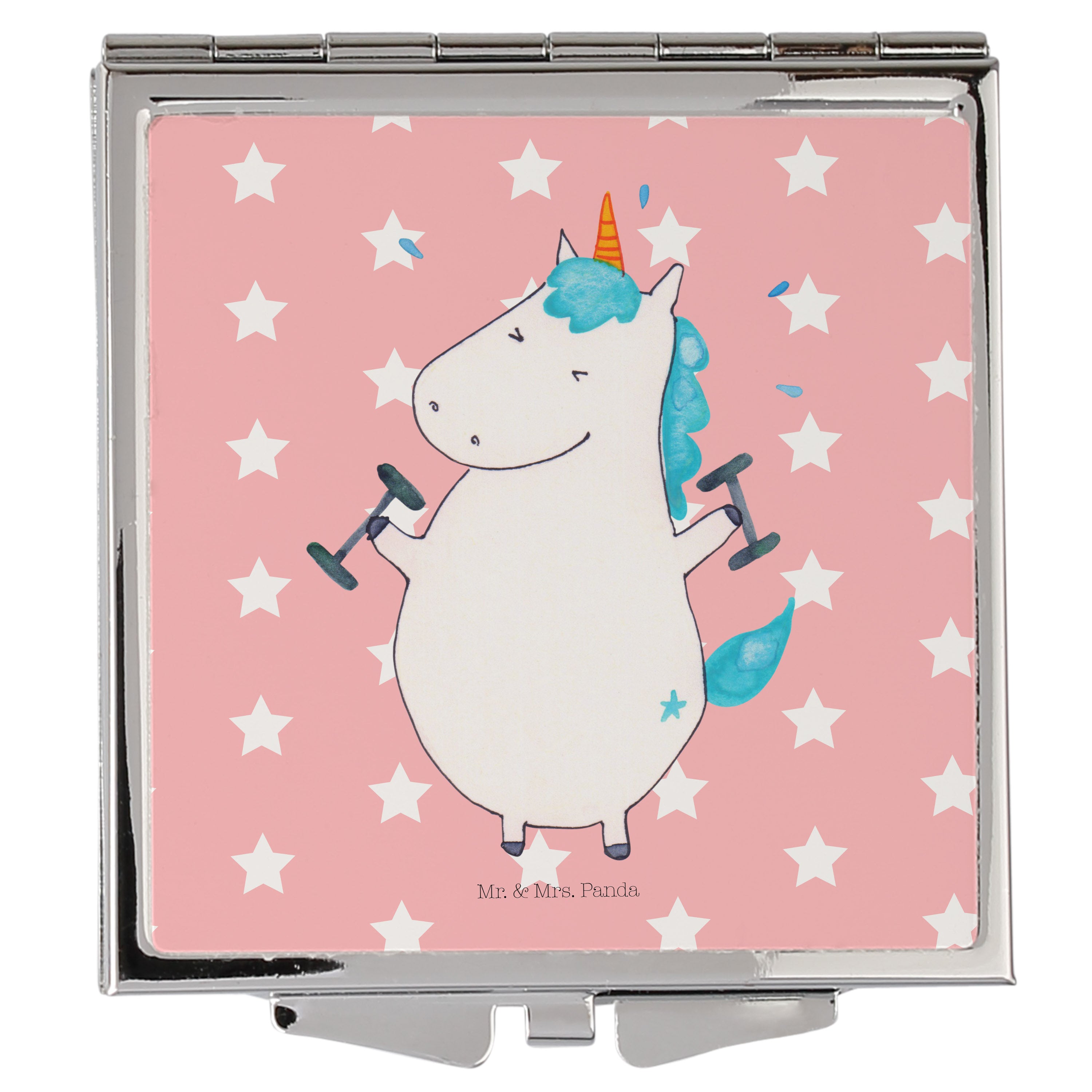 Handtaschenspiegel quadratisch Einhorn Fitness - mit Spruch - Rot Pastell