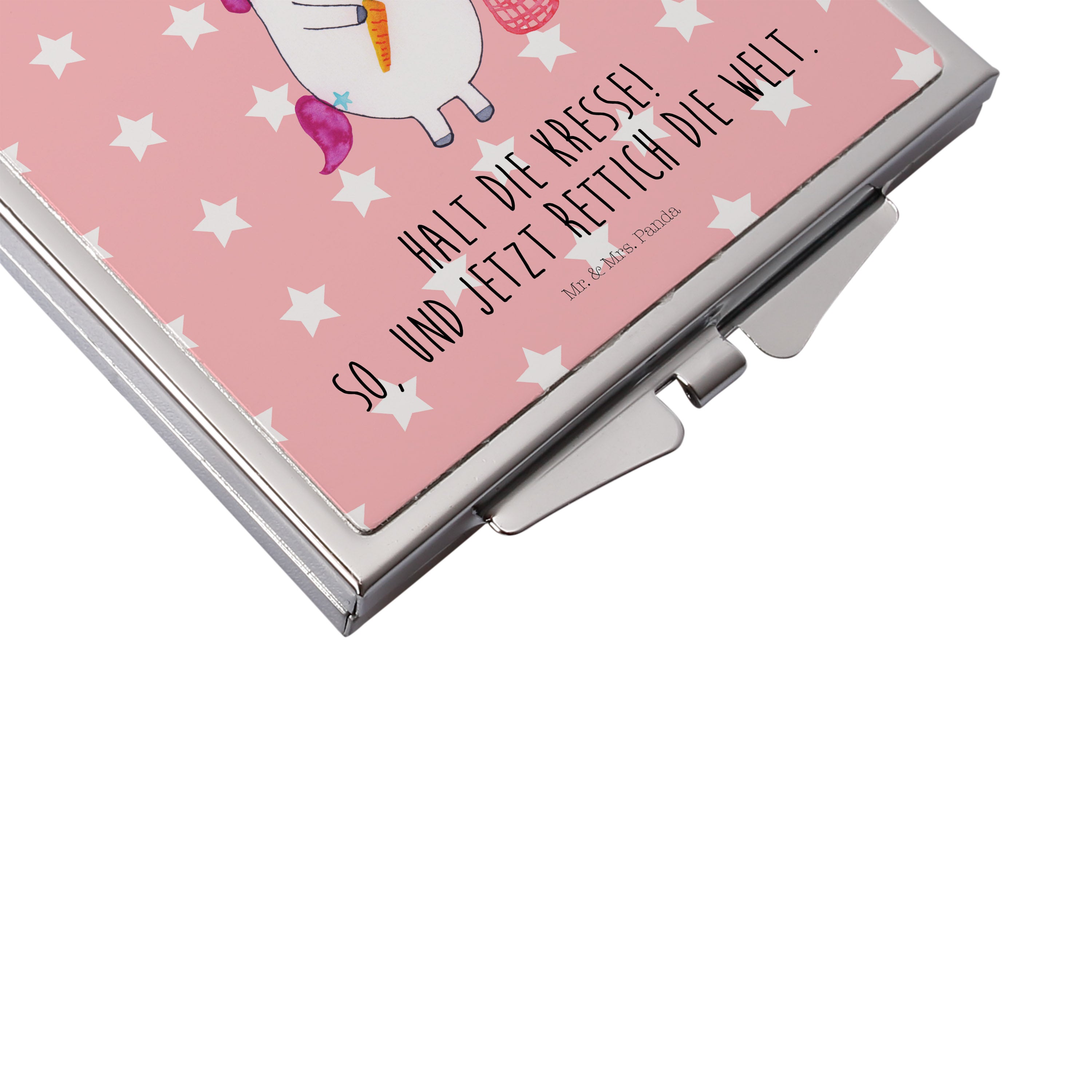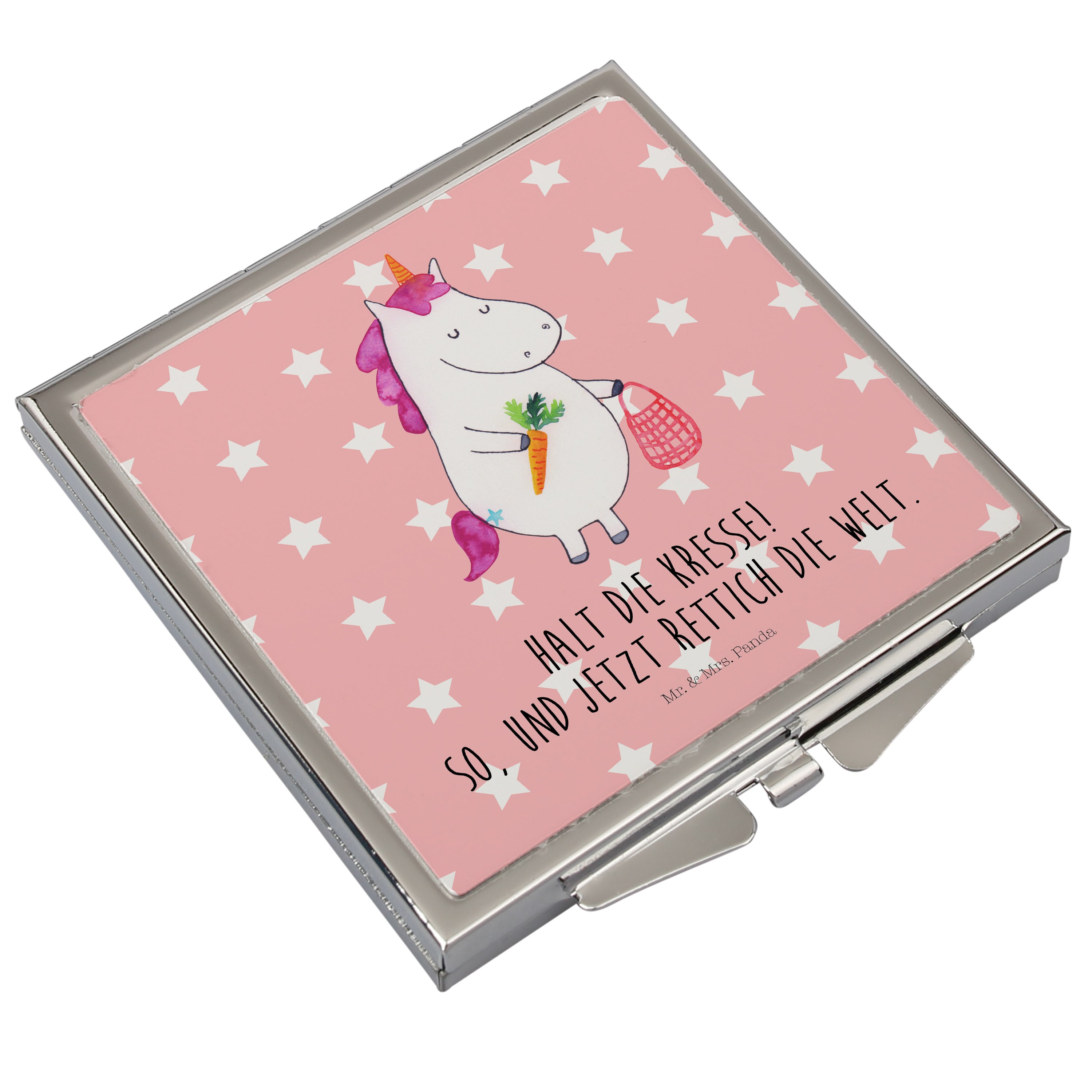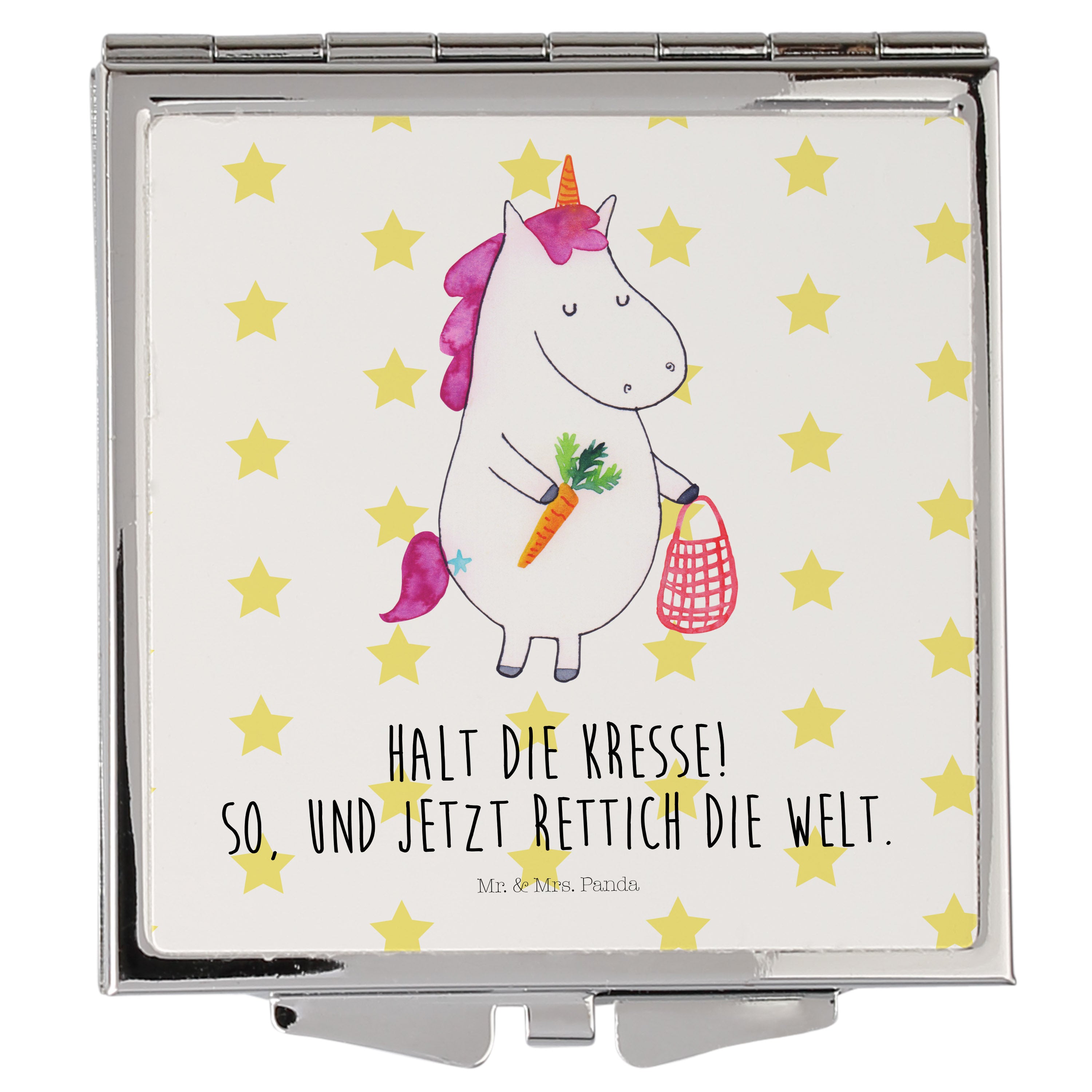 Handtaschenspiegel quadratisch Einhorn Gemüse - mit Spruch - Weiß