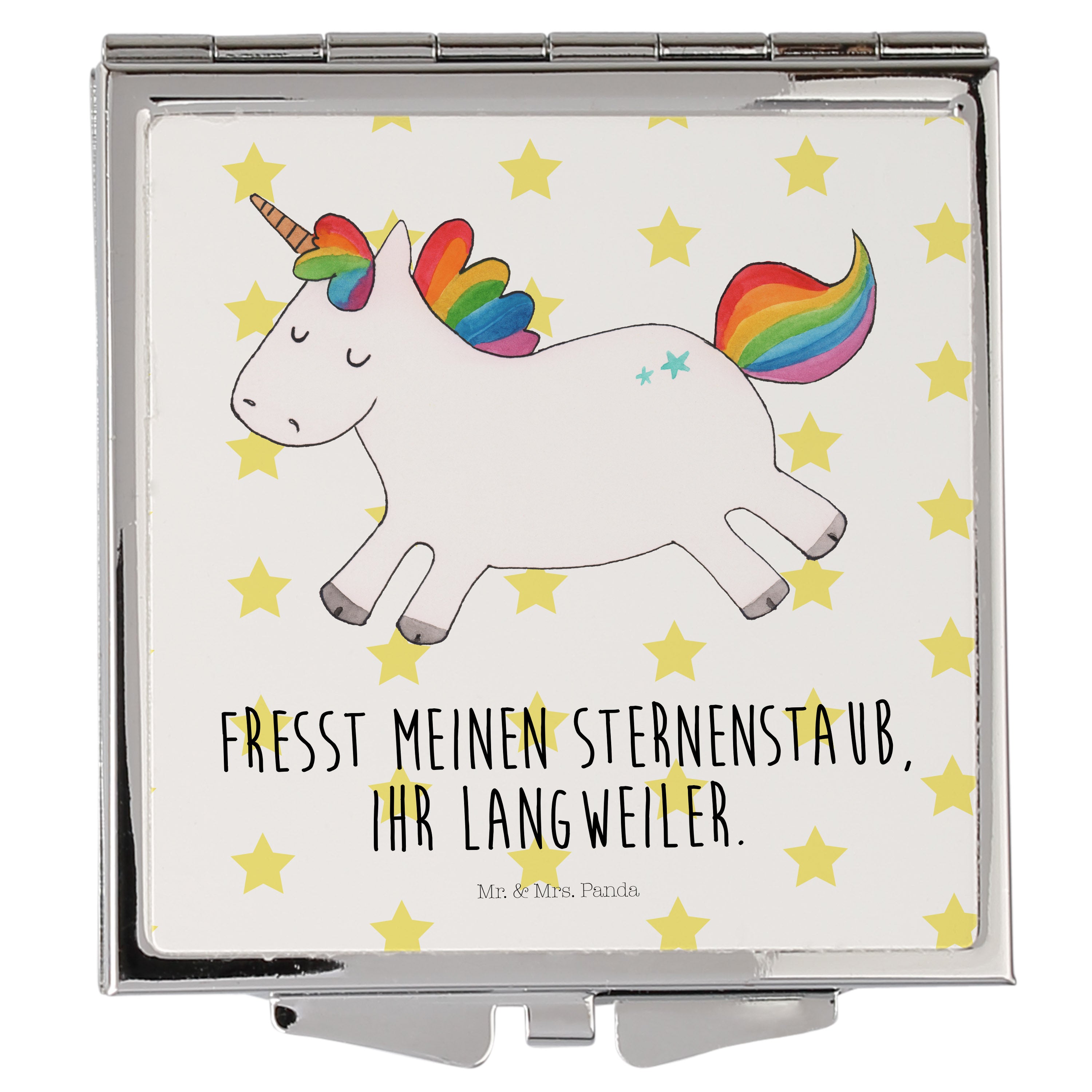 Handtaschenspiegel quadratisch Einhorn Happy - mit Spruch - Weiß
