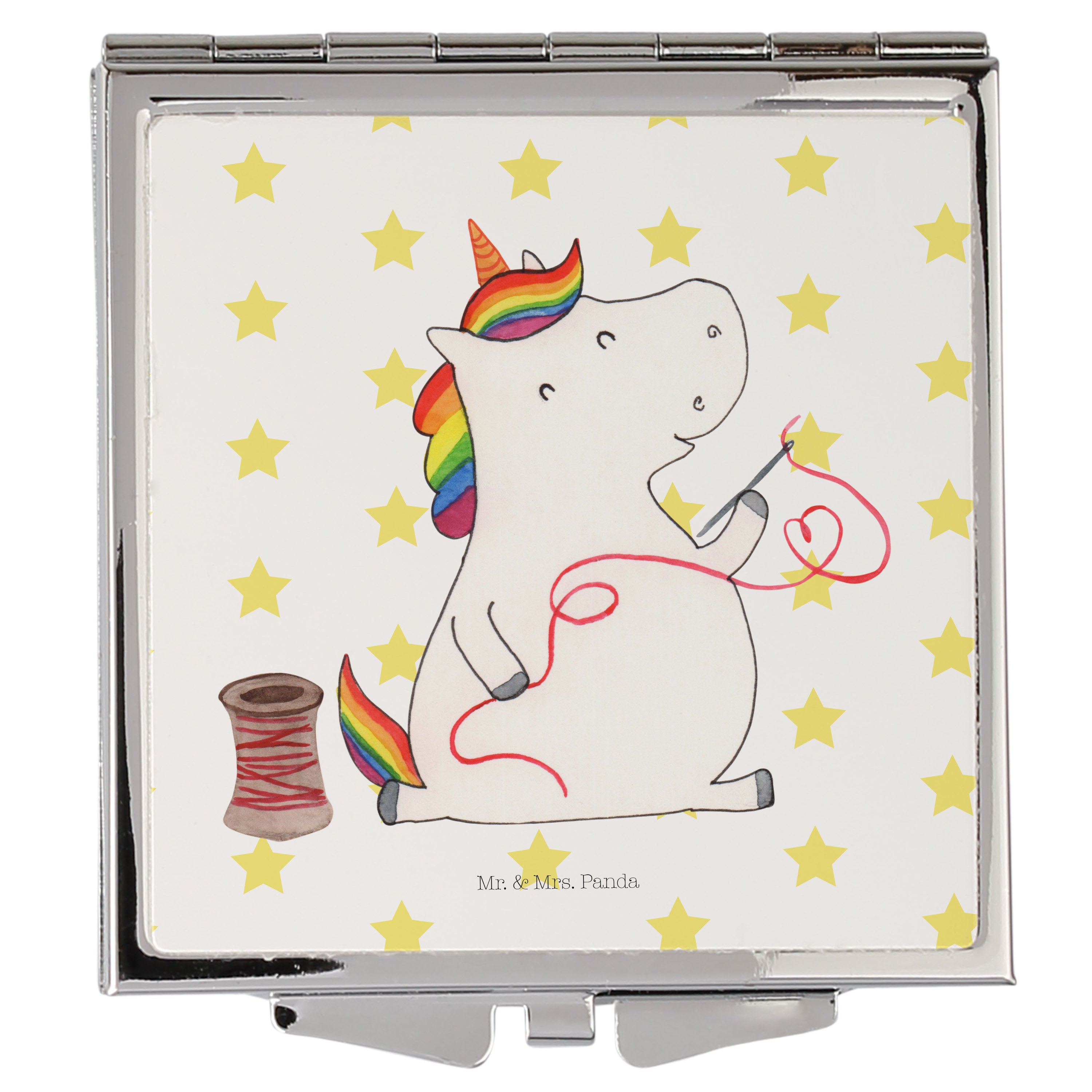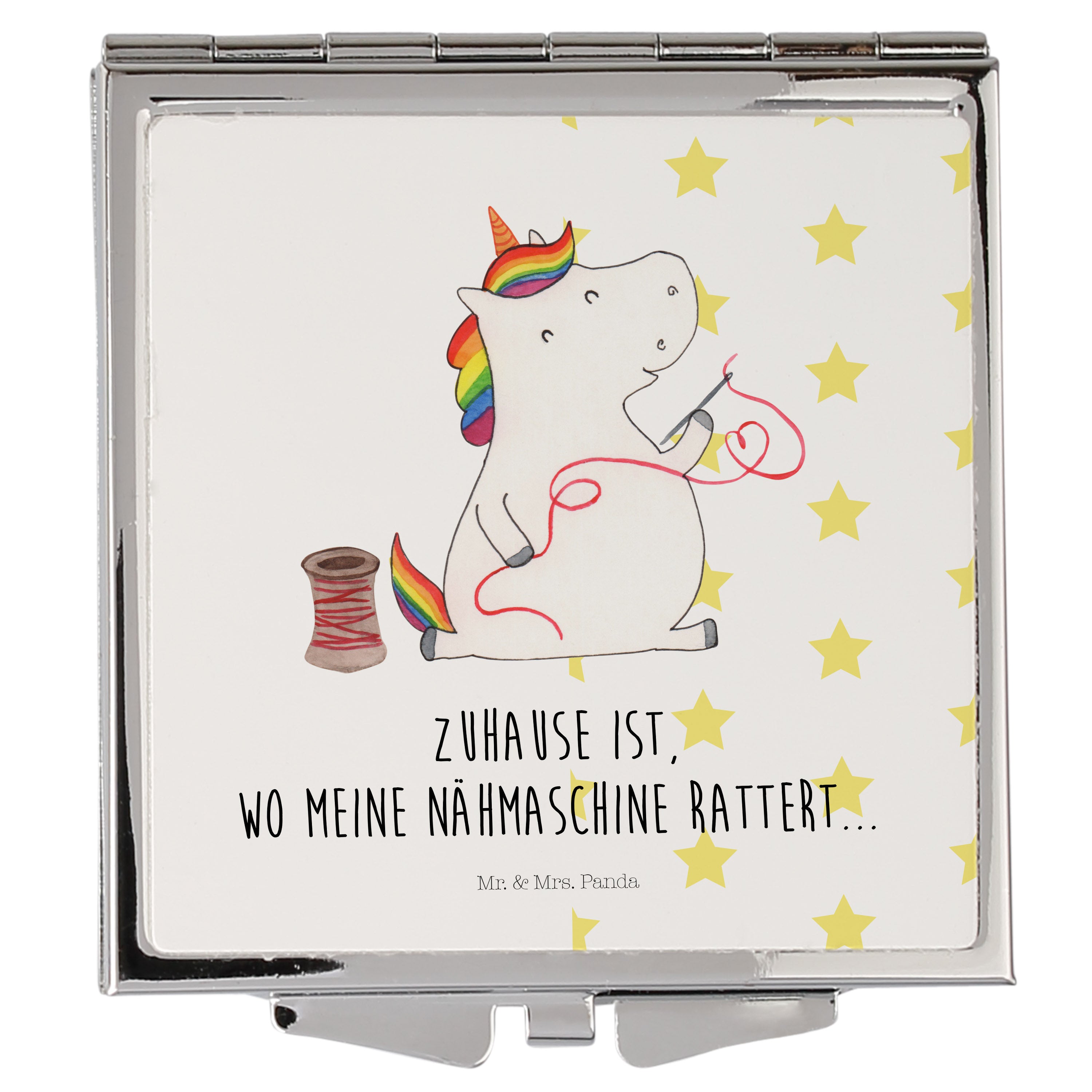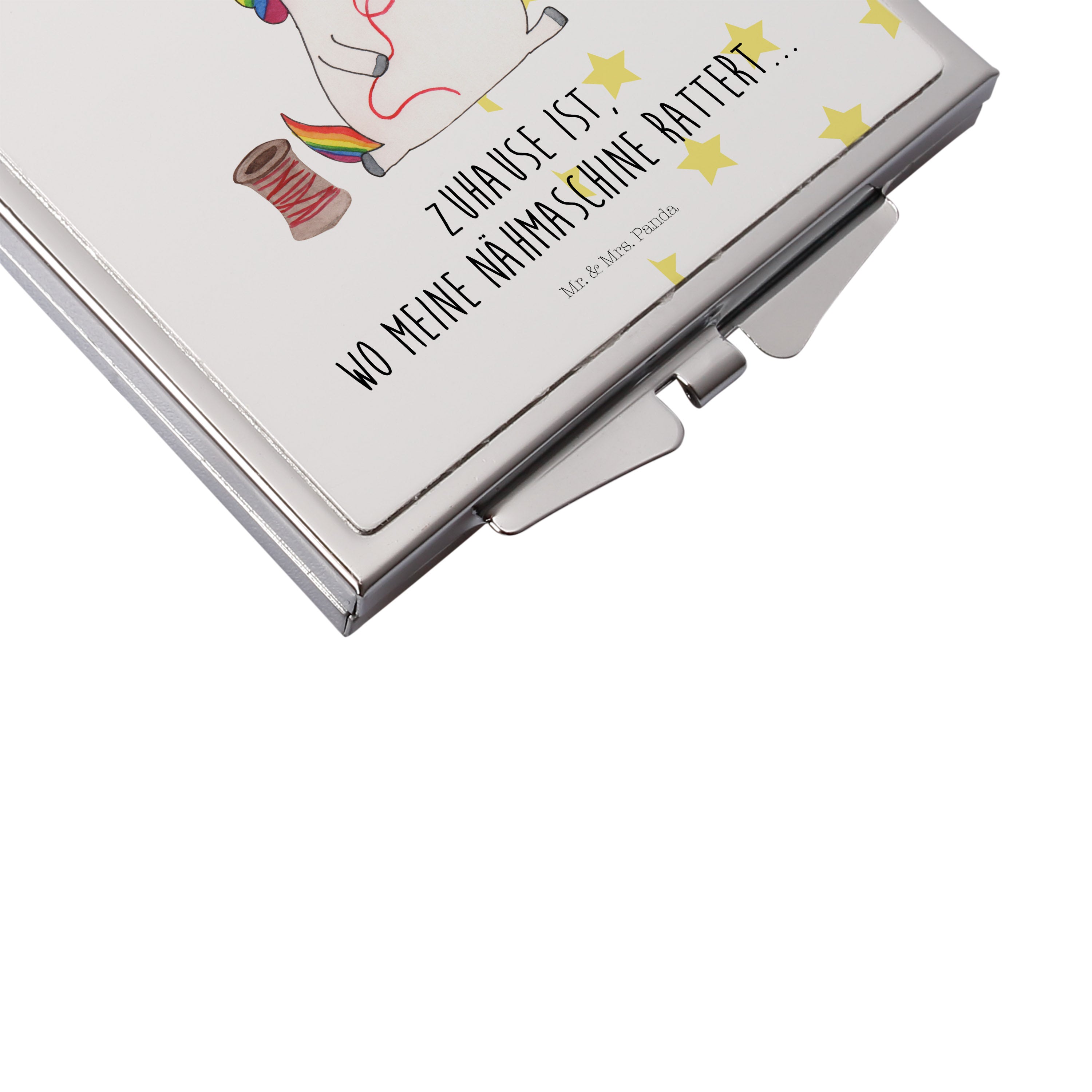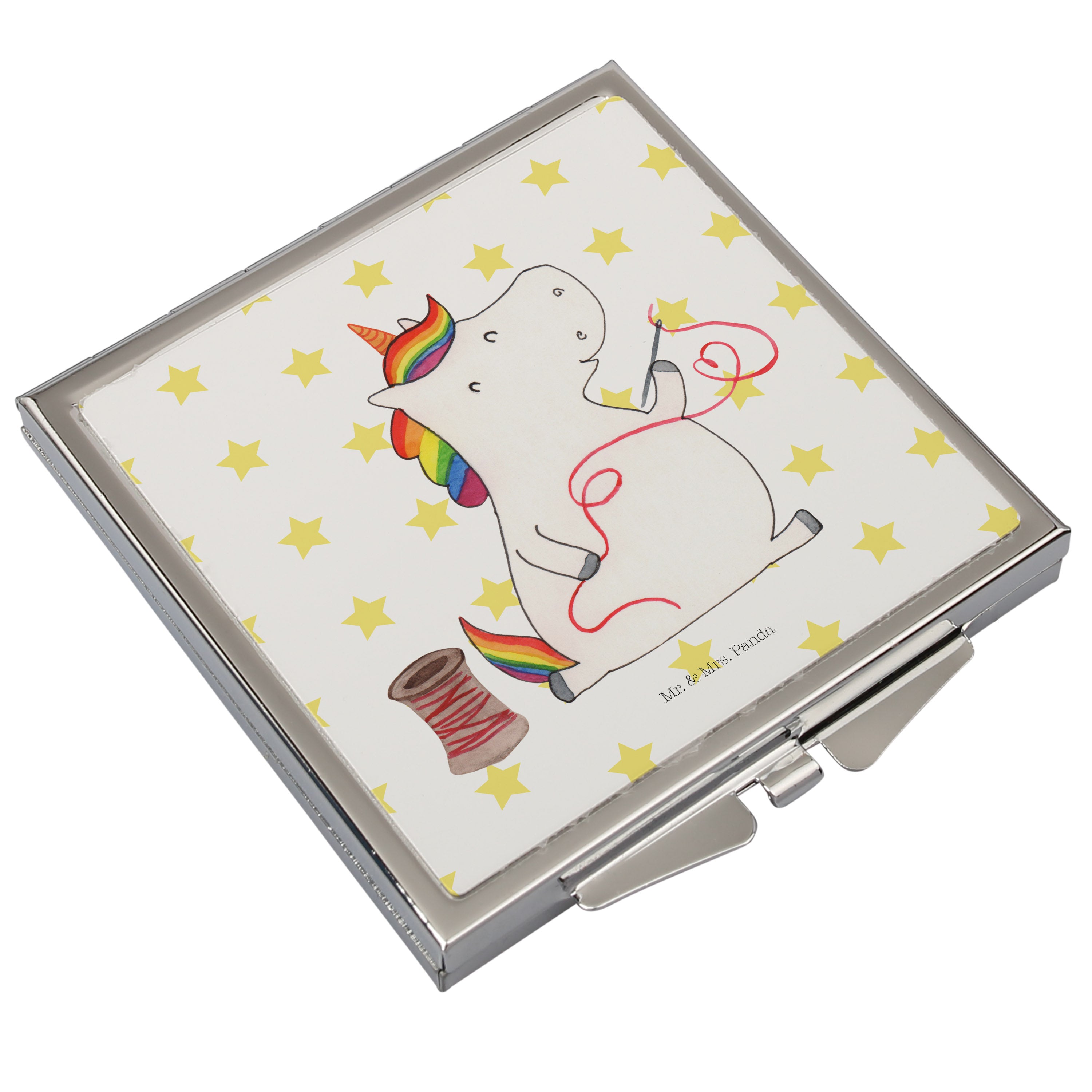 Handtaschenspiegel quadratisch Einhorn Näherin - mit Spruch - Weiß