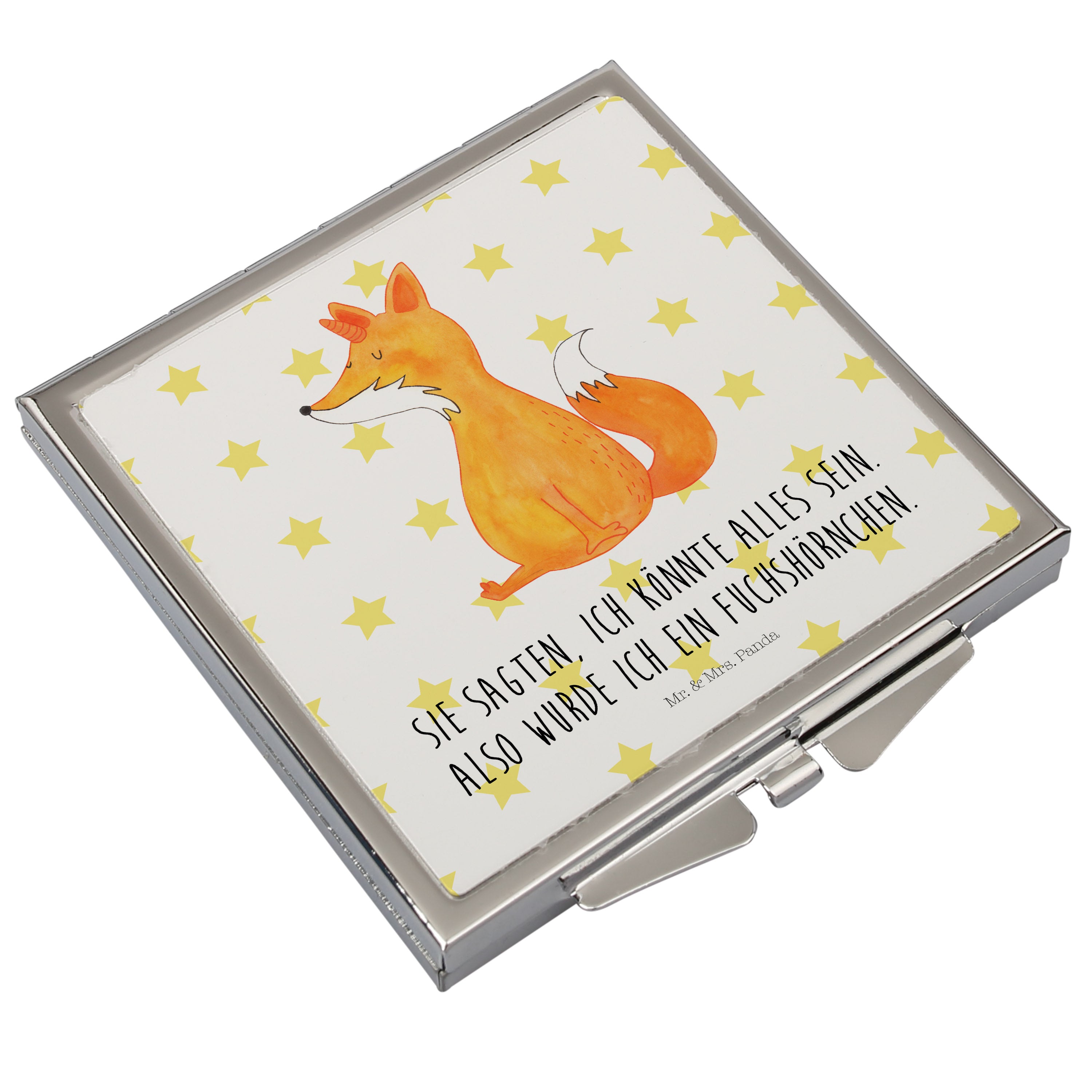 Handtaschenspiegel quadratisch Fuchshörnchen Wunsch - mit Spruch - Weiß