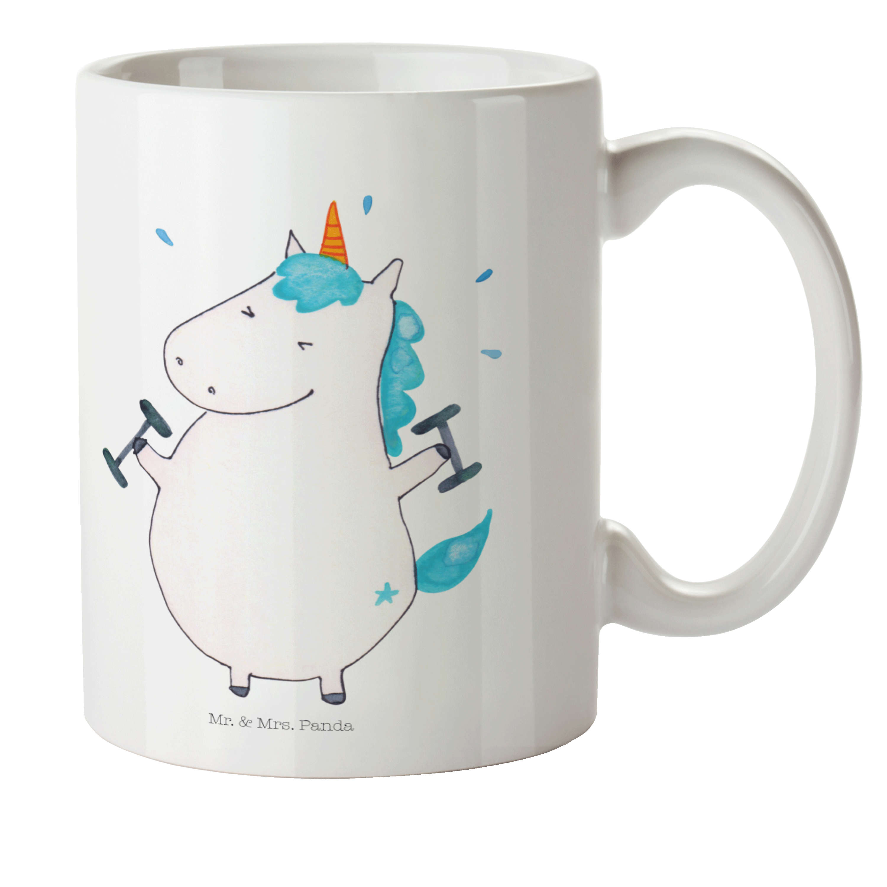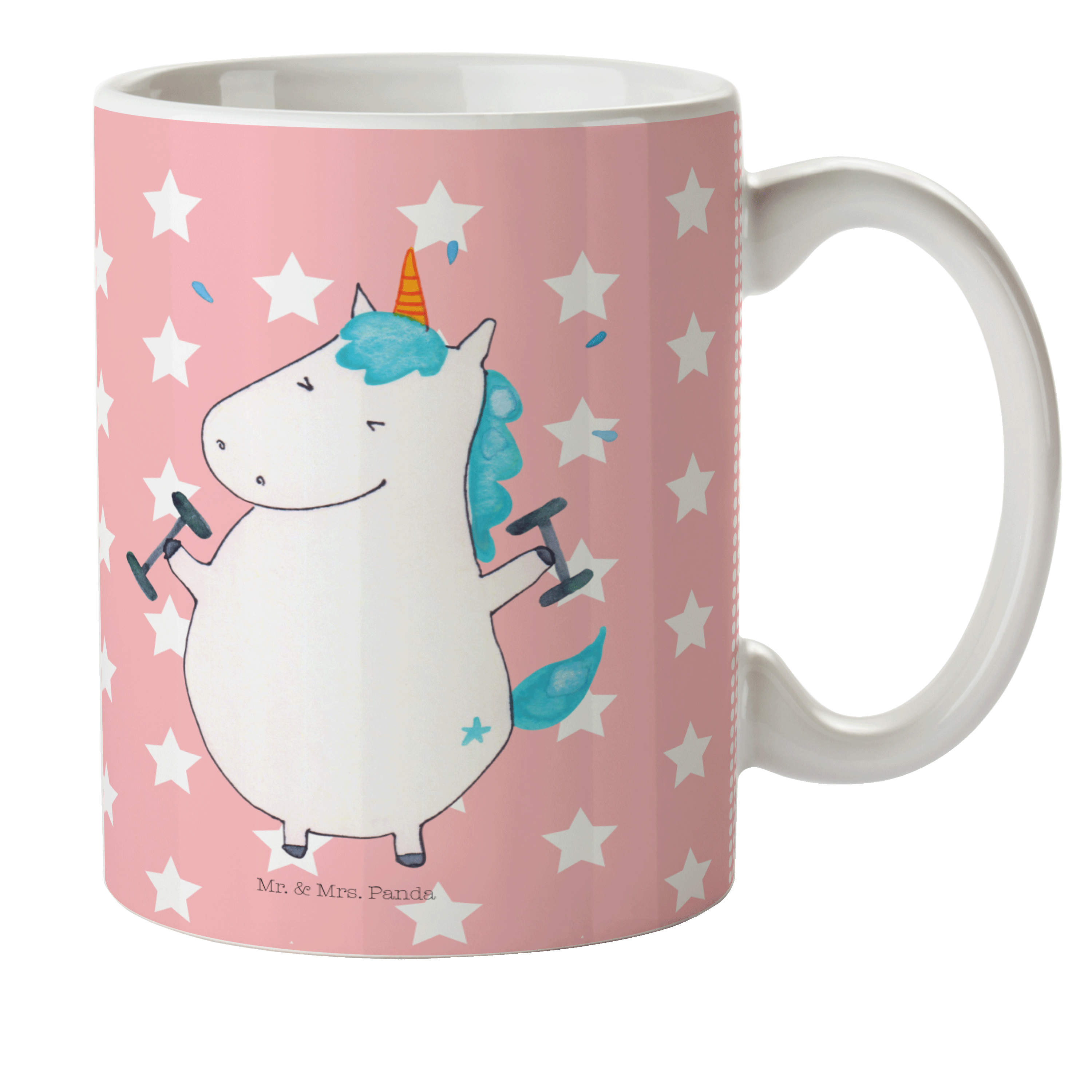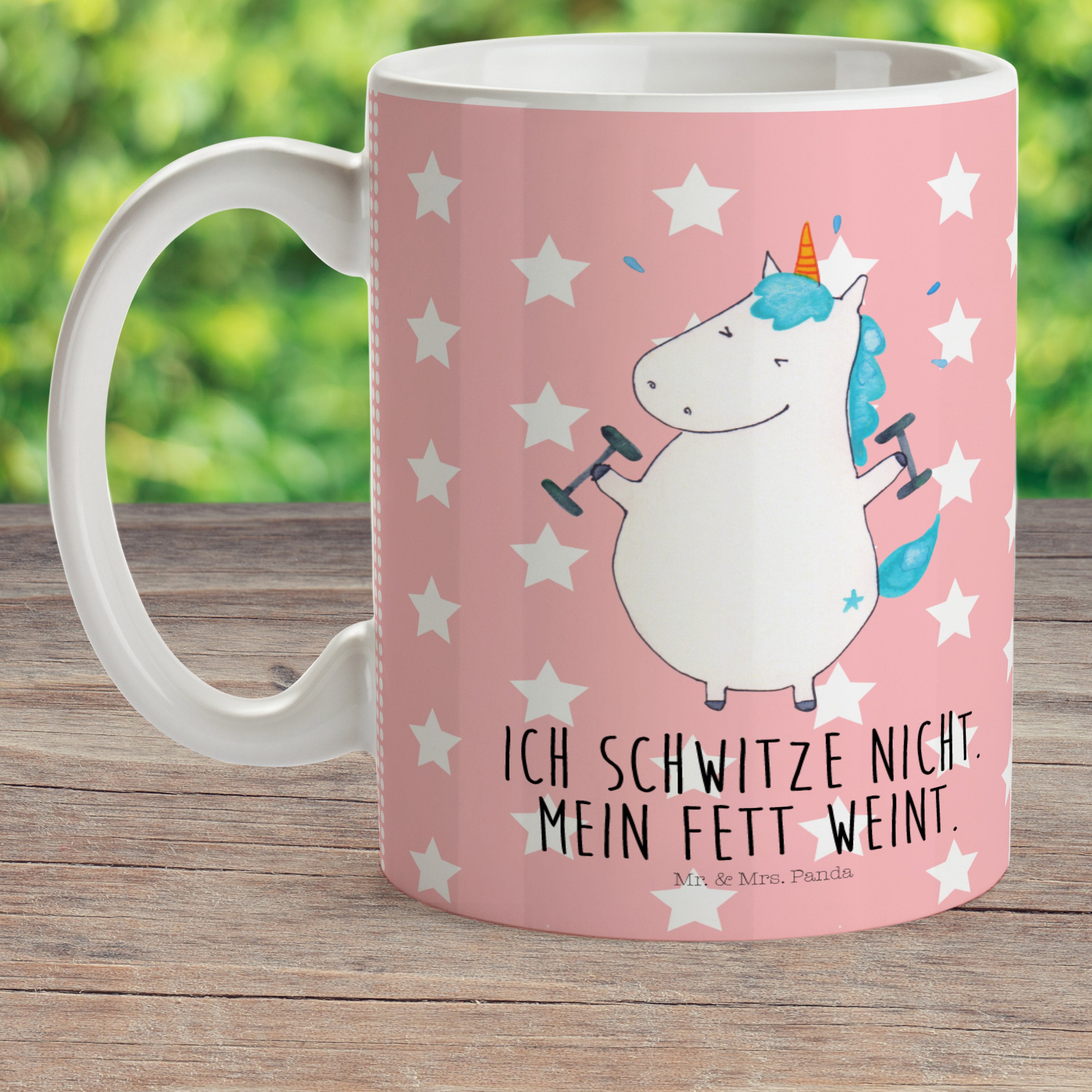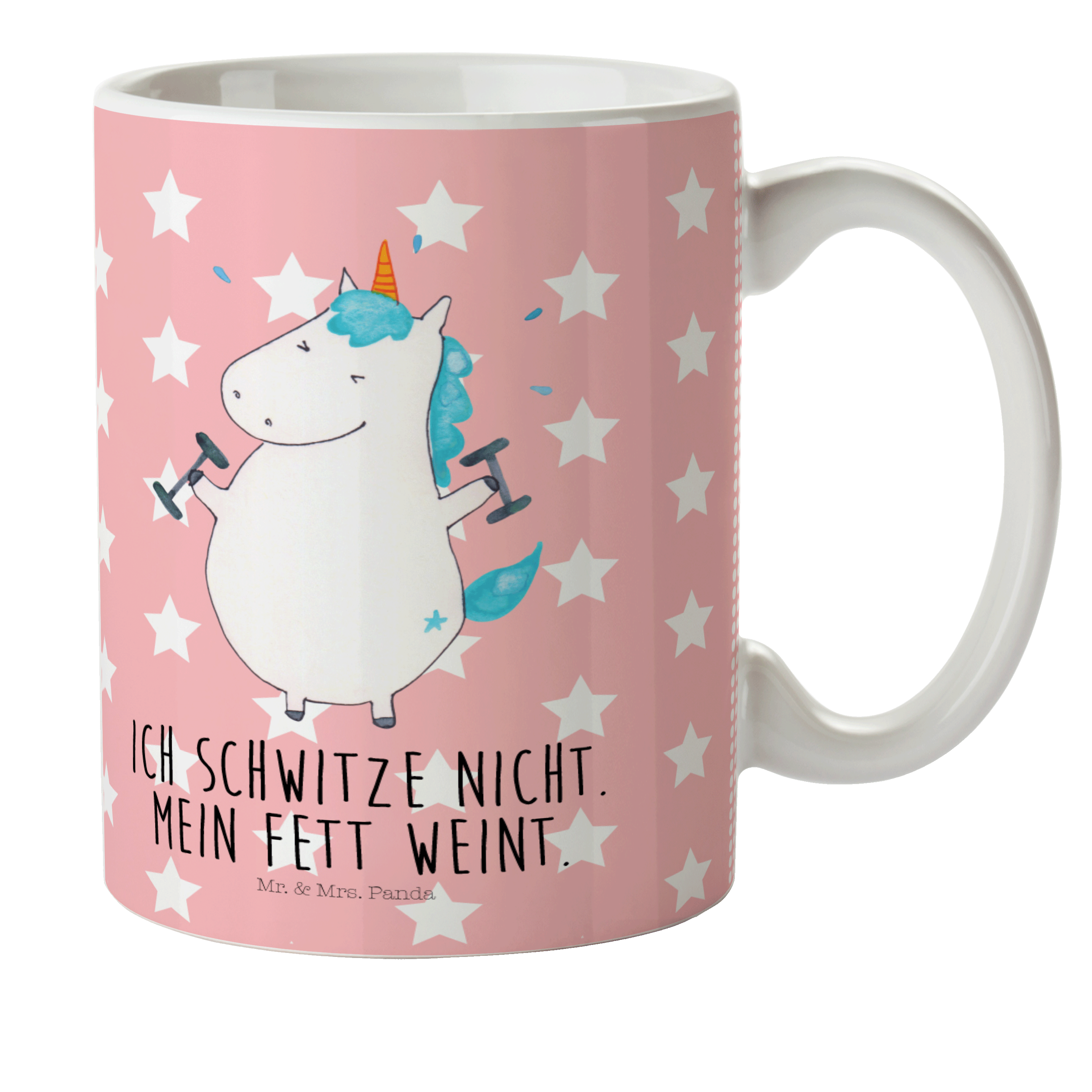 Kindertasse Einhorn Fitness - mit Spruch - Rot Pastell