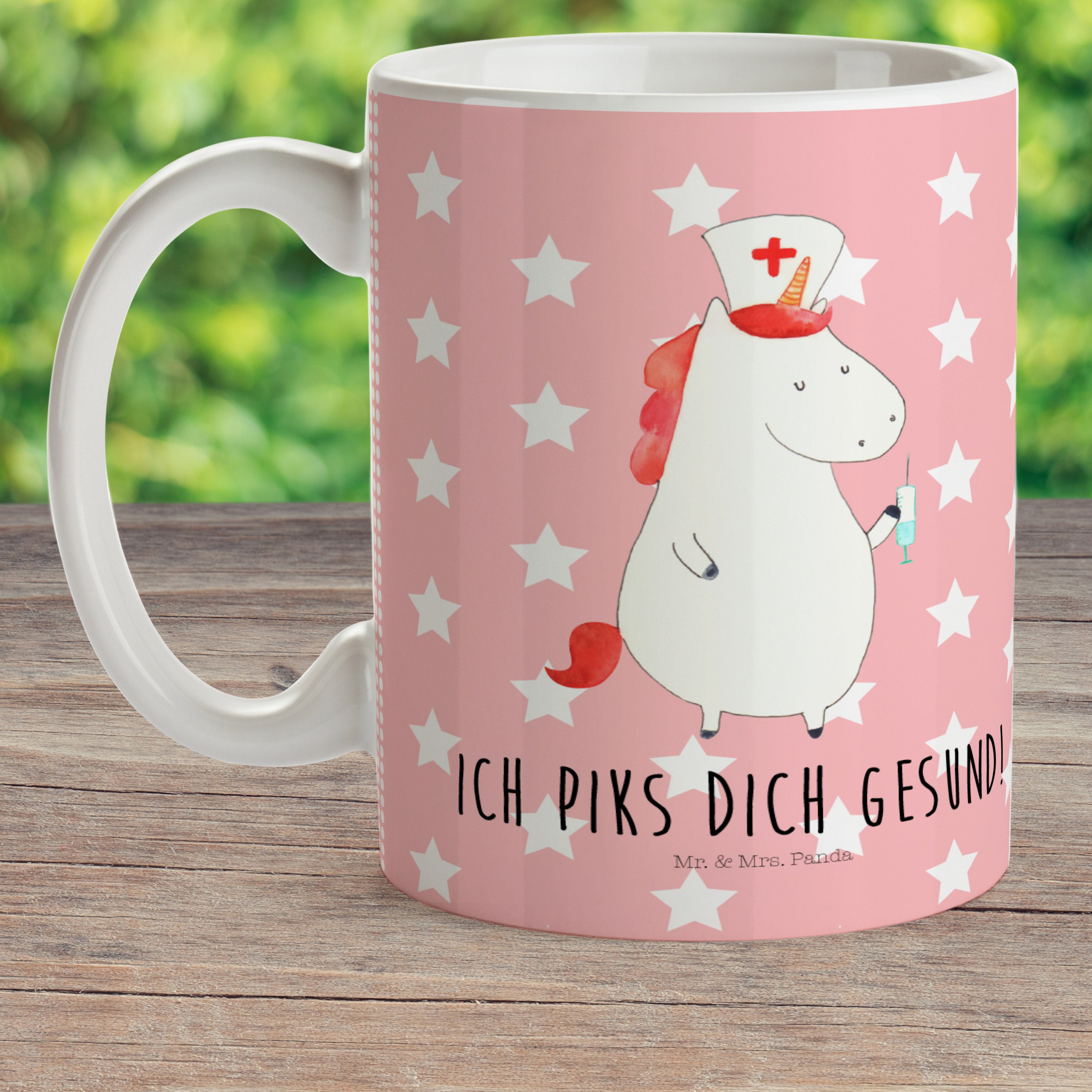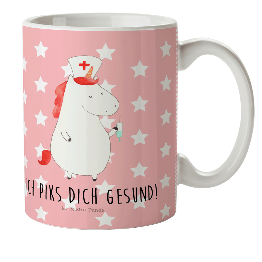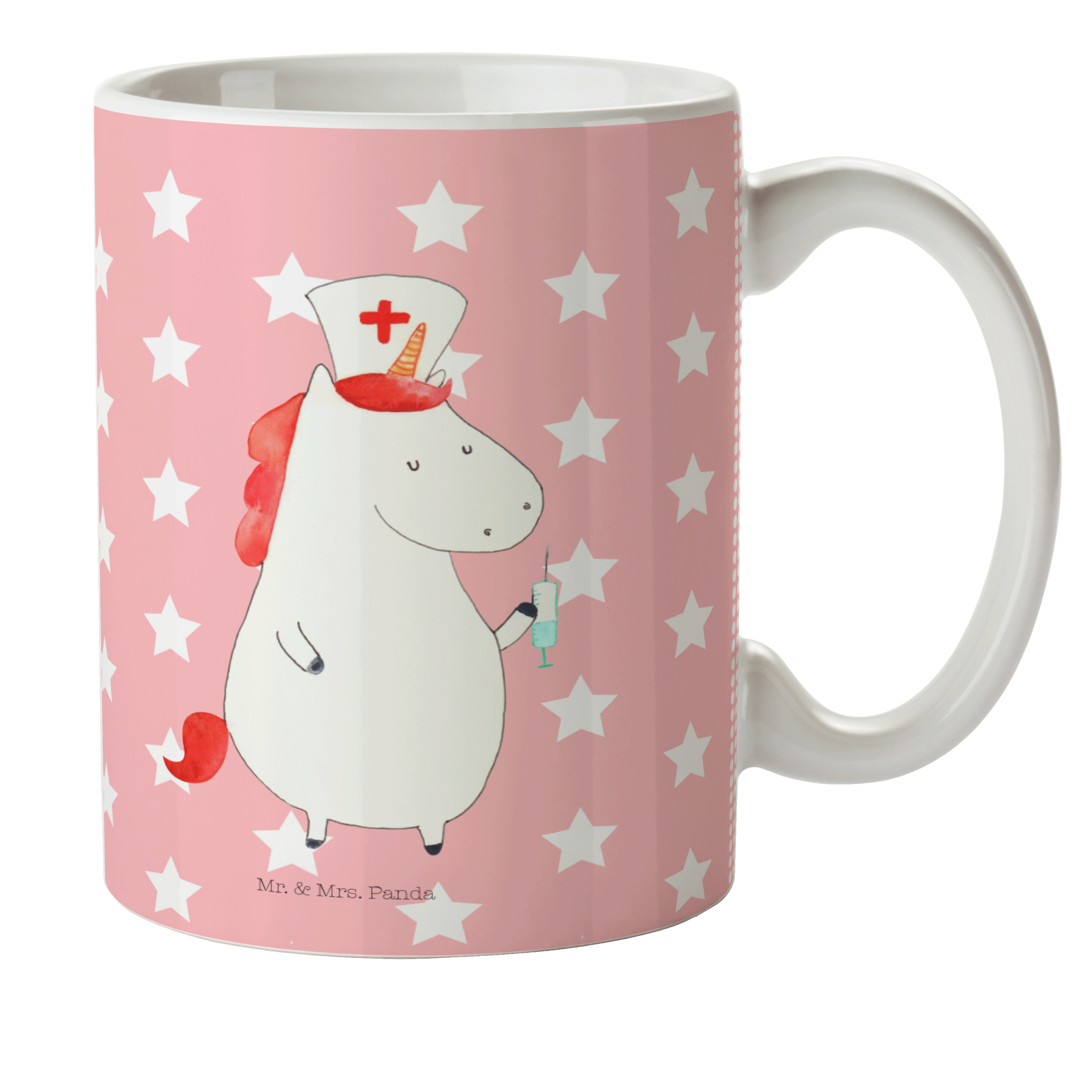 Kindertasse Einhorn Krankenschwester - mit Spruch - Rot Pastell
