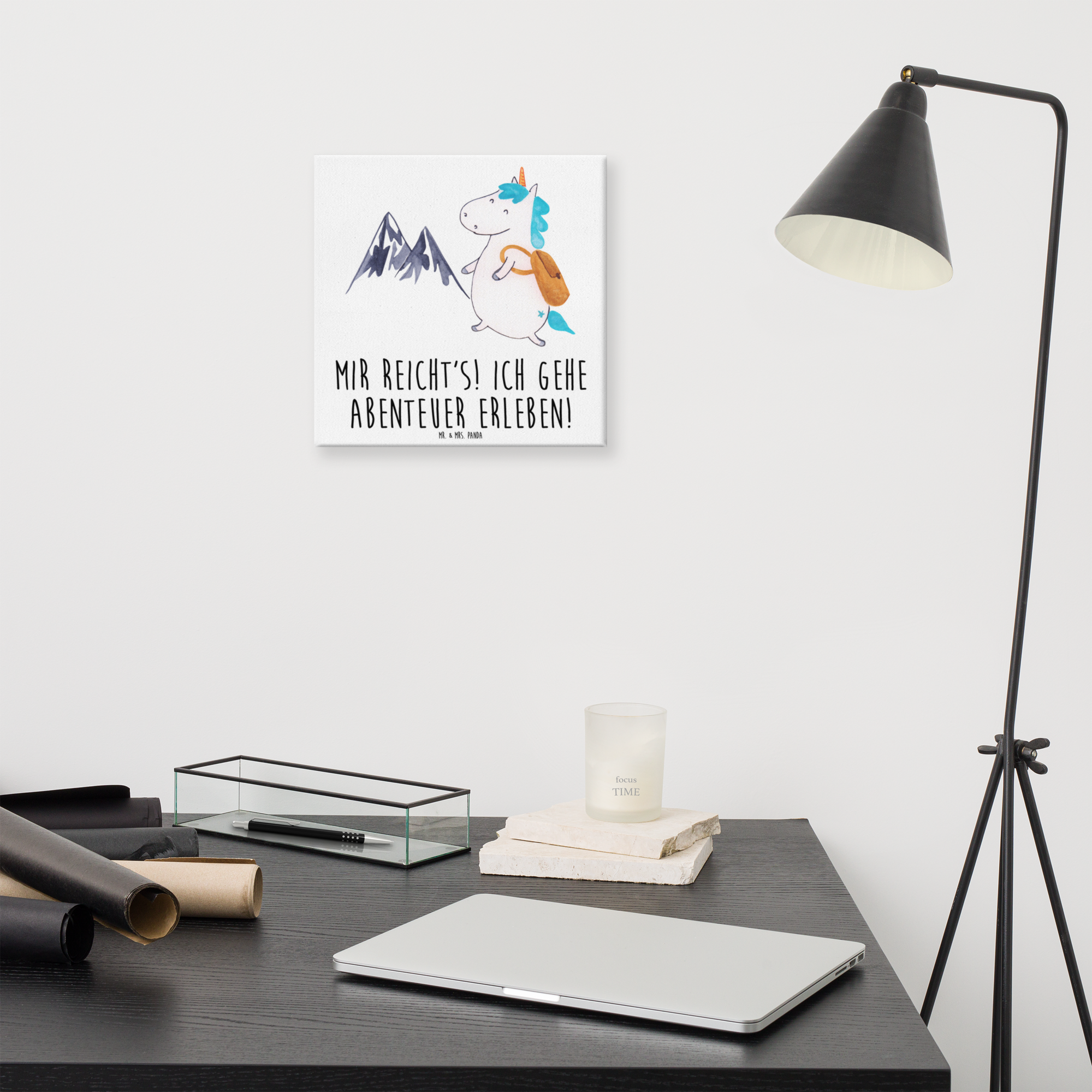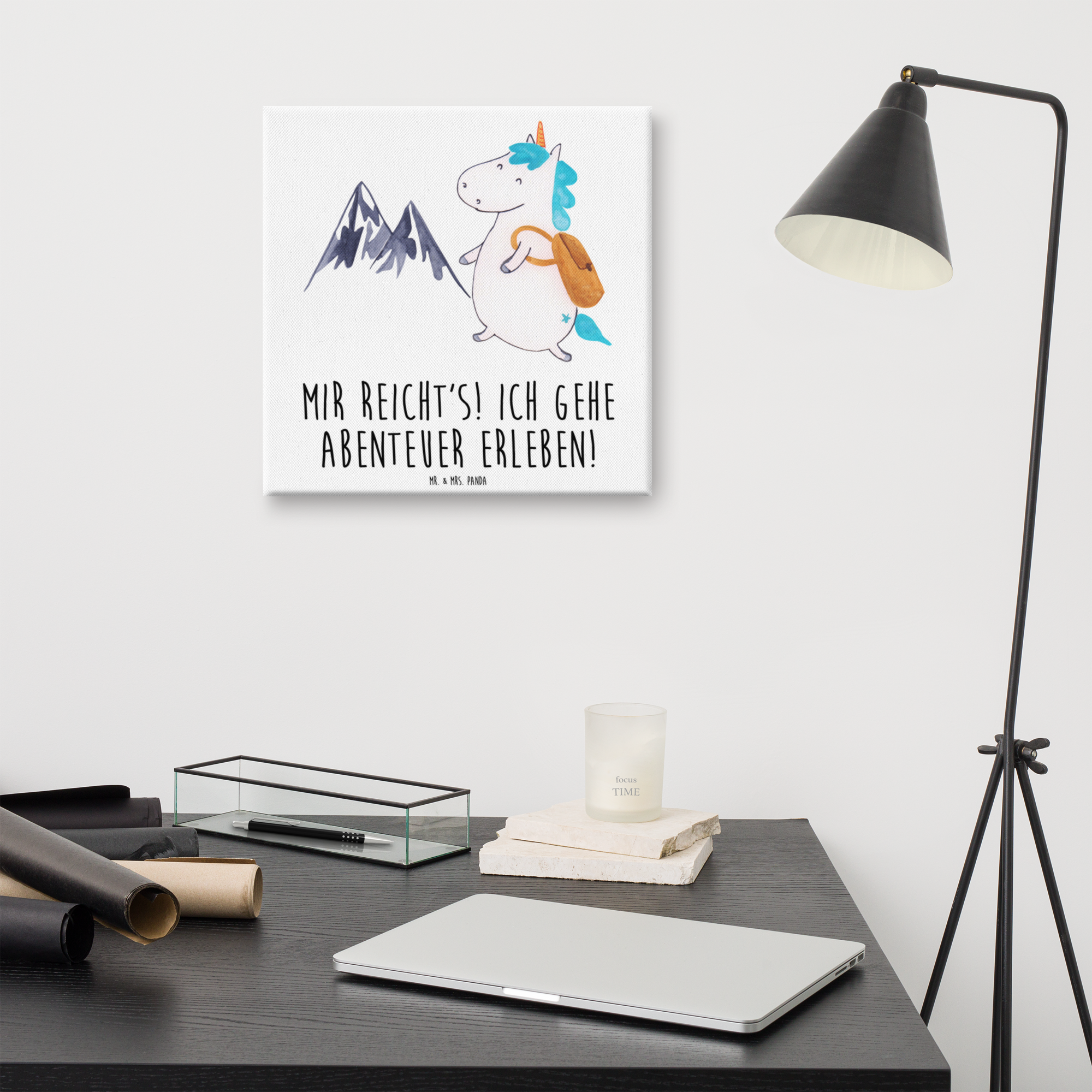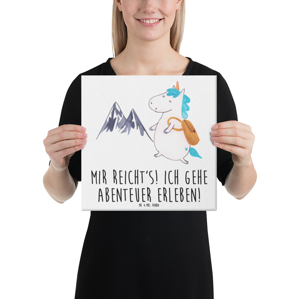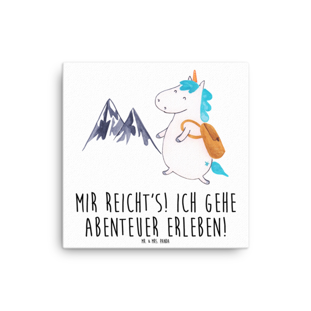 Leinwand Bild Einhorn Bergsteiger - 40 x 40 cm - mit Spruch