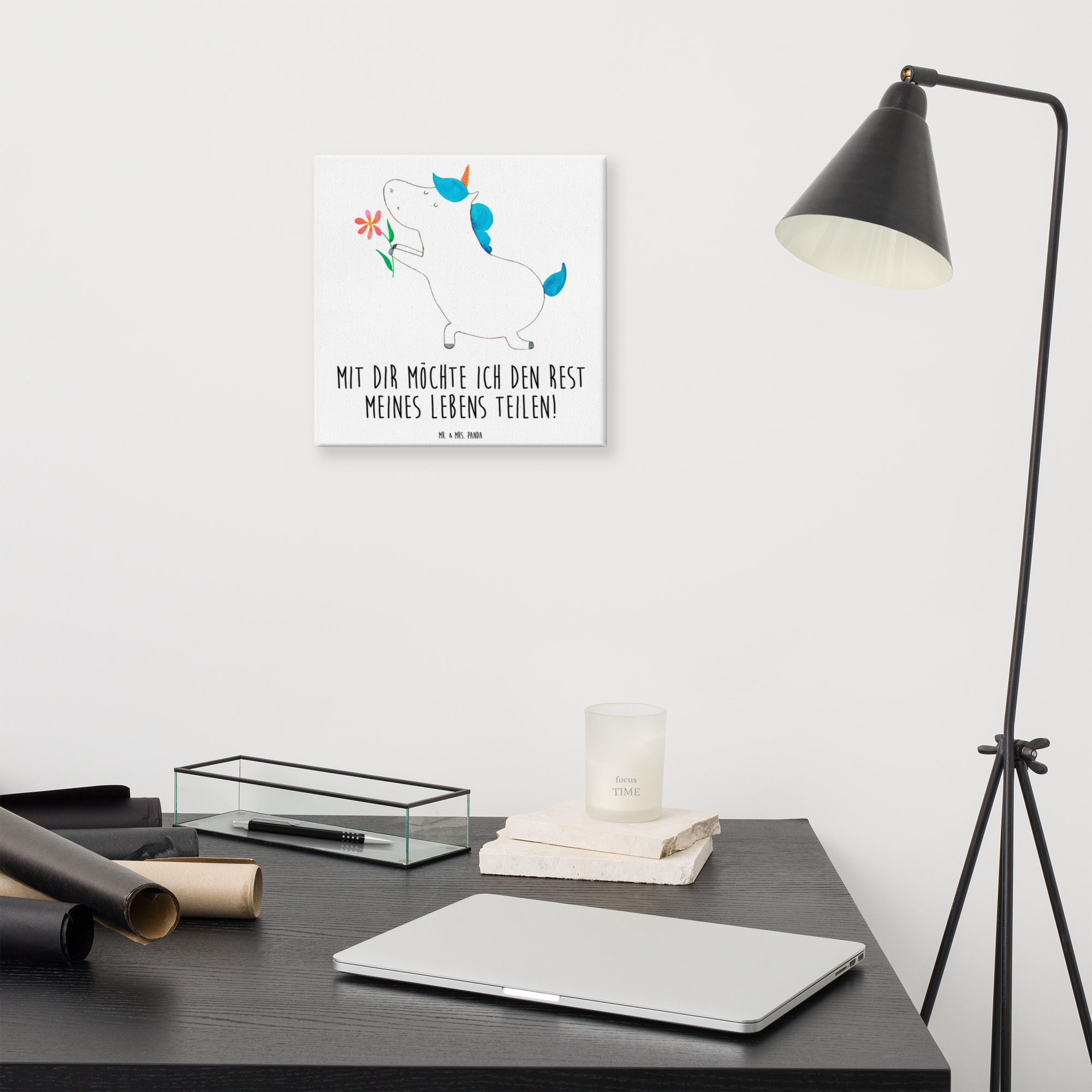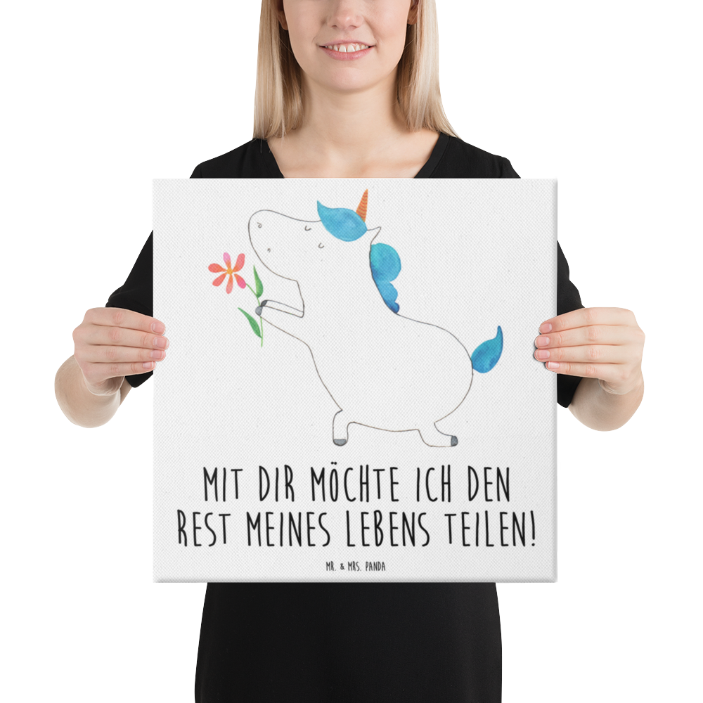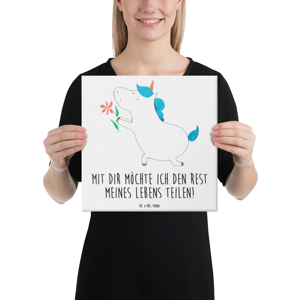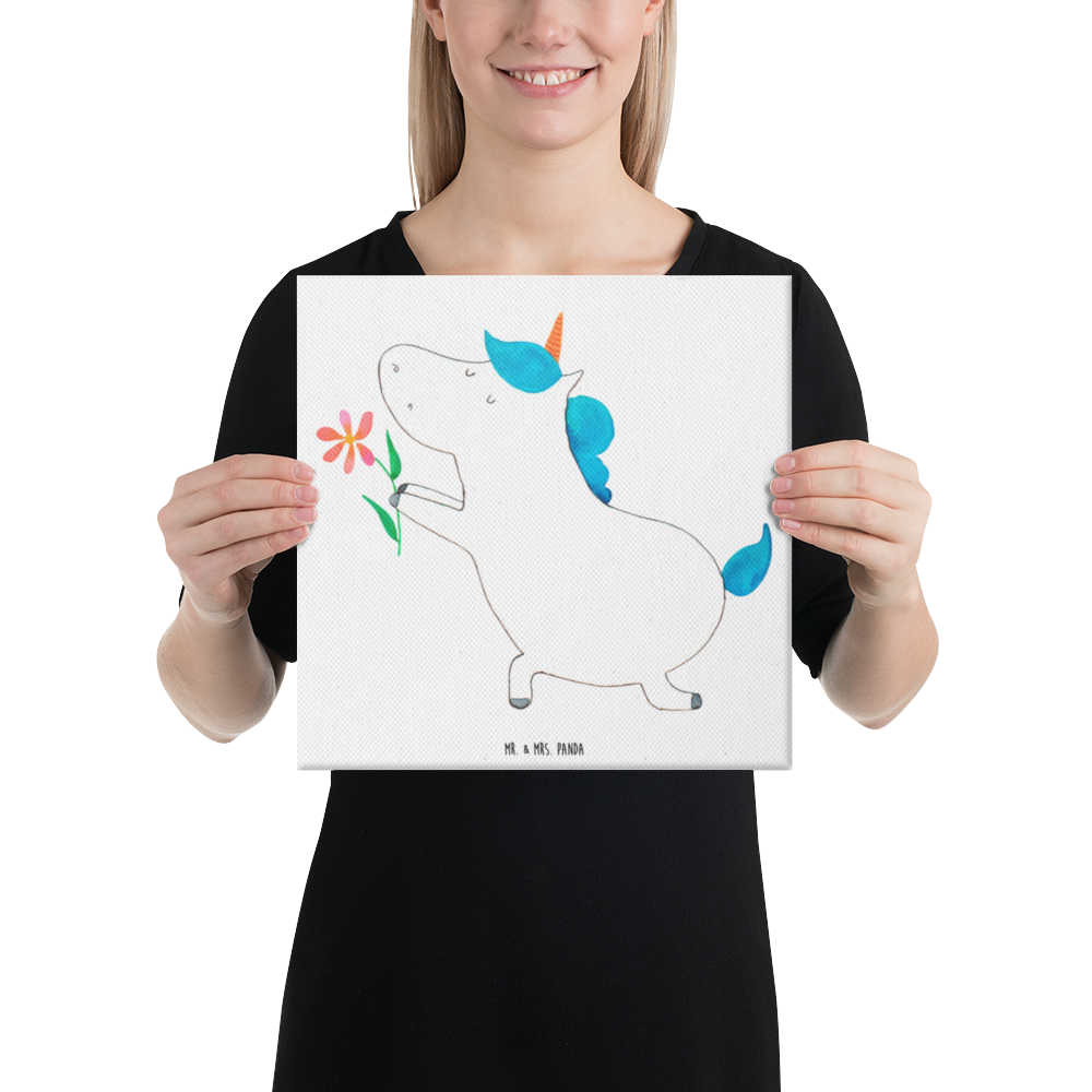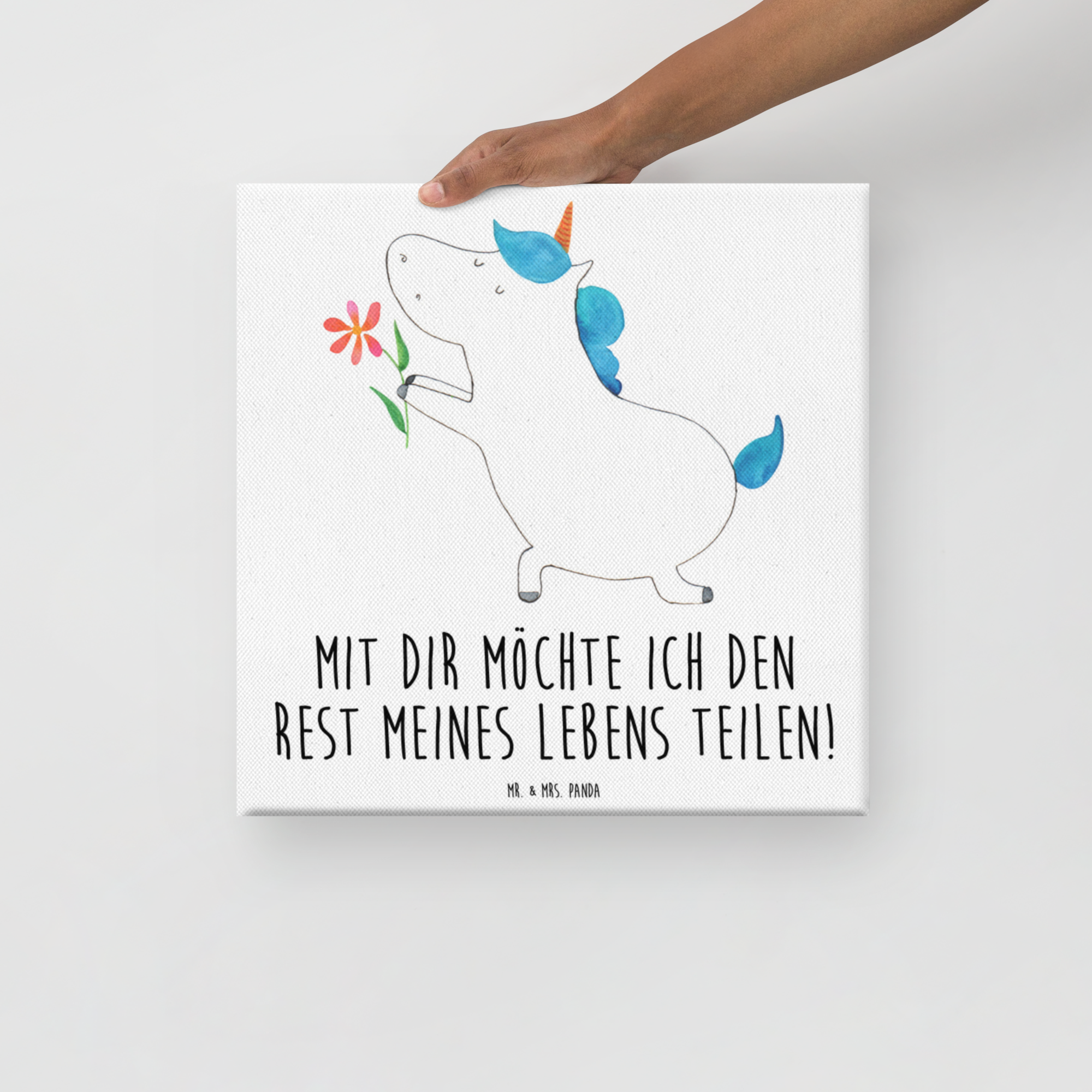 Leinwand Bild Einhorn Blume - 40 x 40 cm - mit Spruch