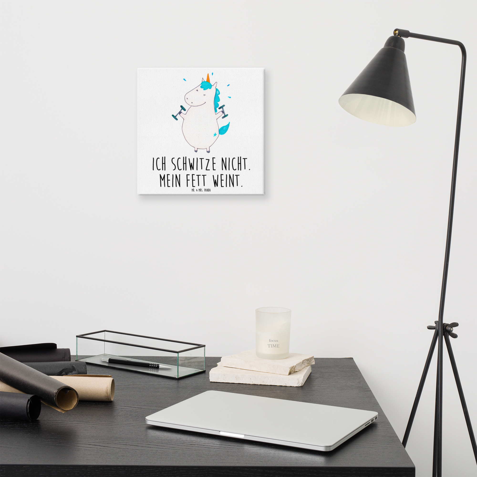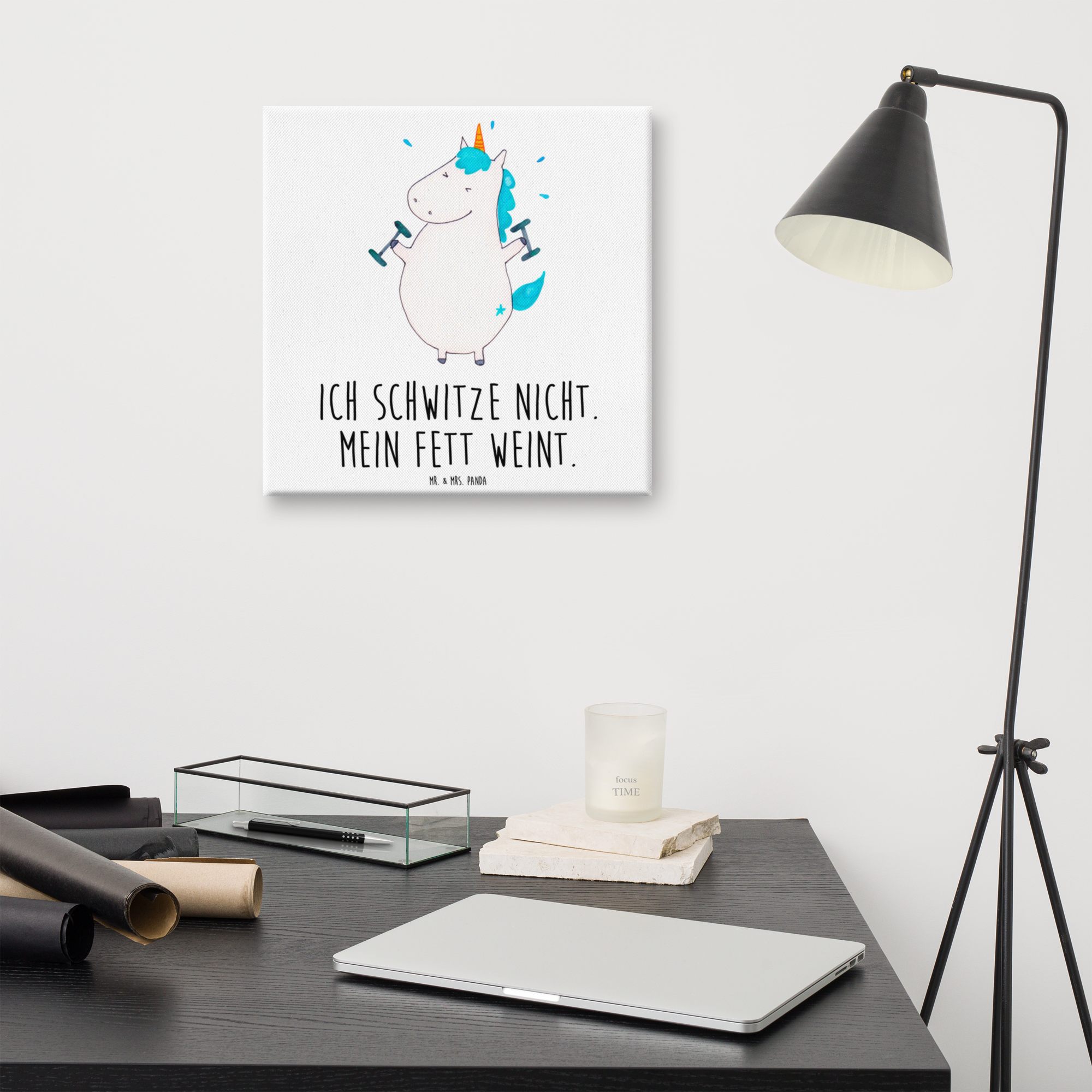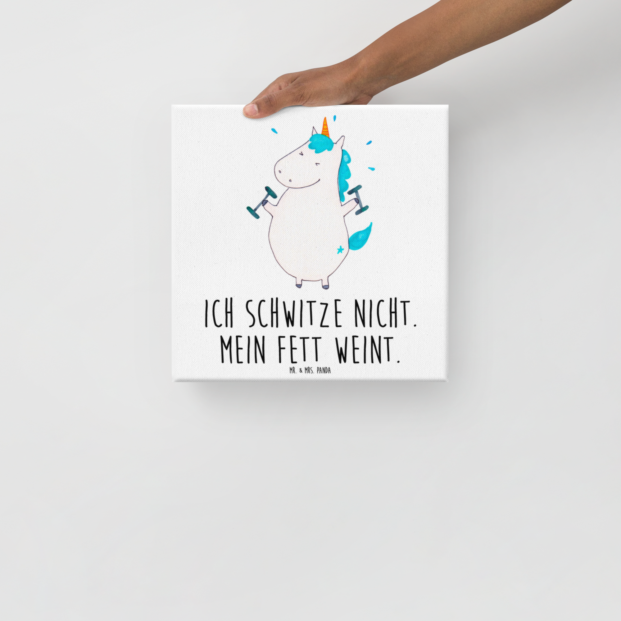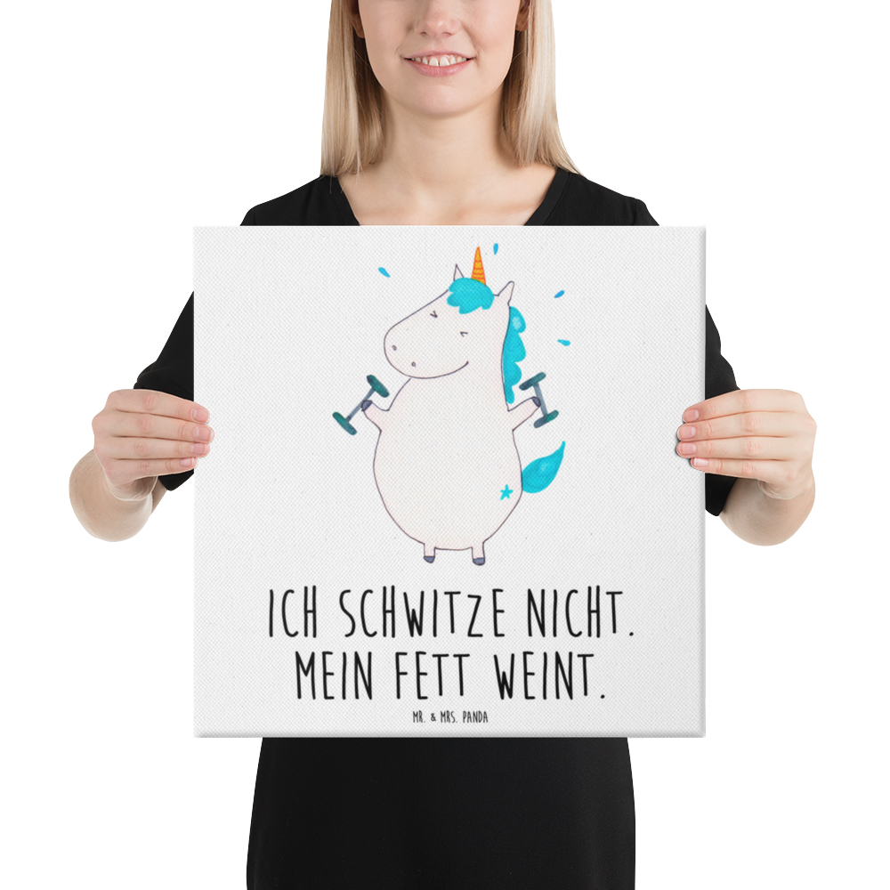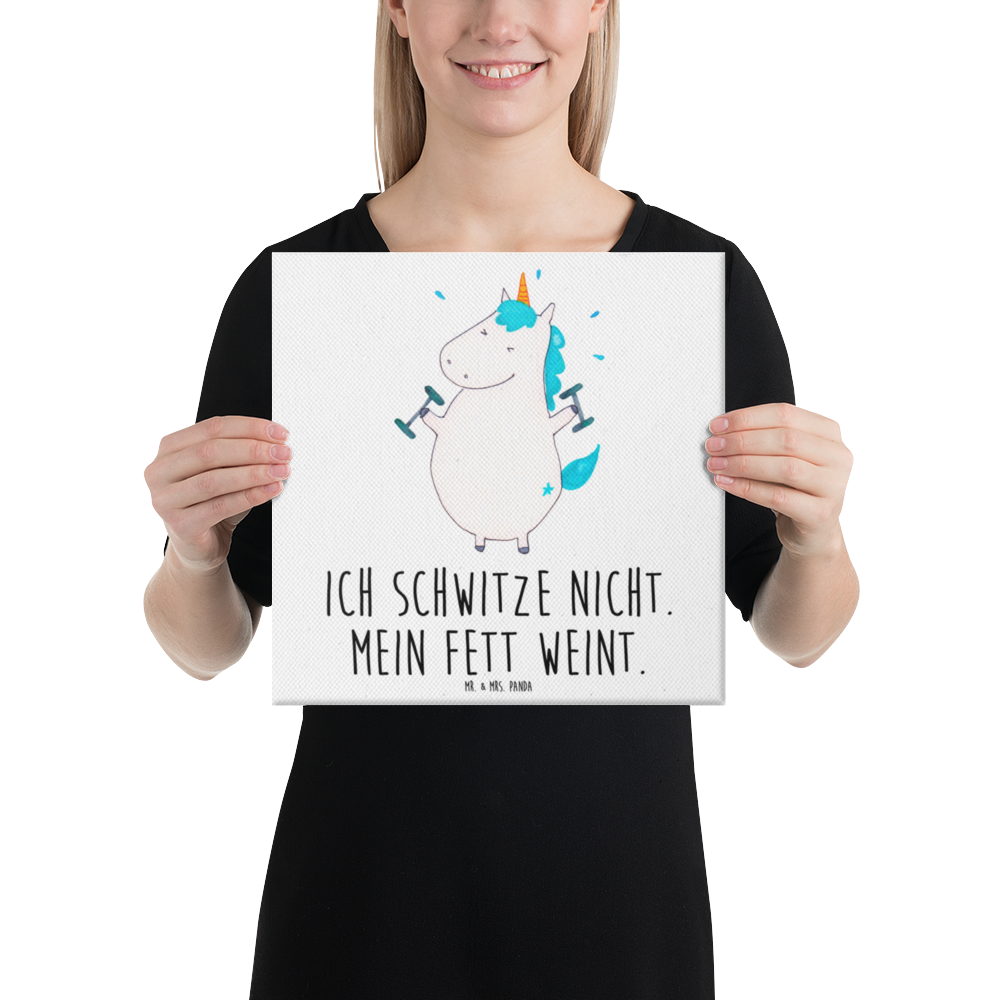 Leinwand Bild Einhorn Fitness - 40 x 40 cm - mit Spruch