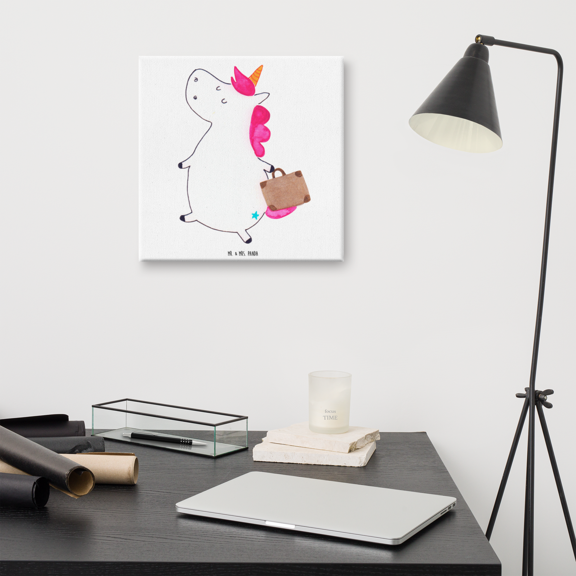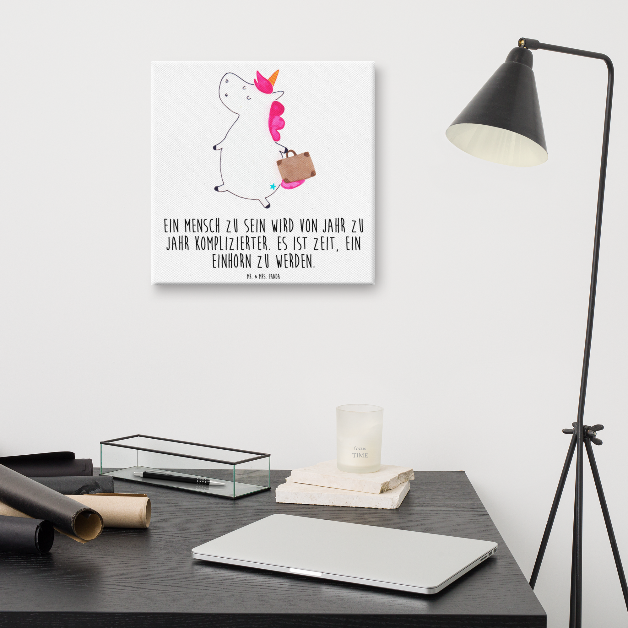 Leinwand Bild Einhorn Koffer - 40 x 40 cm - mit Spruch