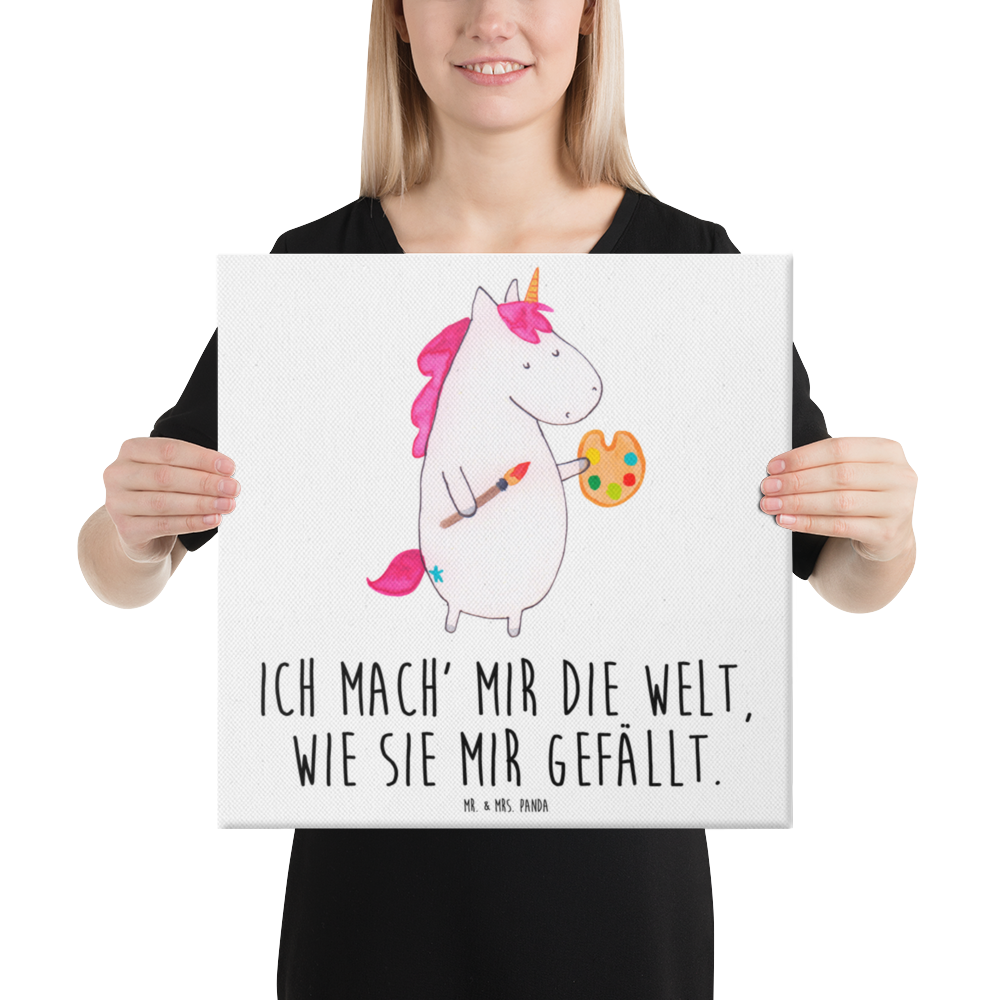 Leinwand Bild Einhorn Künstler - 40 x 40 cm - mit Spruch