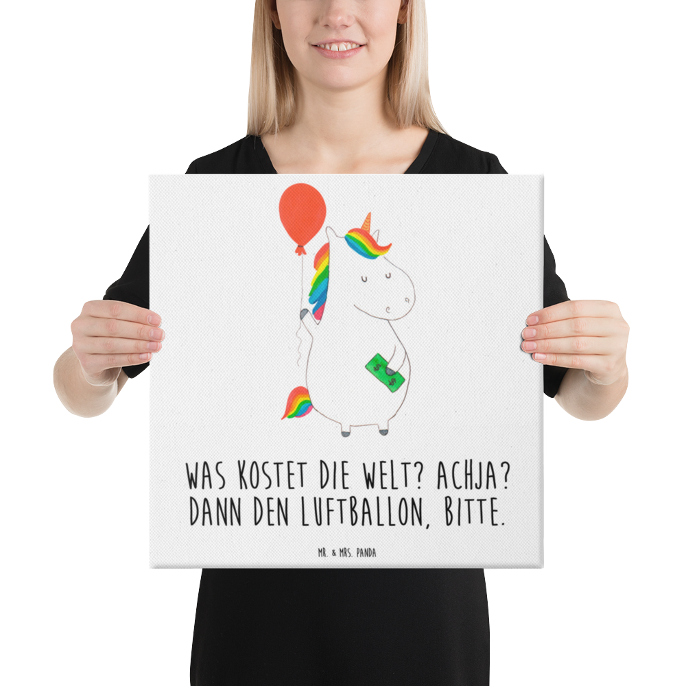 Leinwand Bild Einhorn Luftballon - 40 x 40 cm - mit Spruch