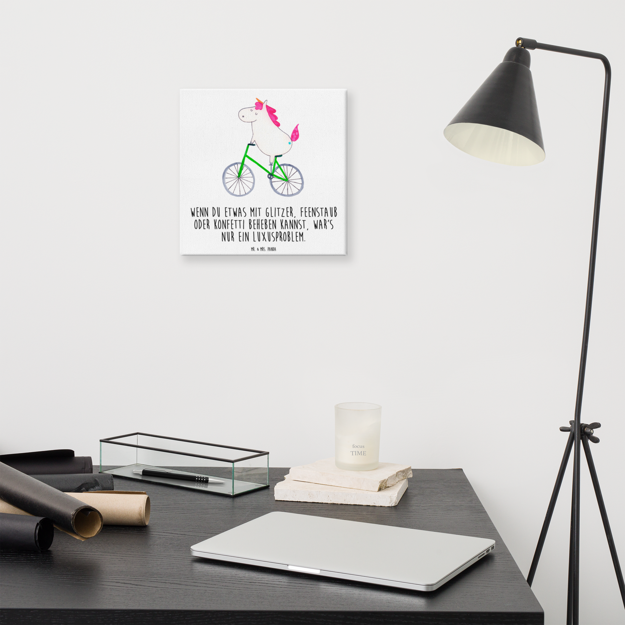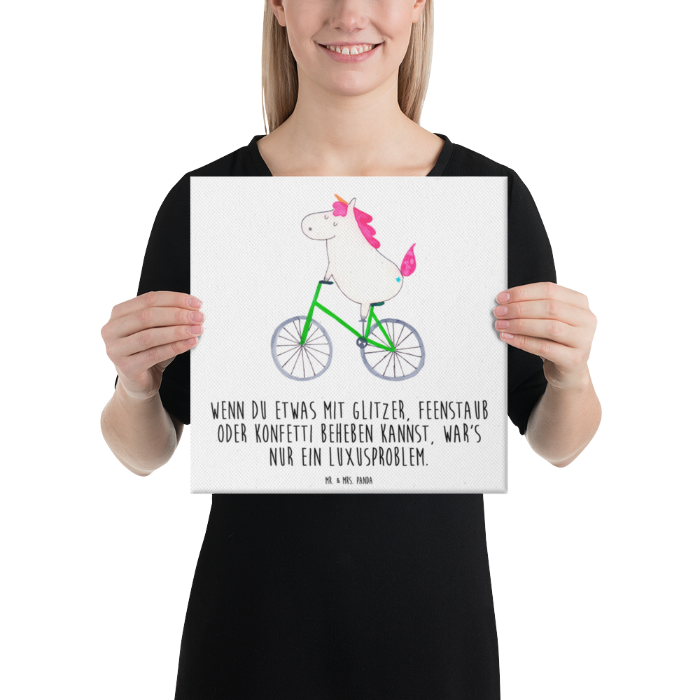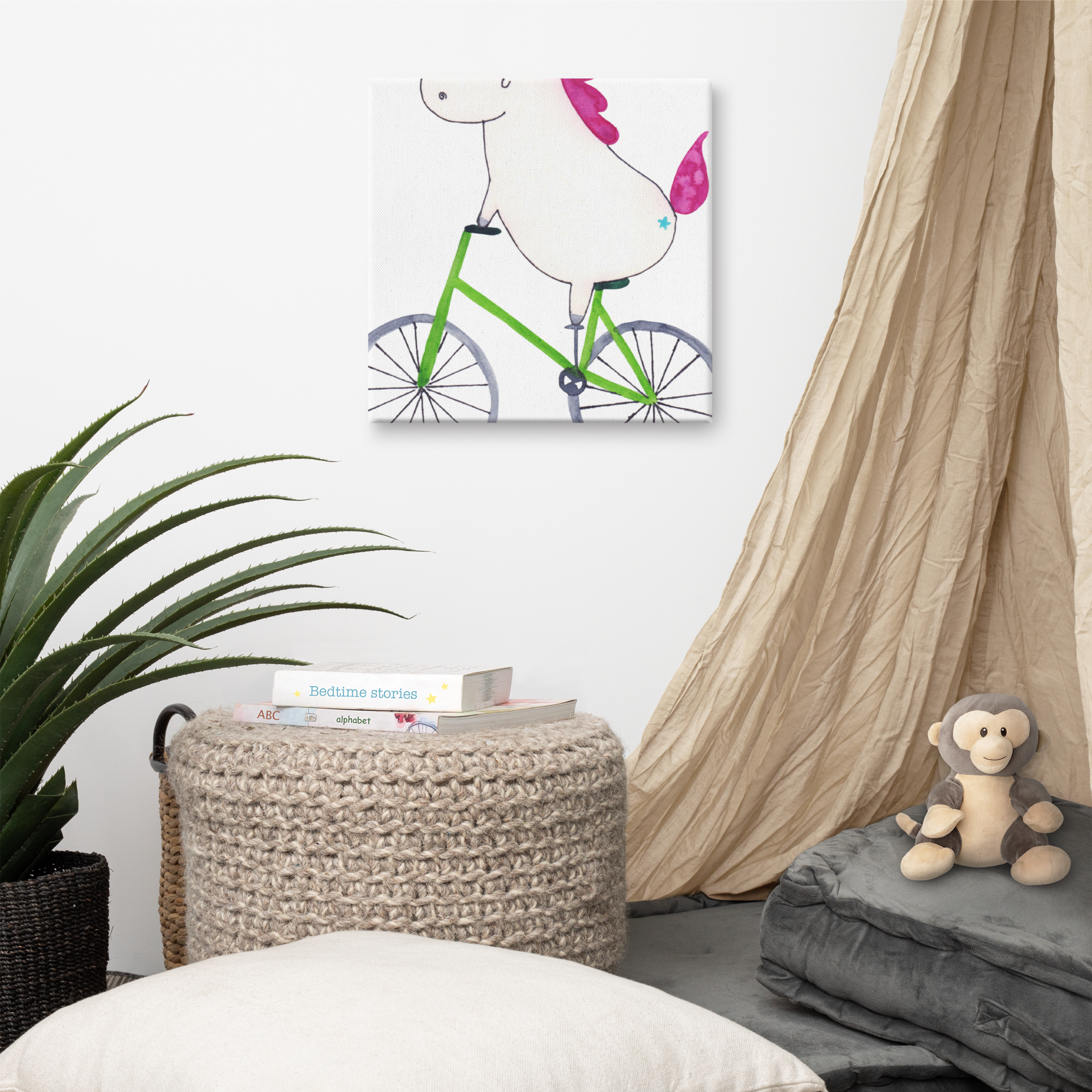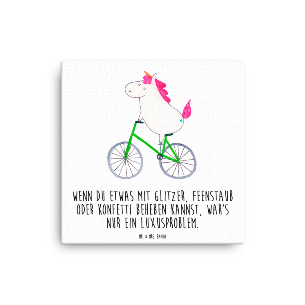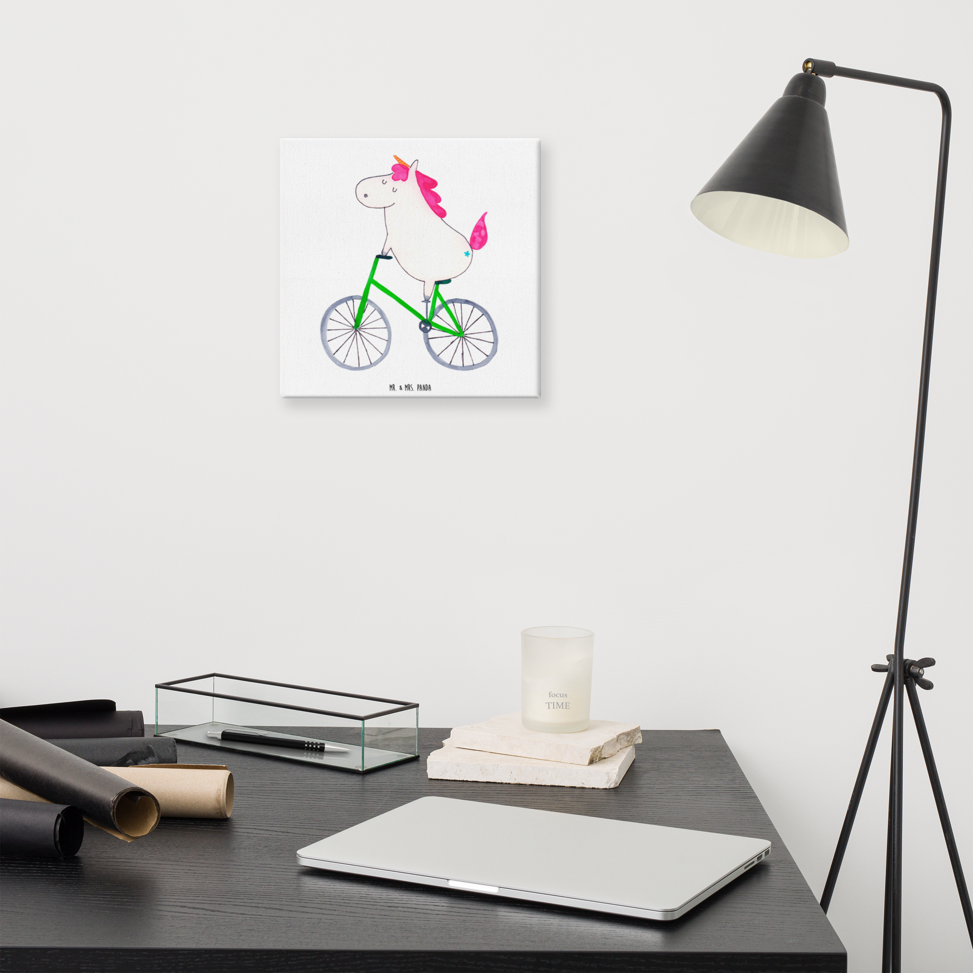 Leinwand Bild Einhorn Radfahrer - 40 x 40 cm - mit Spruch