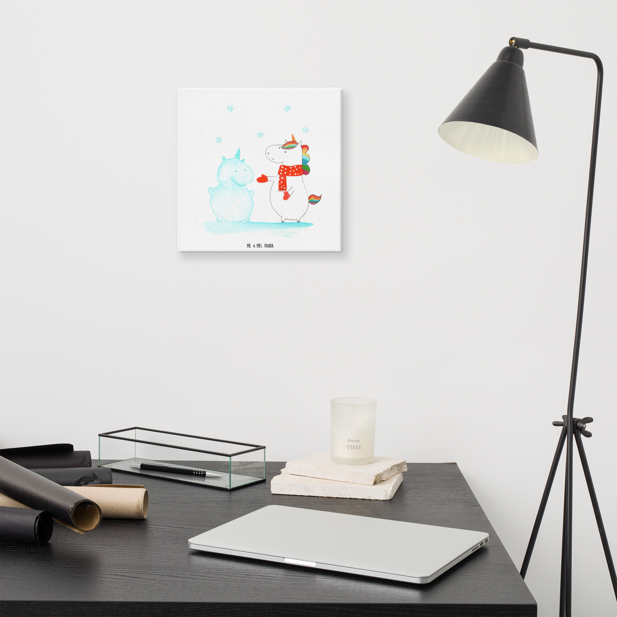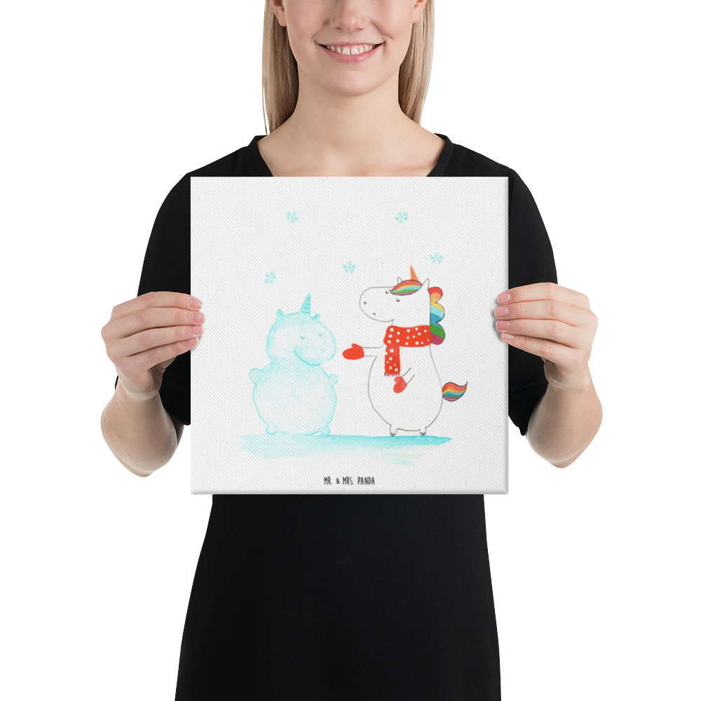 Leinwand Bild Einhorn Schneemann - 40 x 40 cm - mit Spruch