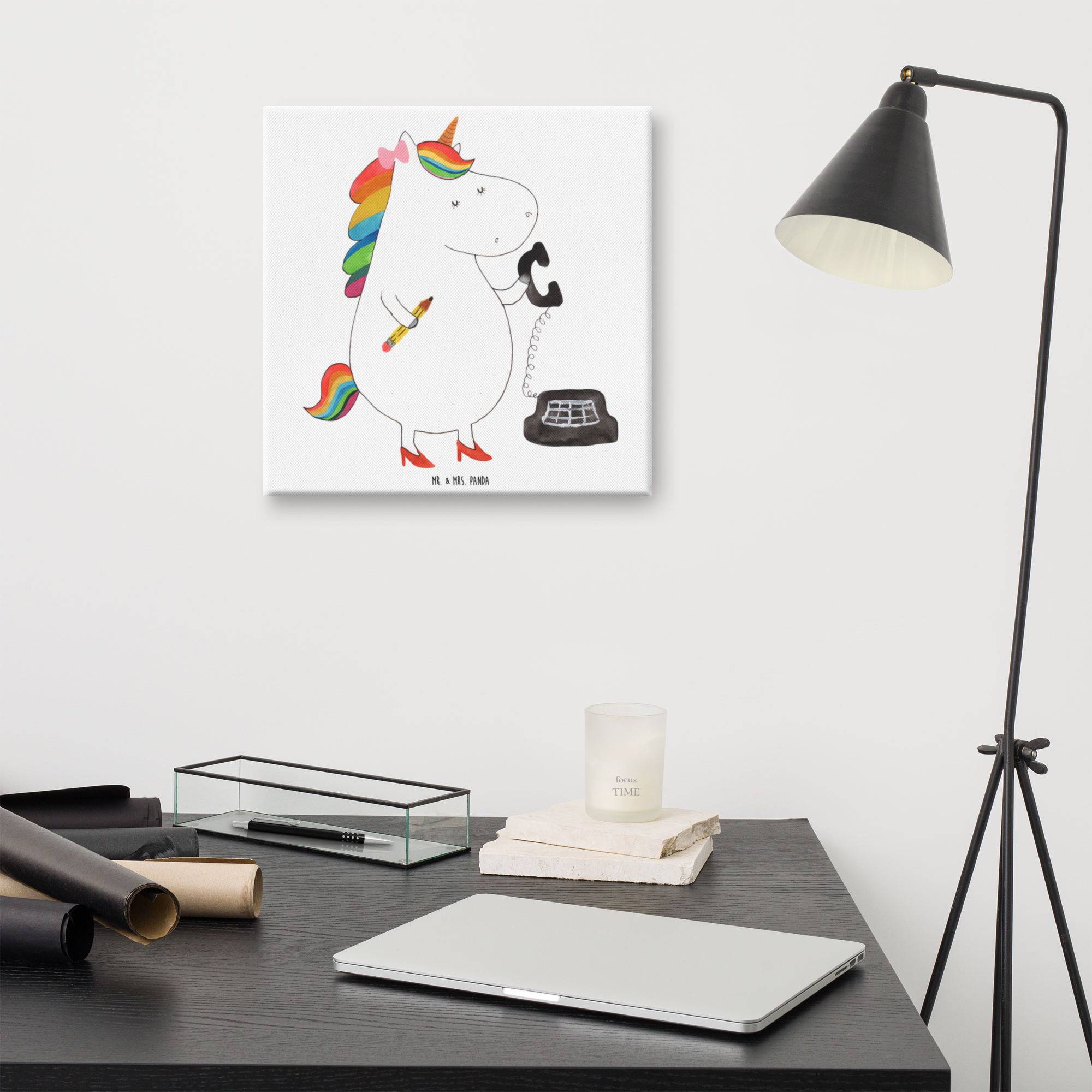 Leinwand Bild Einhorn Sekretärin - 40 x 40 cm - mit Spruch