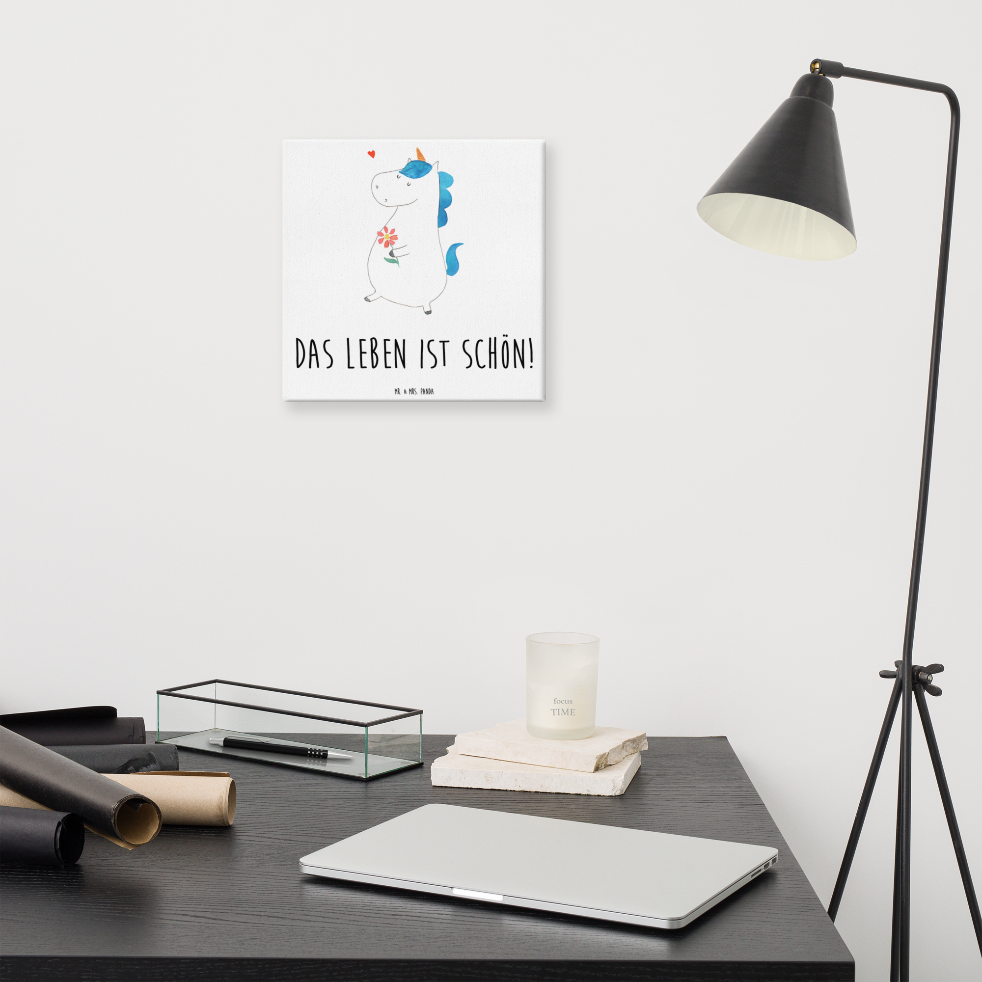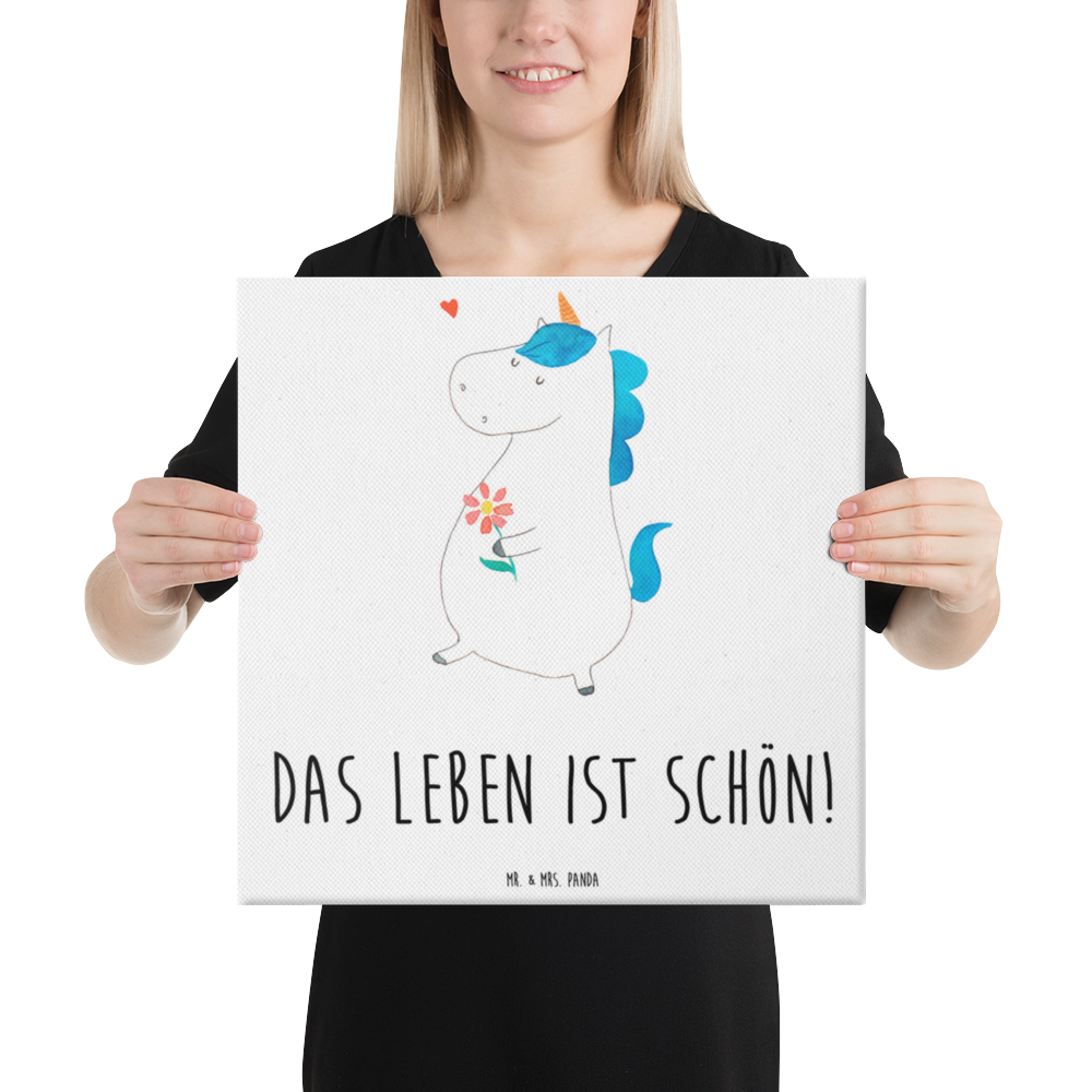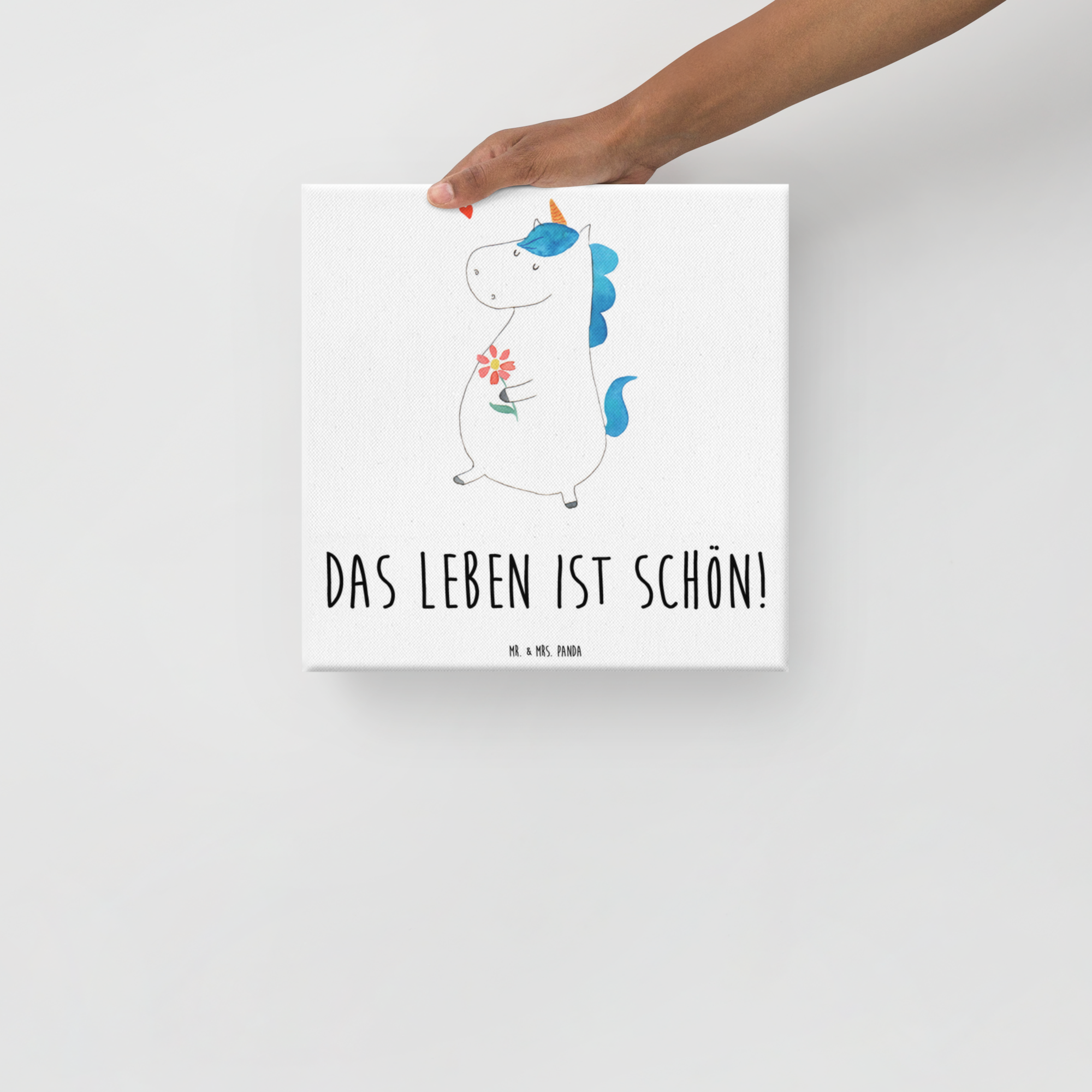 Leinwand Bild Einhorn Spaziergang - 40 x 40 cm - mit Spruch