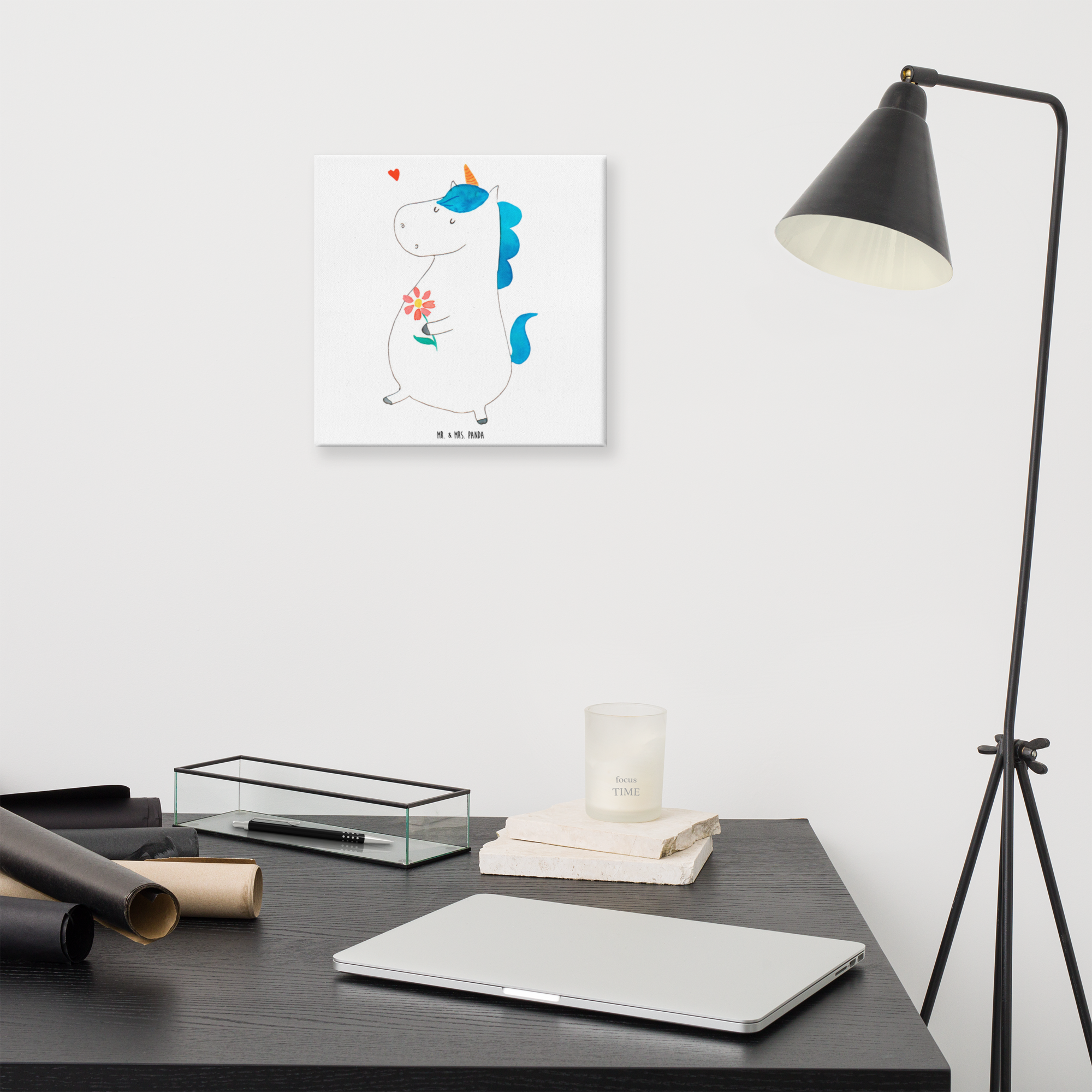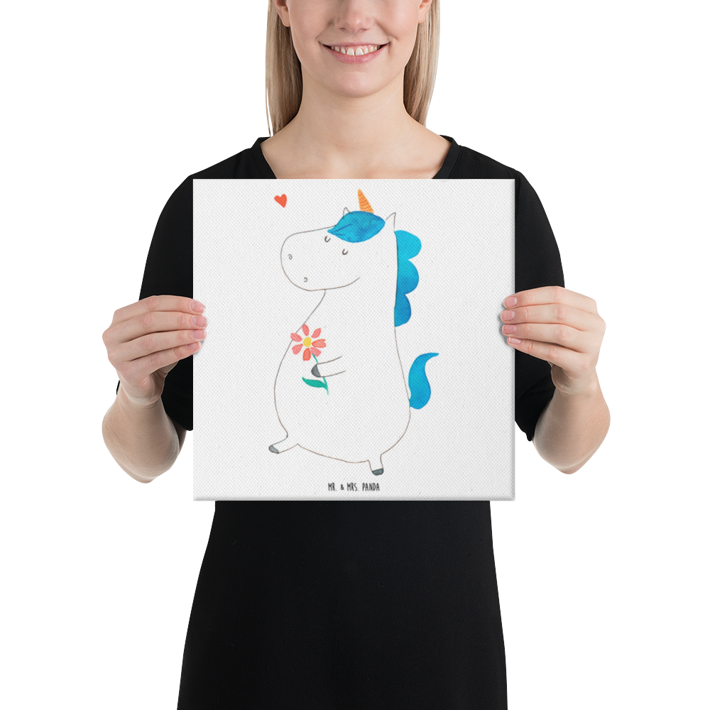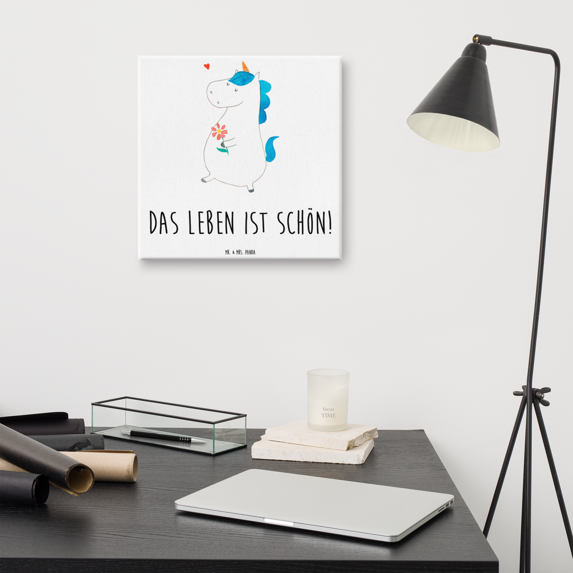 Leinwand Bild Einhorn Spaziergang - 40 x 40 cm - mit Spruch