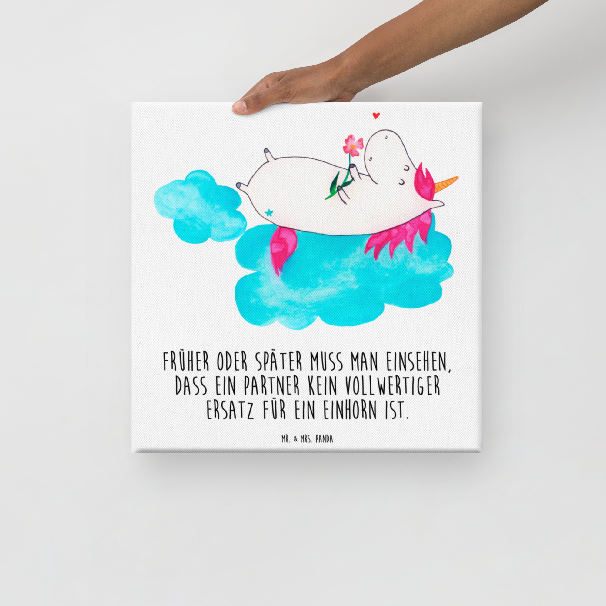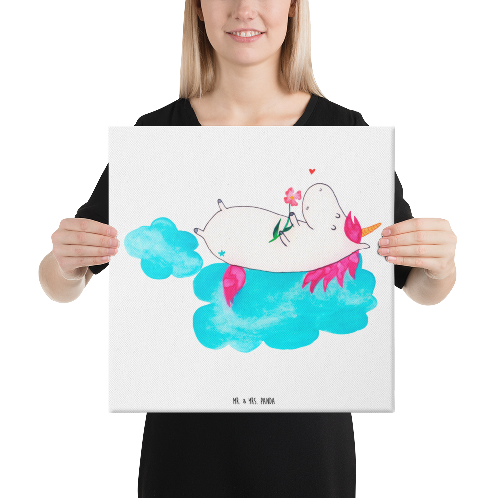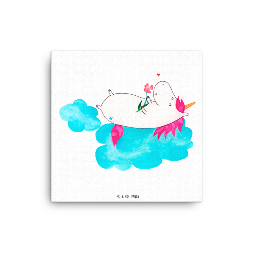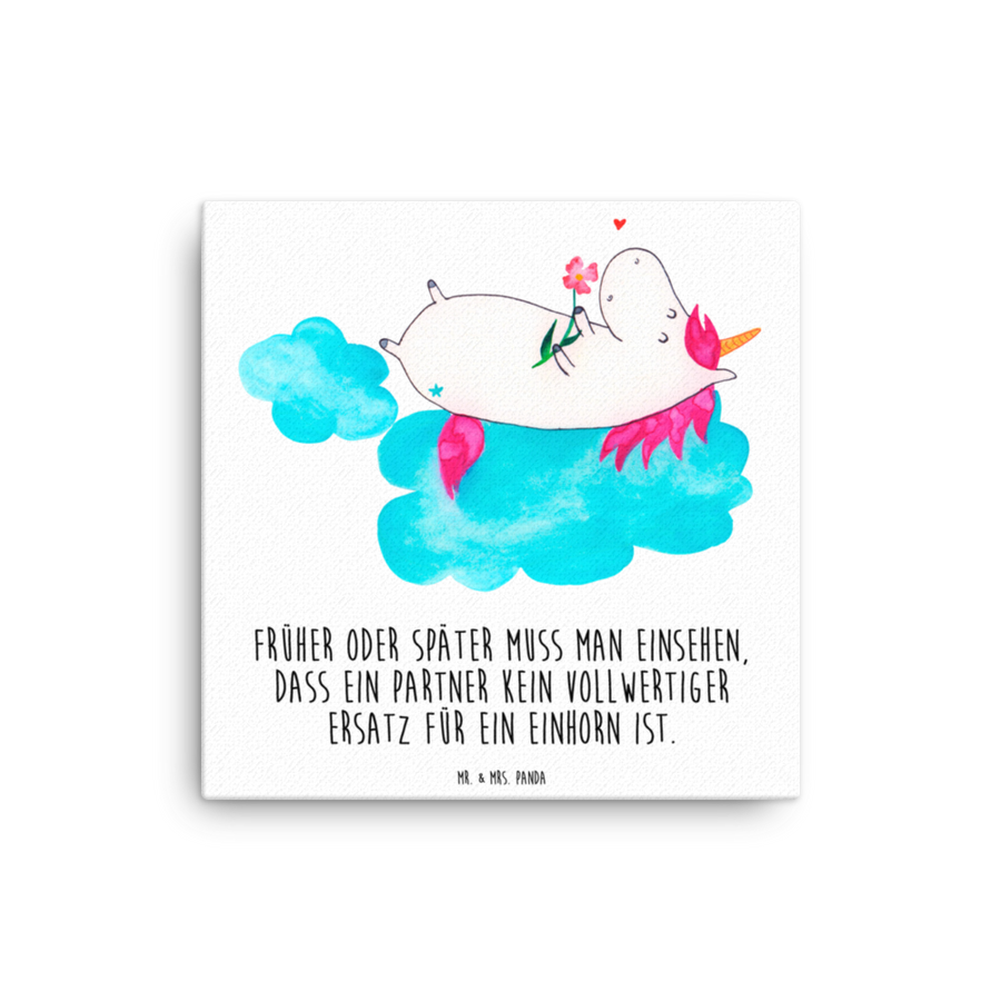 Leinwand Bild Einhorn verliebt auf Wolke - 40 x 40 cm - mit Spruch