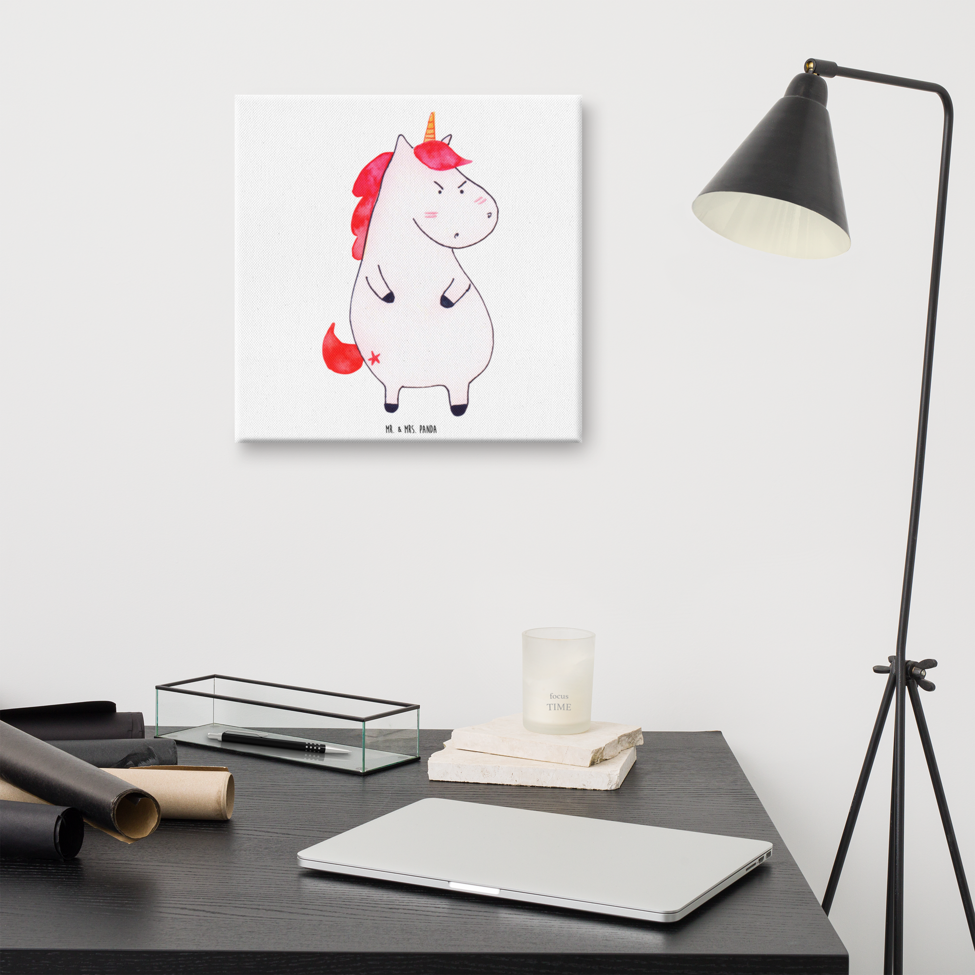 Leinwand Bild Einhorn wütend - 40 x 40 cm - mit Spruch