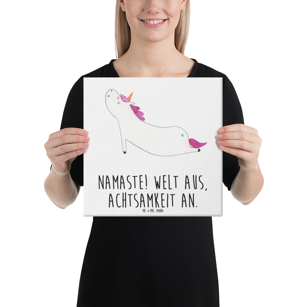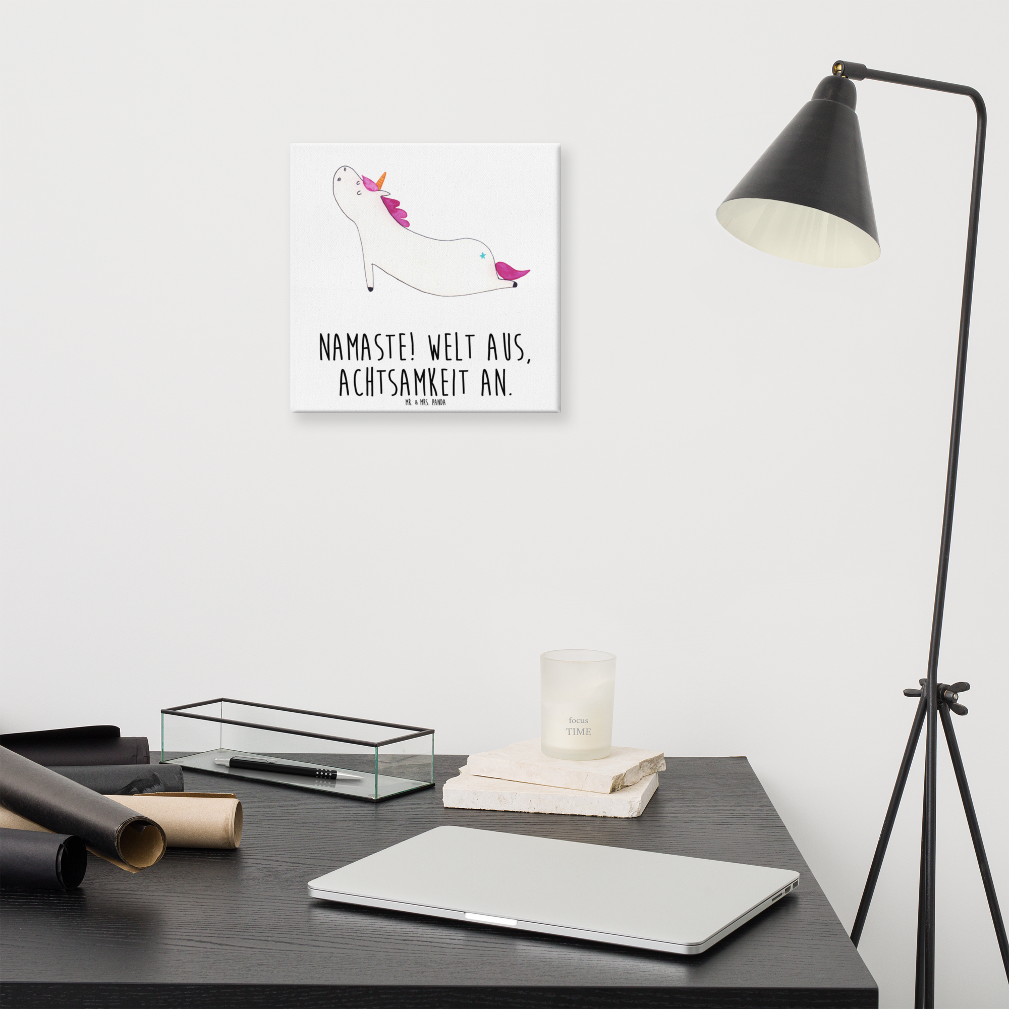 Leinwand Bild Einhorn Yoga - 40 x 40 cm - mit Spruch