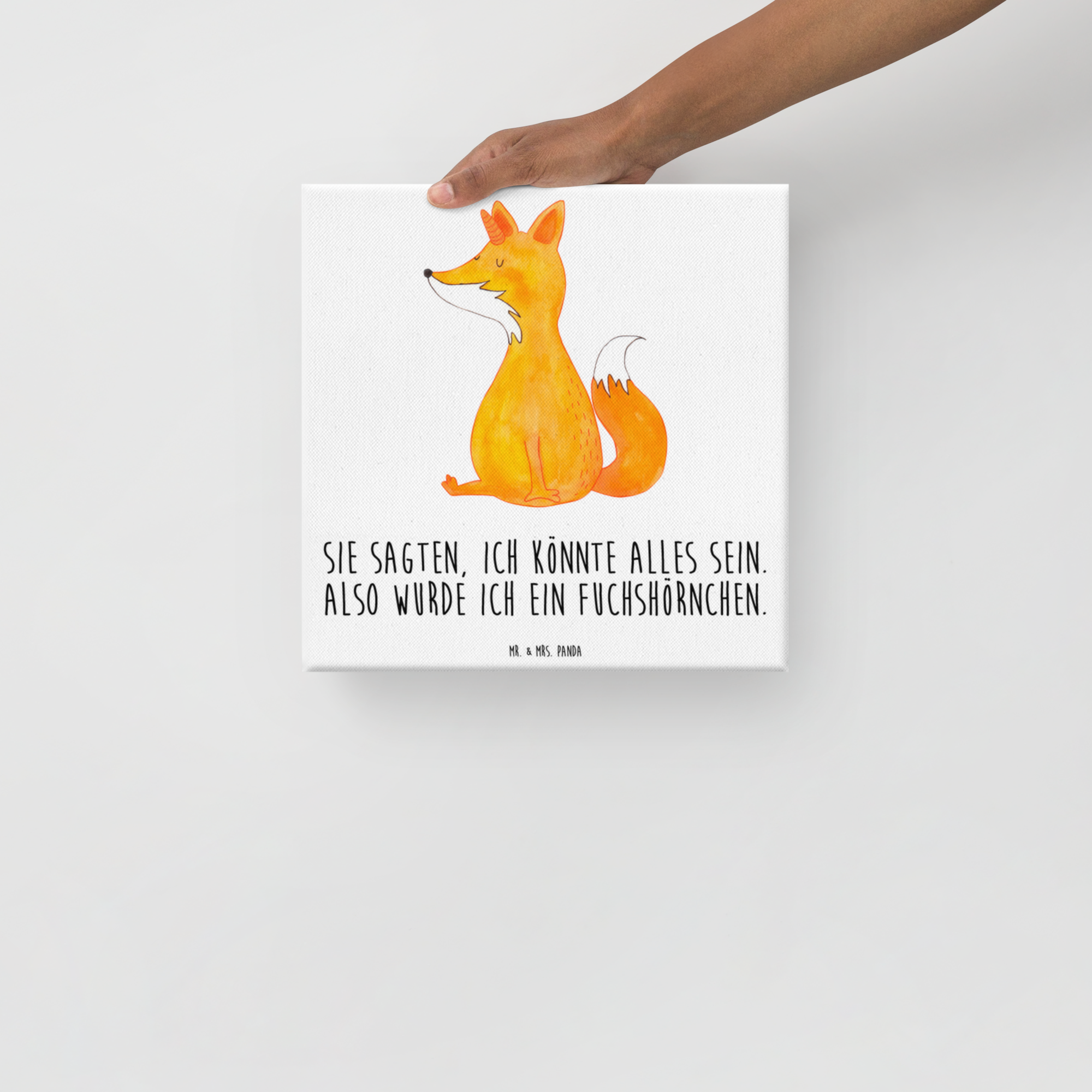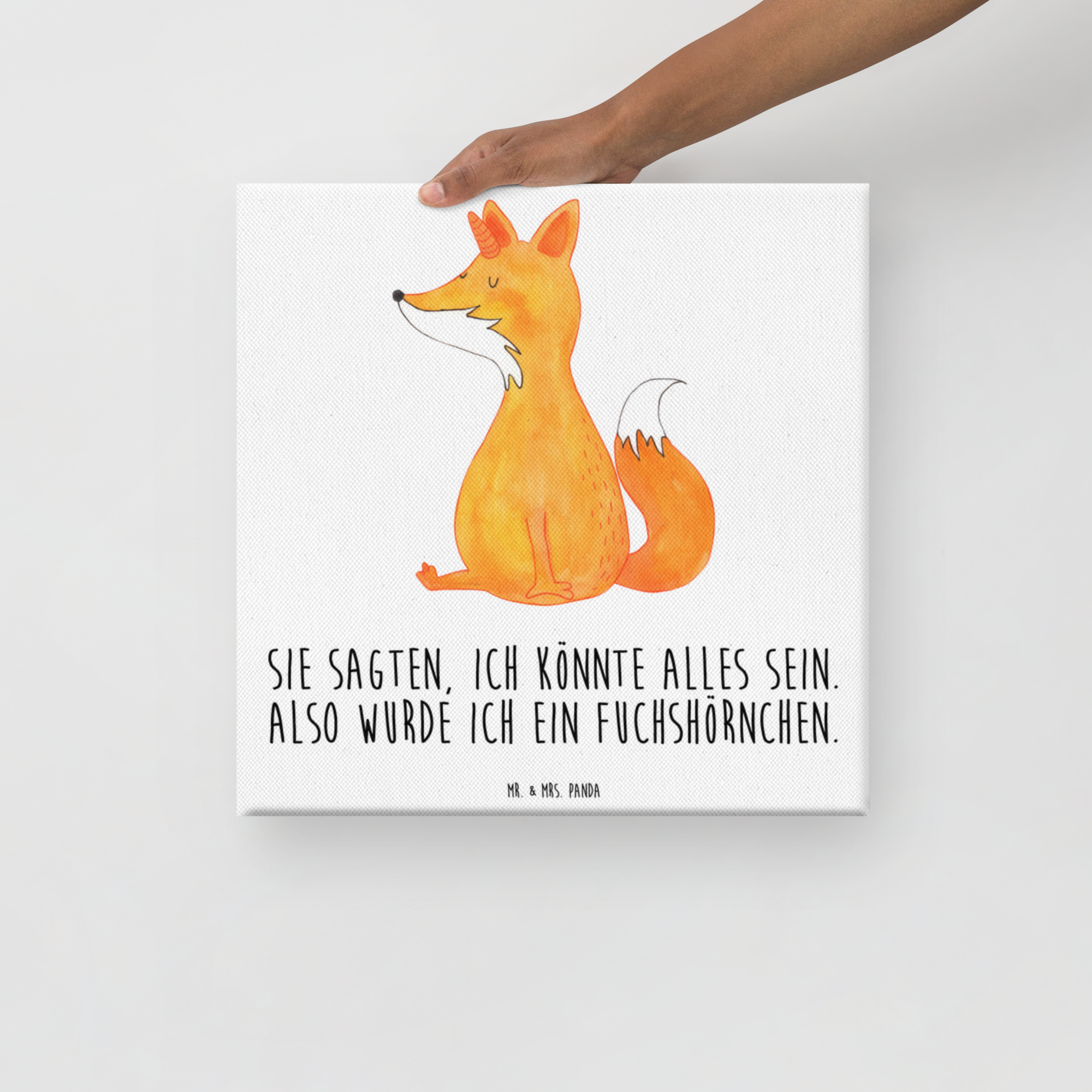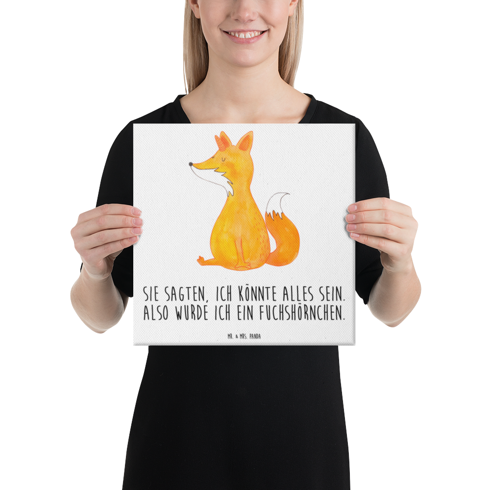 Leinwand Bild Fuchshörnchen Wunsch - 40 x 40 cm - mit Spruch