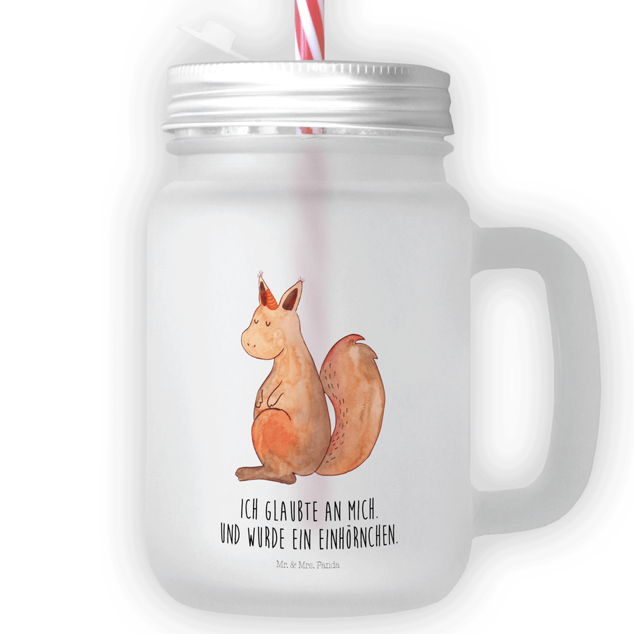 Trinkglas Mason Jar Einhörnchen Glaube - mit Spruch