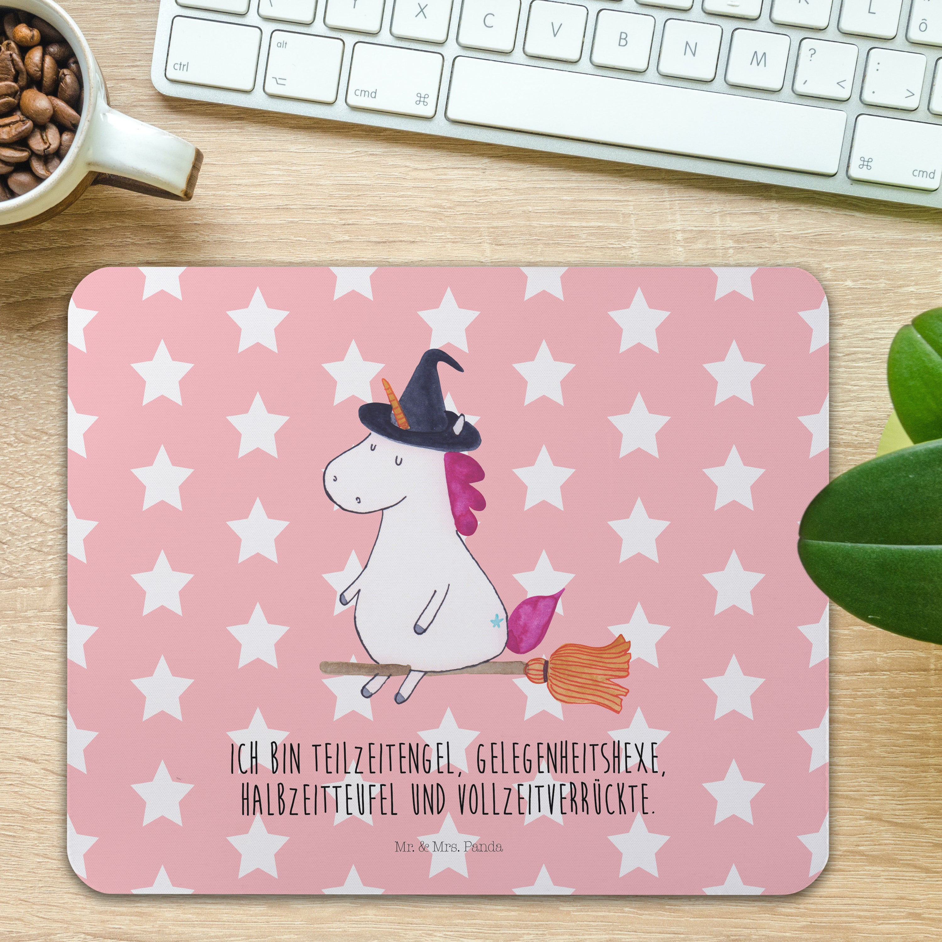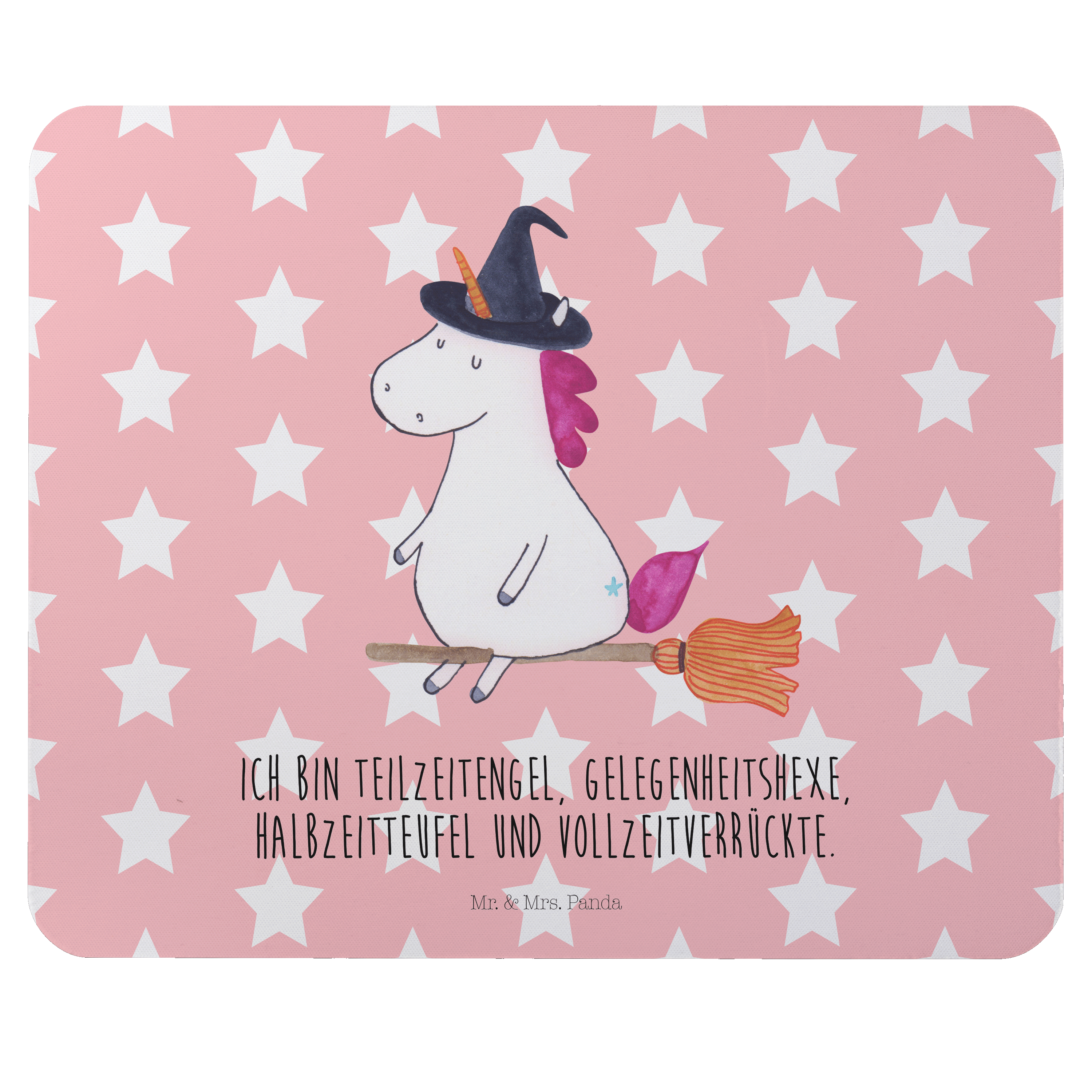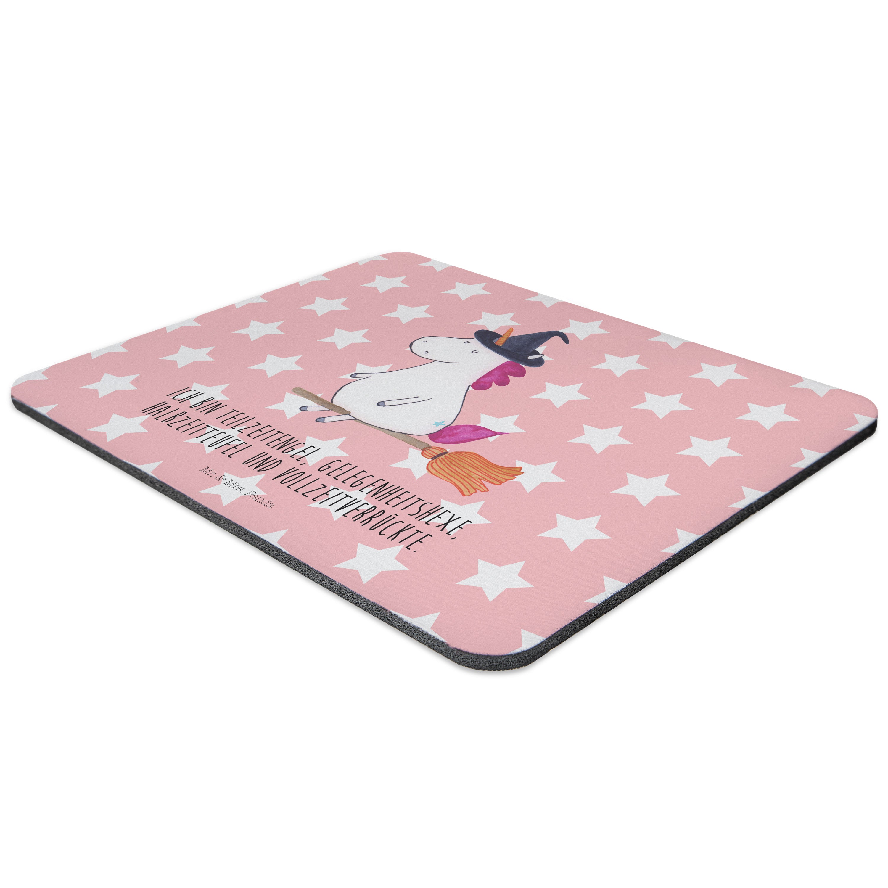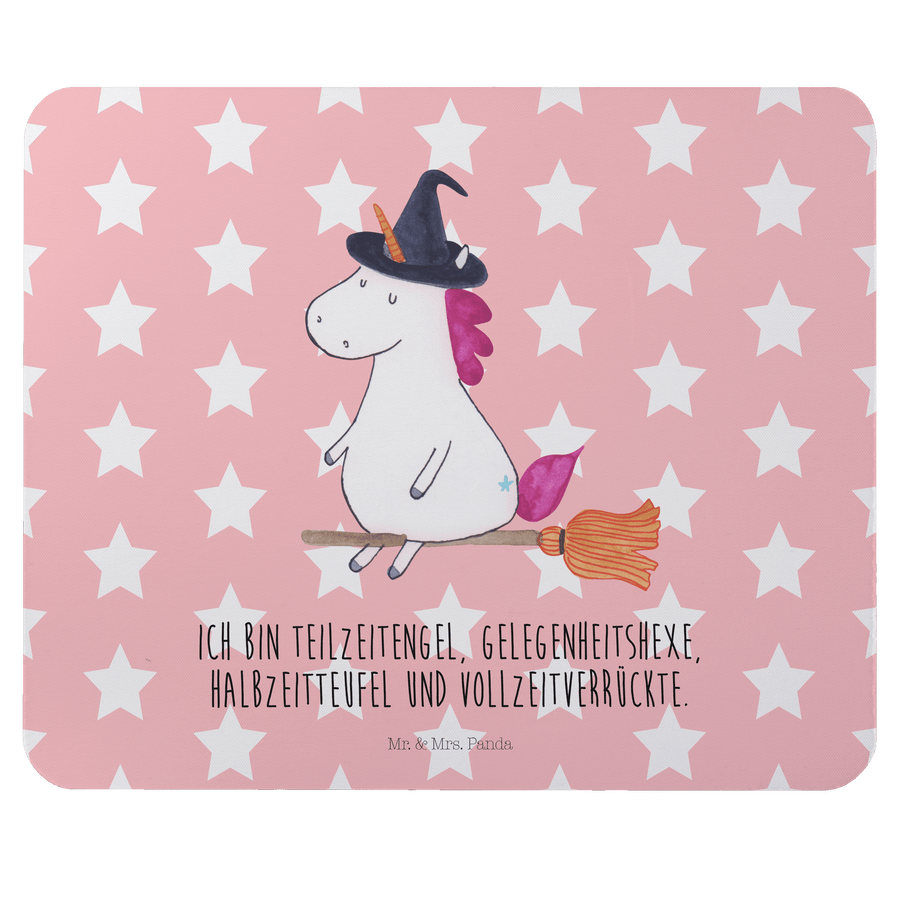 Mauspad Einhorn Hexe - mit Spruch - Rot Pastell