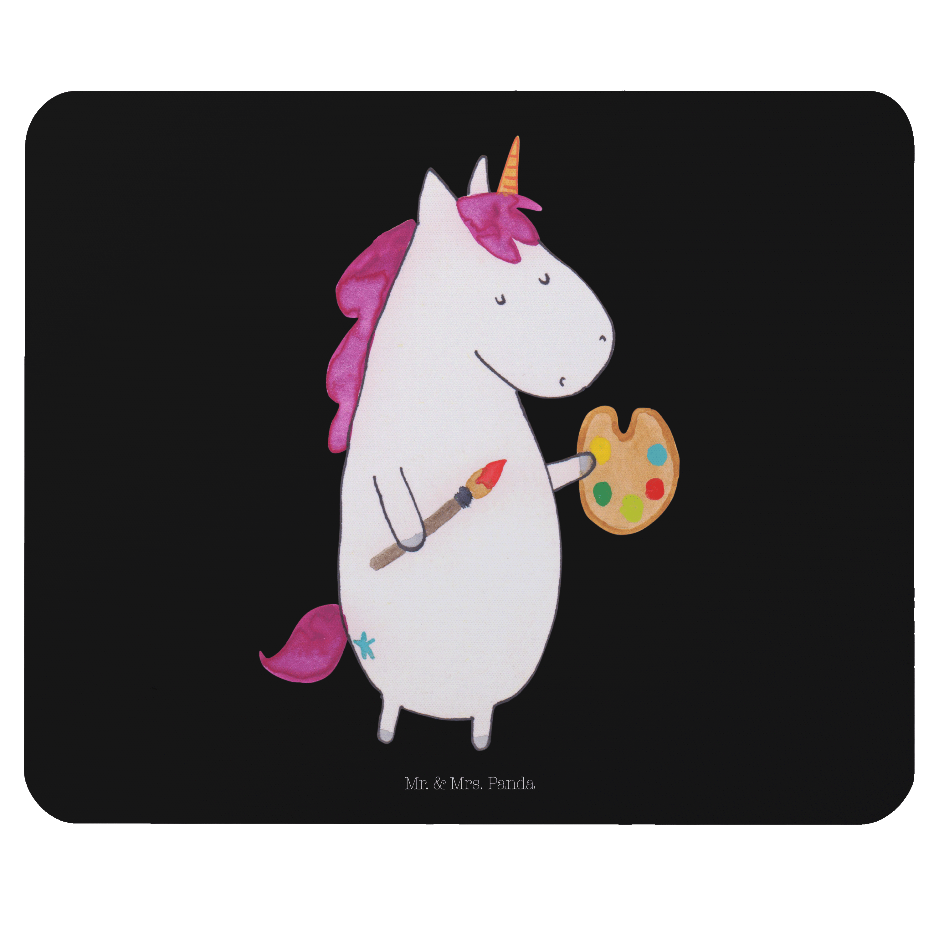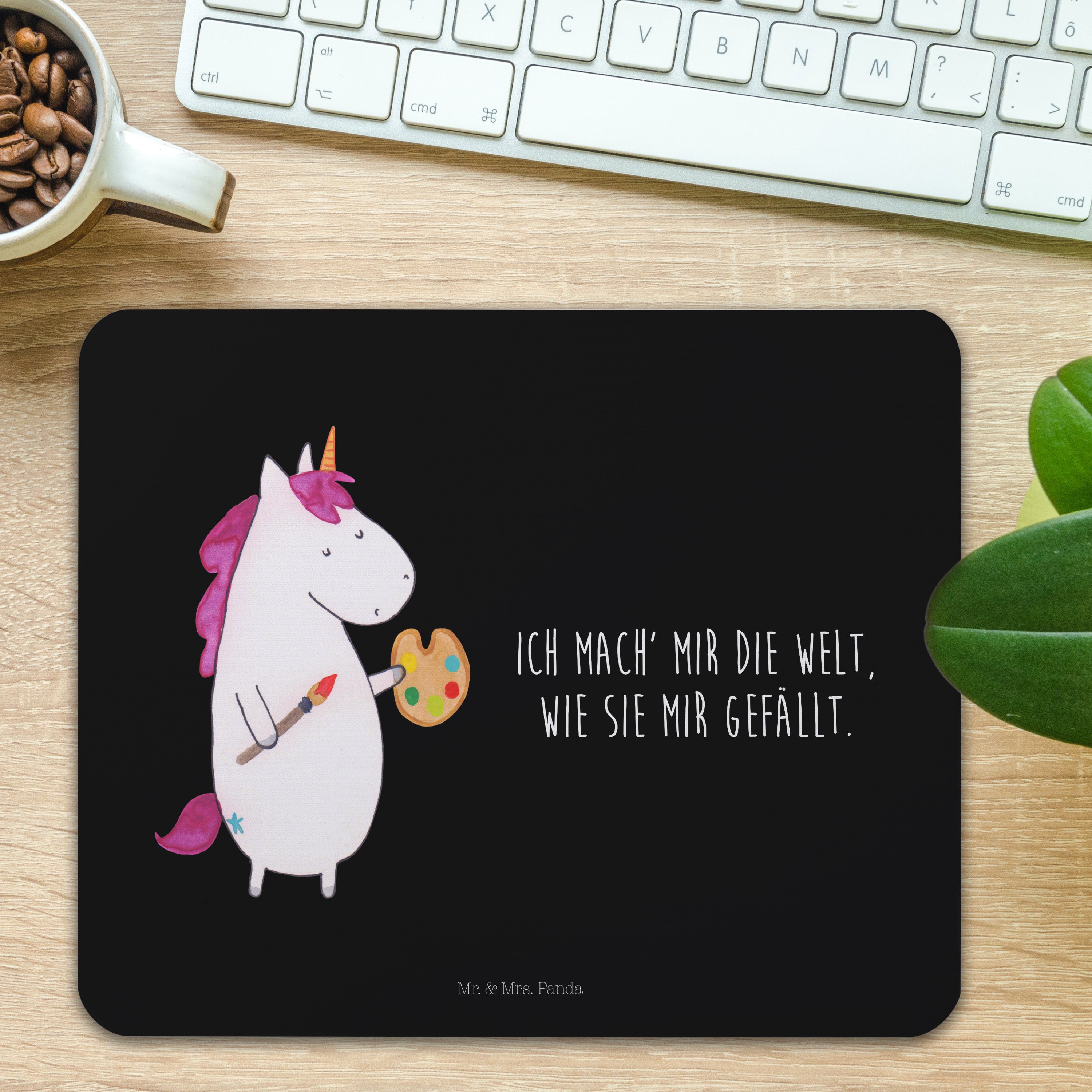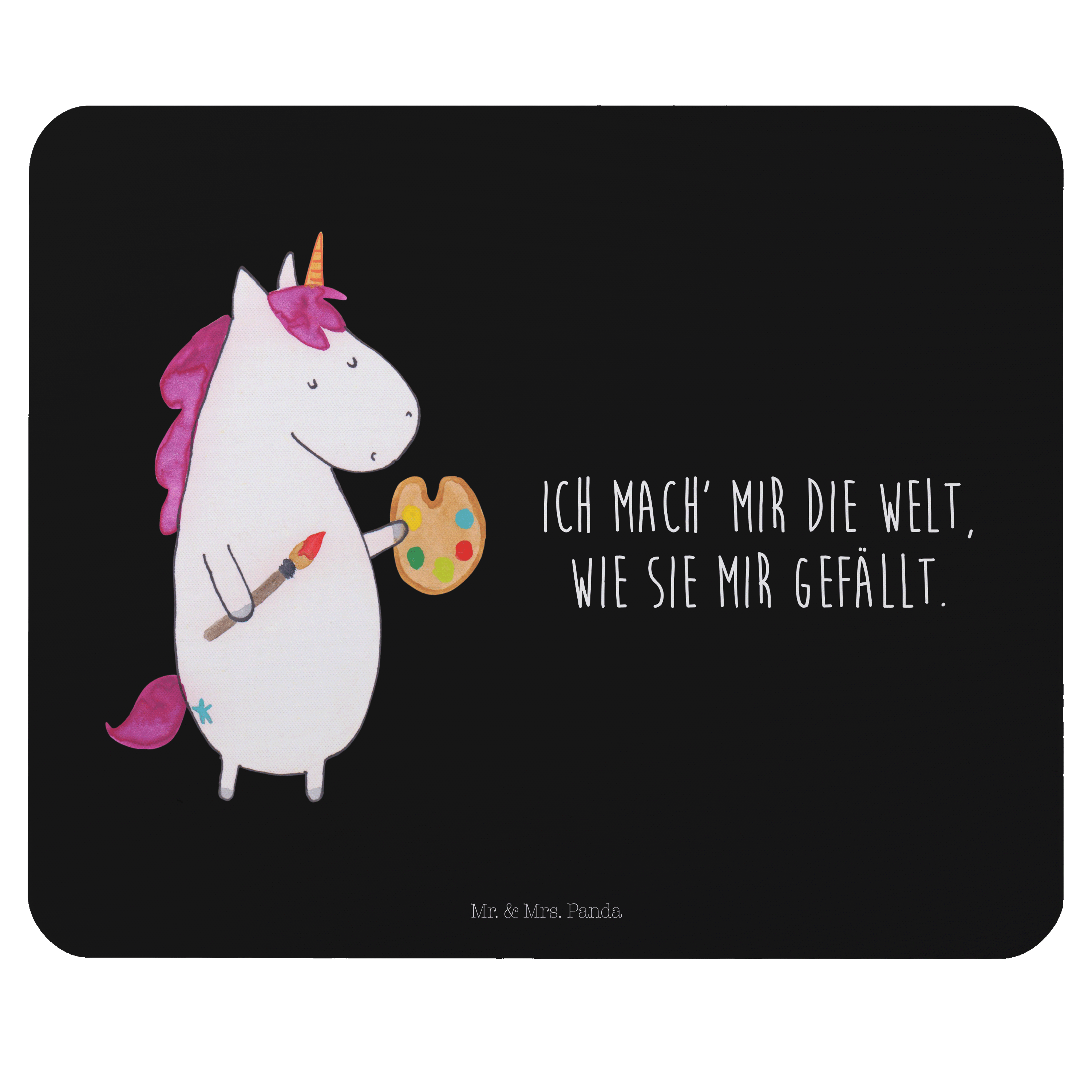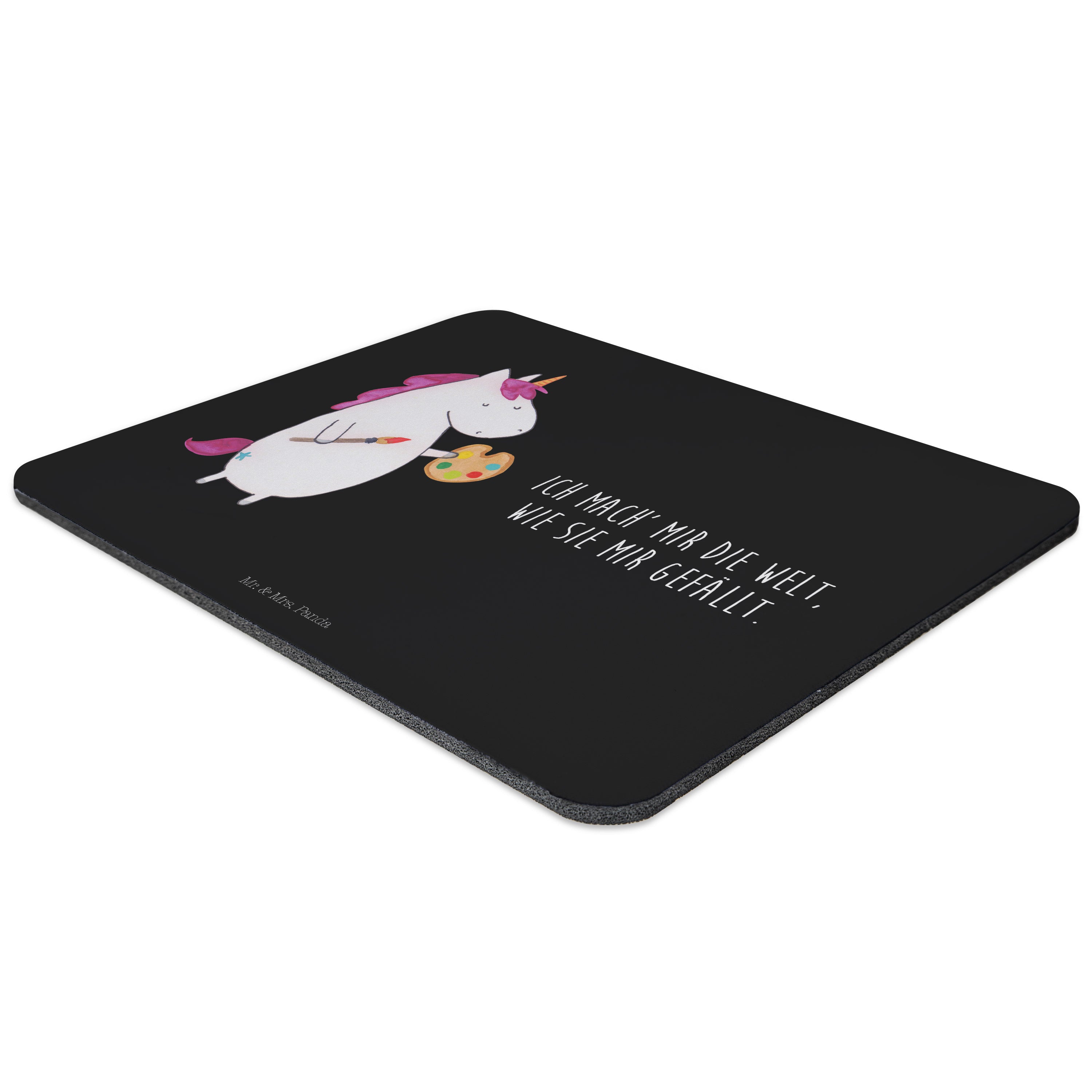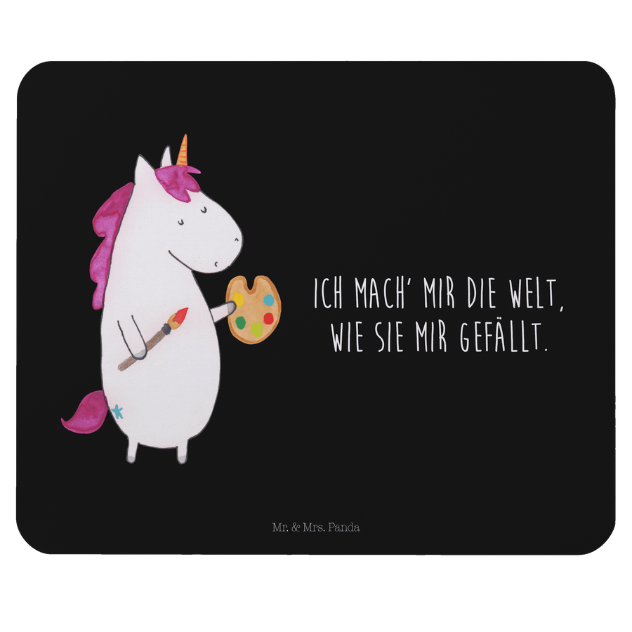 Mauspad Einhorn Künstler - mit Spruch - Schwarz