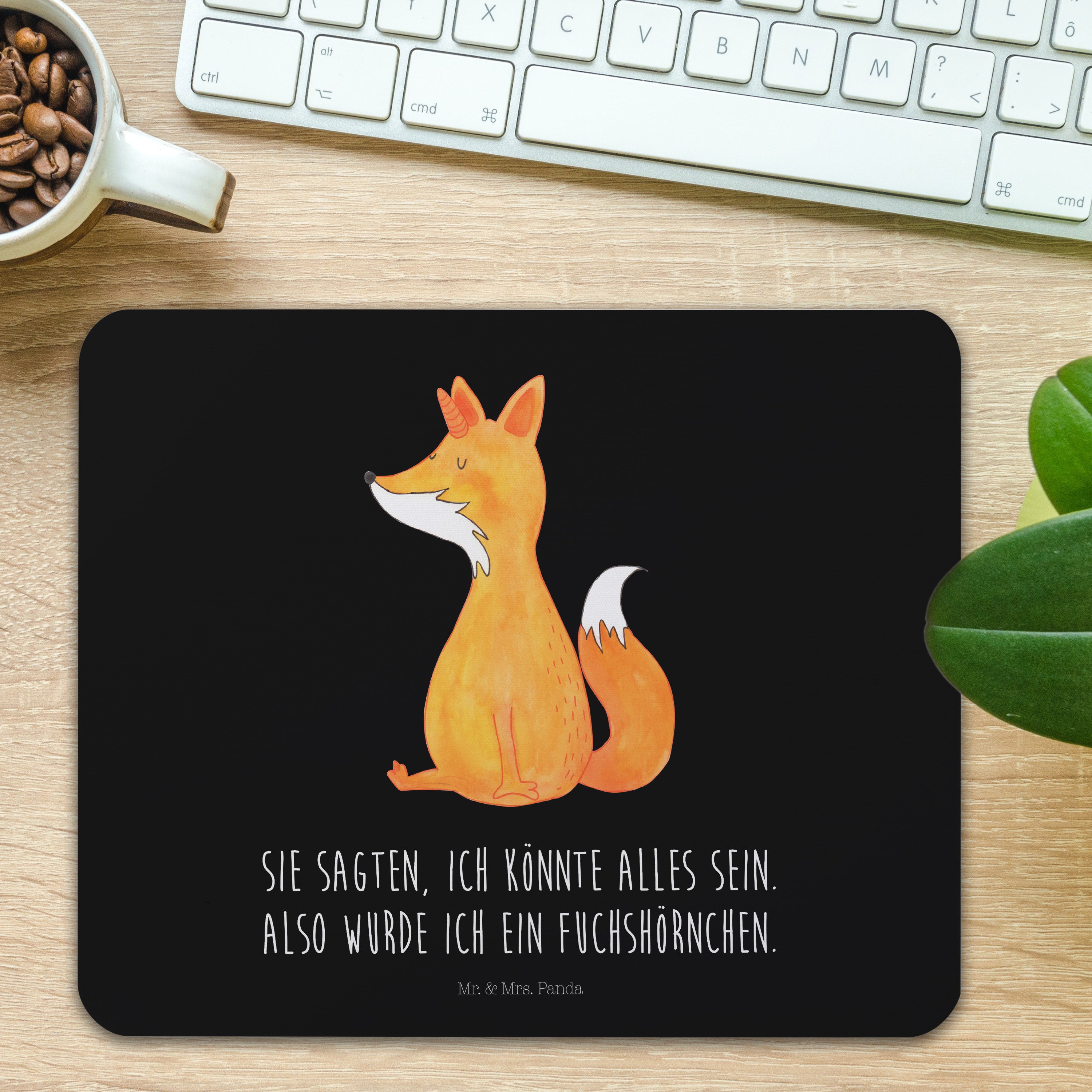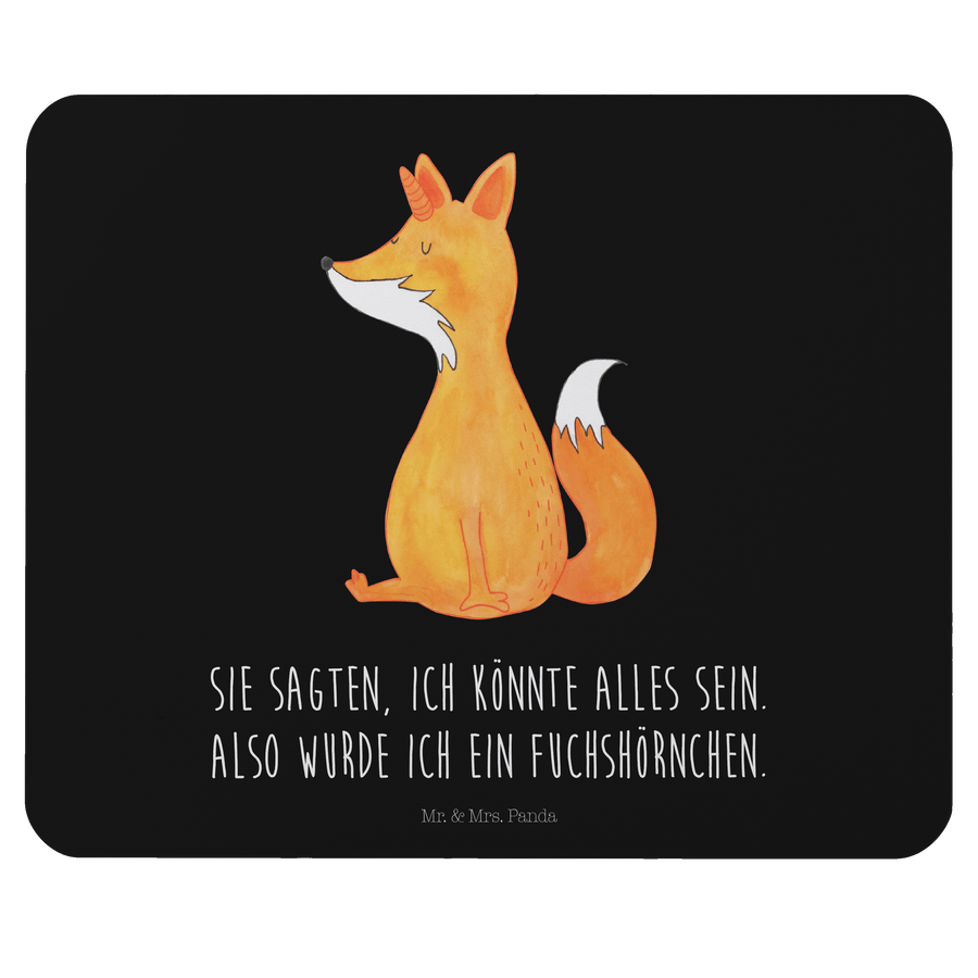 Mauspad Fuchshörnchen Wunsch - mit Spruch - Schwarz