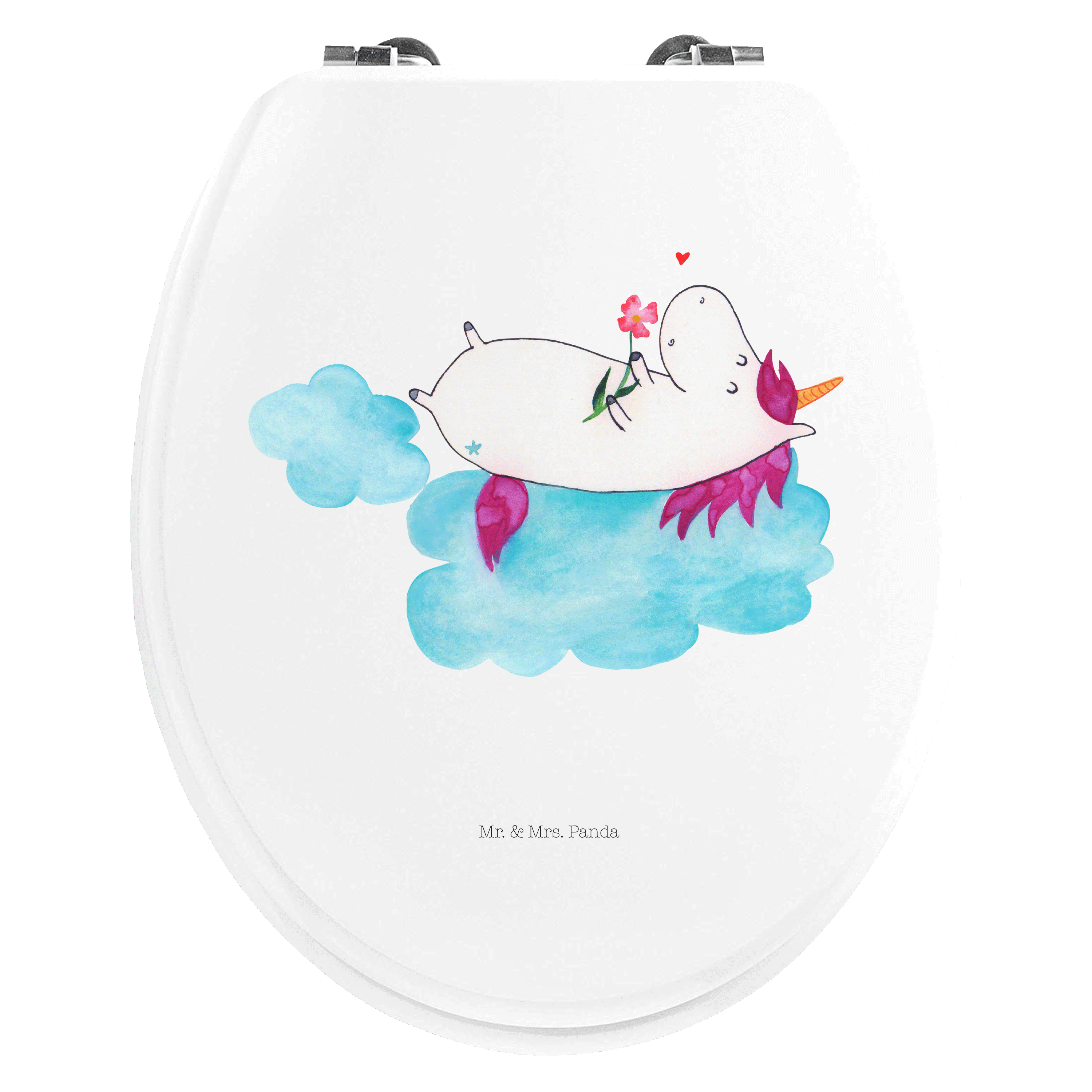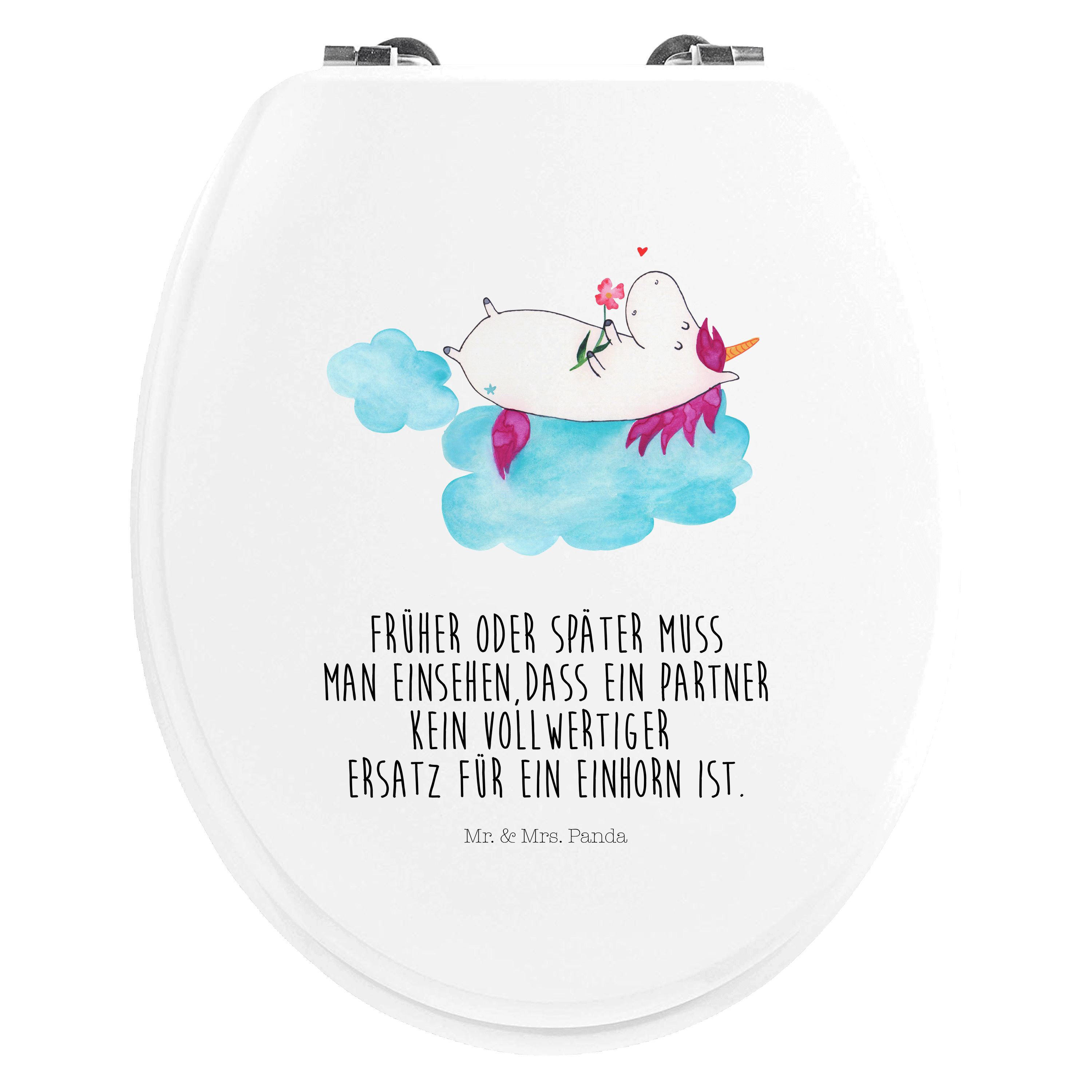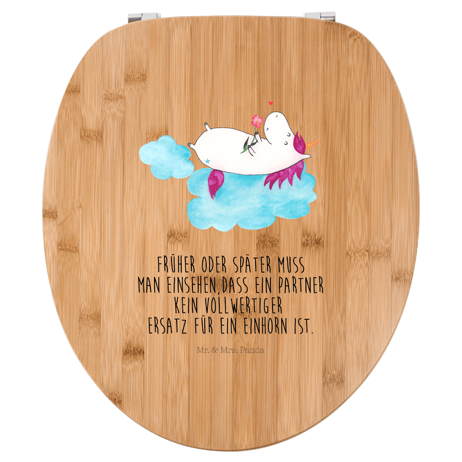 Motiv WC Sitz Einhorn verliebt auf Wolke - mit Spruch - Transparent