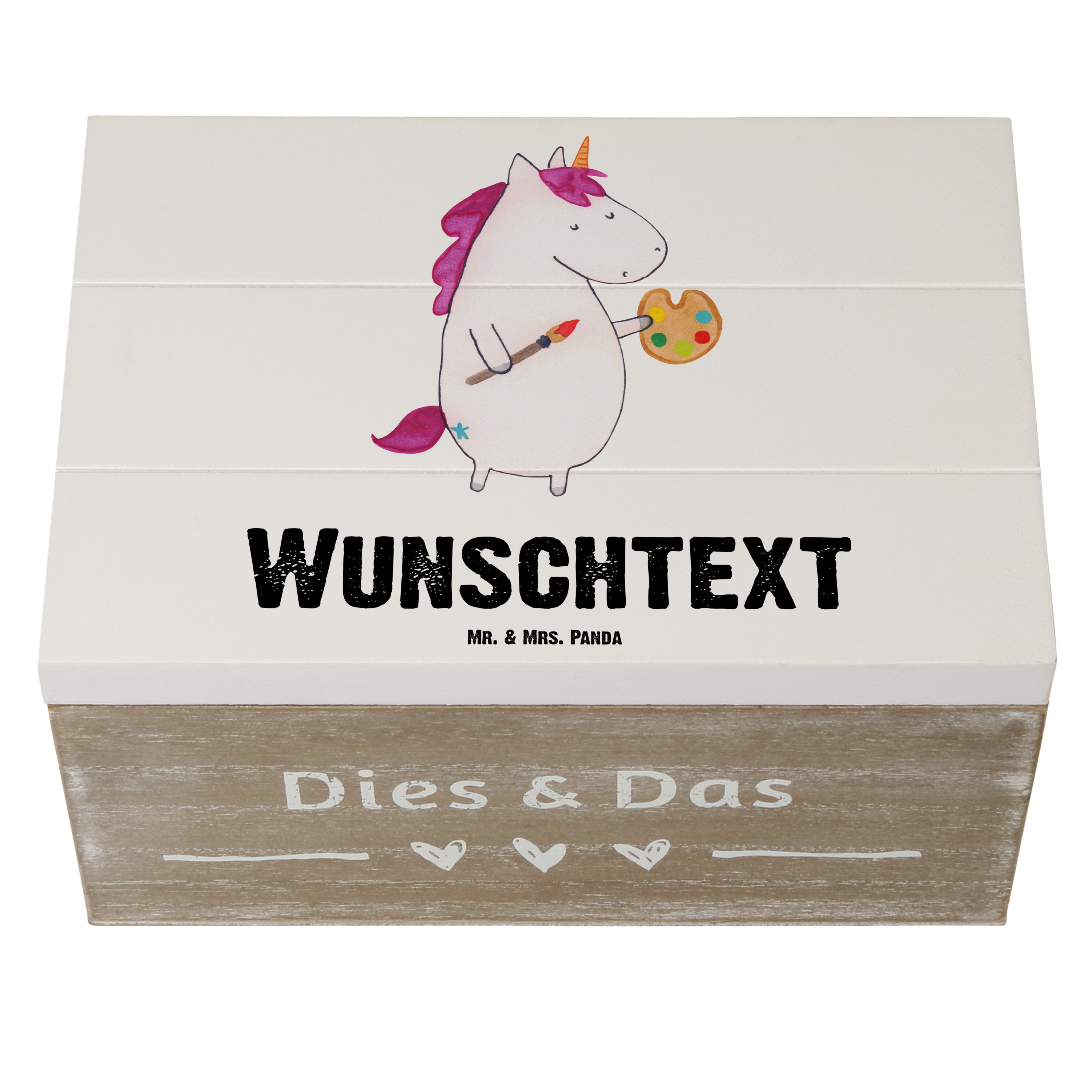 Personalisierte Holzkiste Einhorn Künstler - 19 x 12 cm