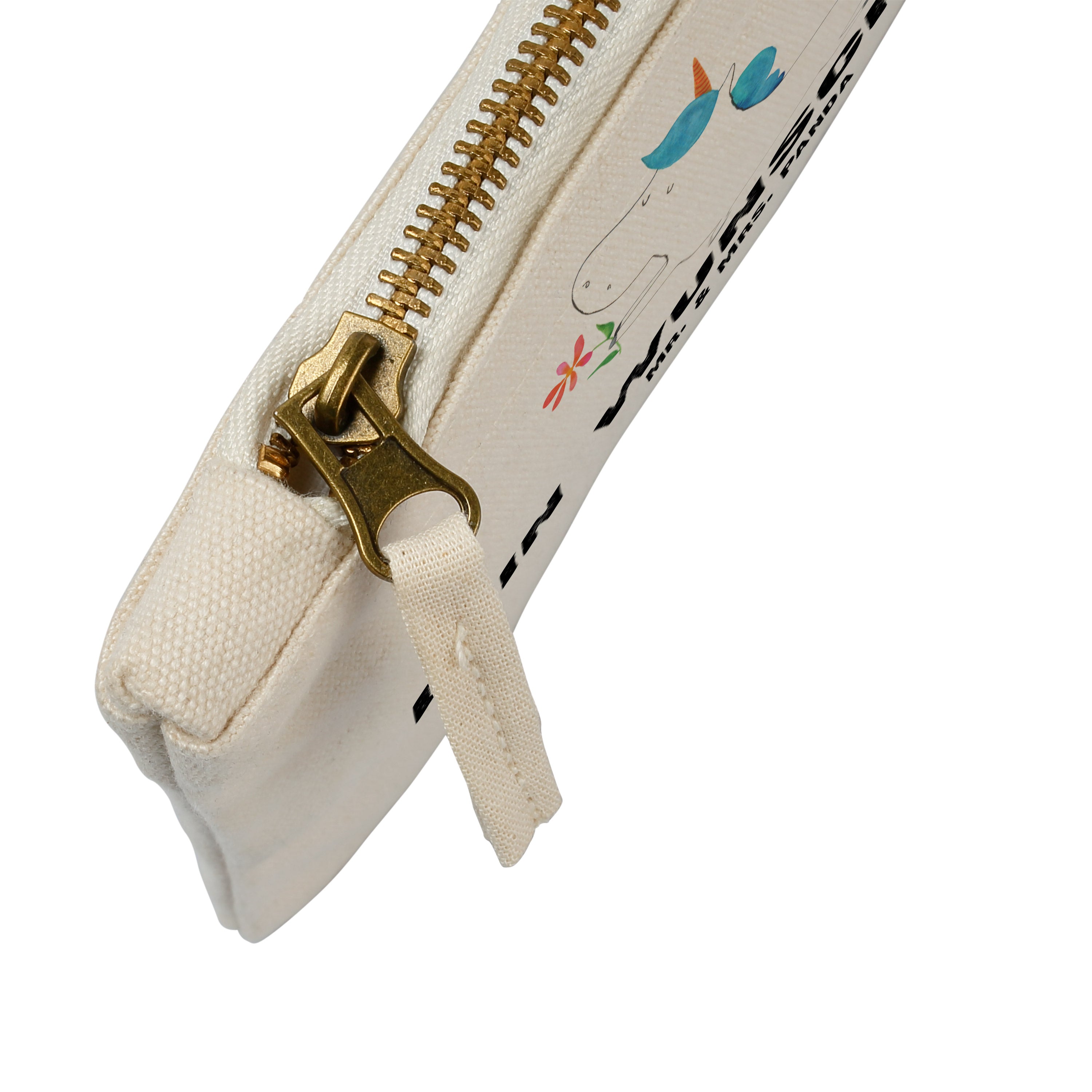Eine wunderschöne Schminktasche von Mr. & Mrs. Panda mit Reißverschlussfach. Diese Kosmetiktasche oder Kosmetikbeutel ist aus 100% Baumwolle und bedruckt mit unseren wunderschönen handgezeichneten Motiven. Hol dir dieses einzigartige Etui direkt nach Hause - du kannst die Tasche auch perfekt als Stiftemäppchen, Federmappe, Schlamper oder Etui verwenden. Das Produkt ist in den folgenden Maßen erhältlich: - Größe S - Kleine Schminktasche 110 x 210 mm - Größe M - Mittlere Schminktasche 155 x 220 mm - Größe XL - Große Schminktasche 200 x 285 mm