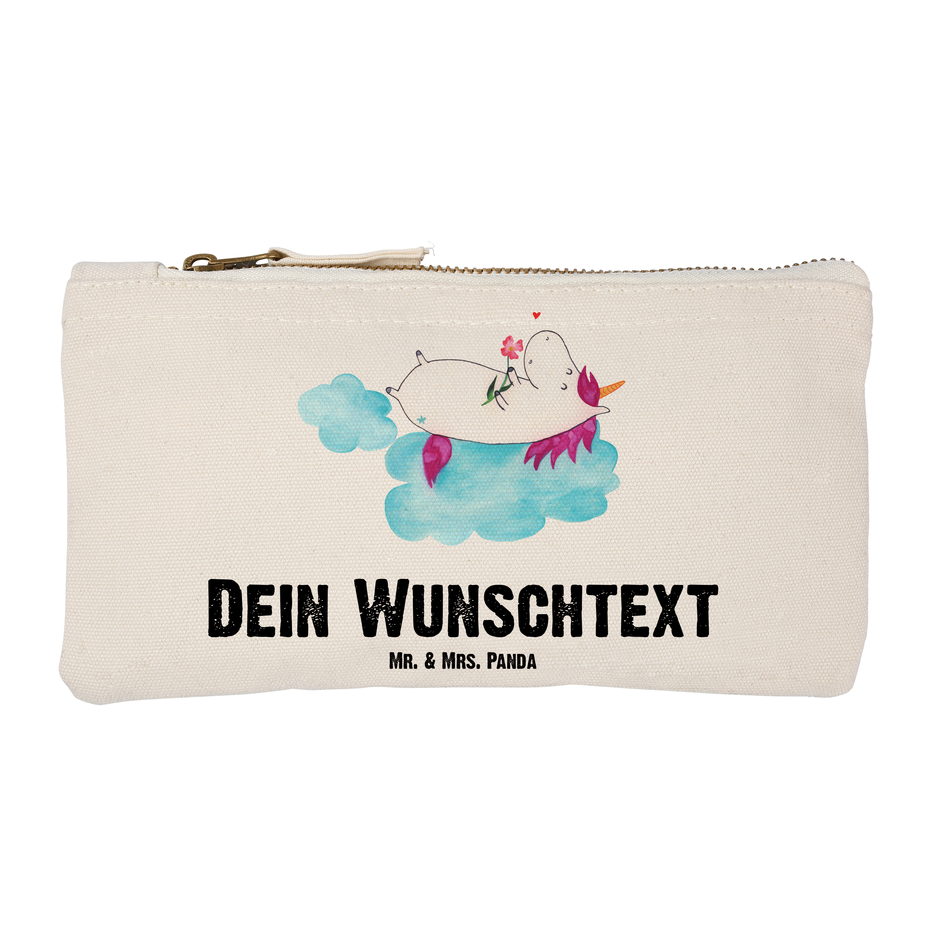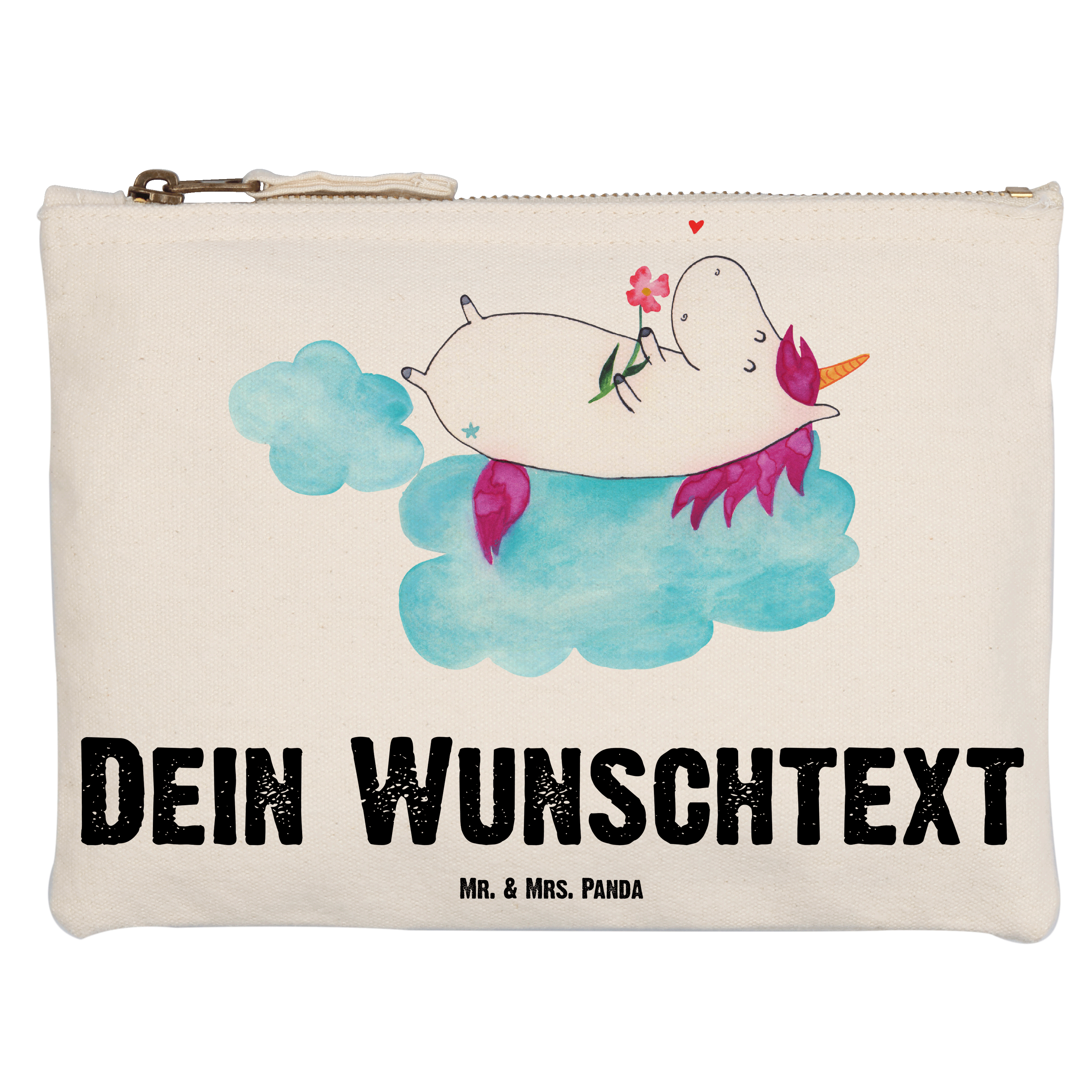 Personalisierte Schminktasche Einhorn verliebt auf Wolke - Größe S Klein