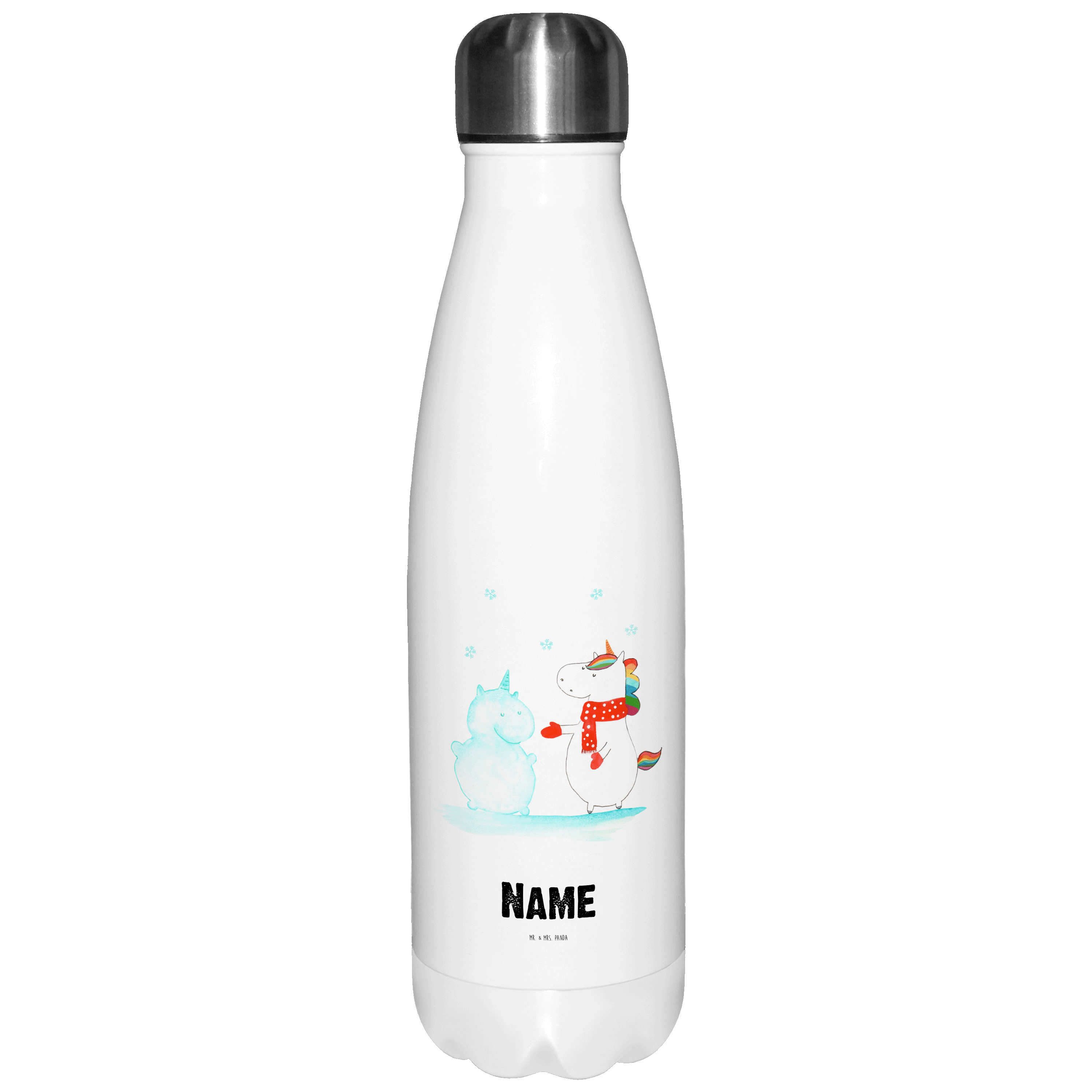 Personalisierte Thermosflasche Einhorn Schneemann