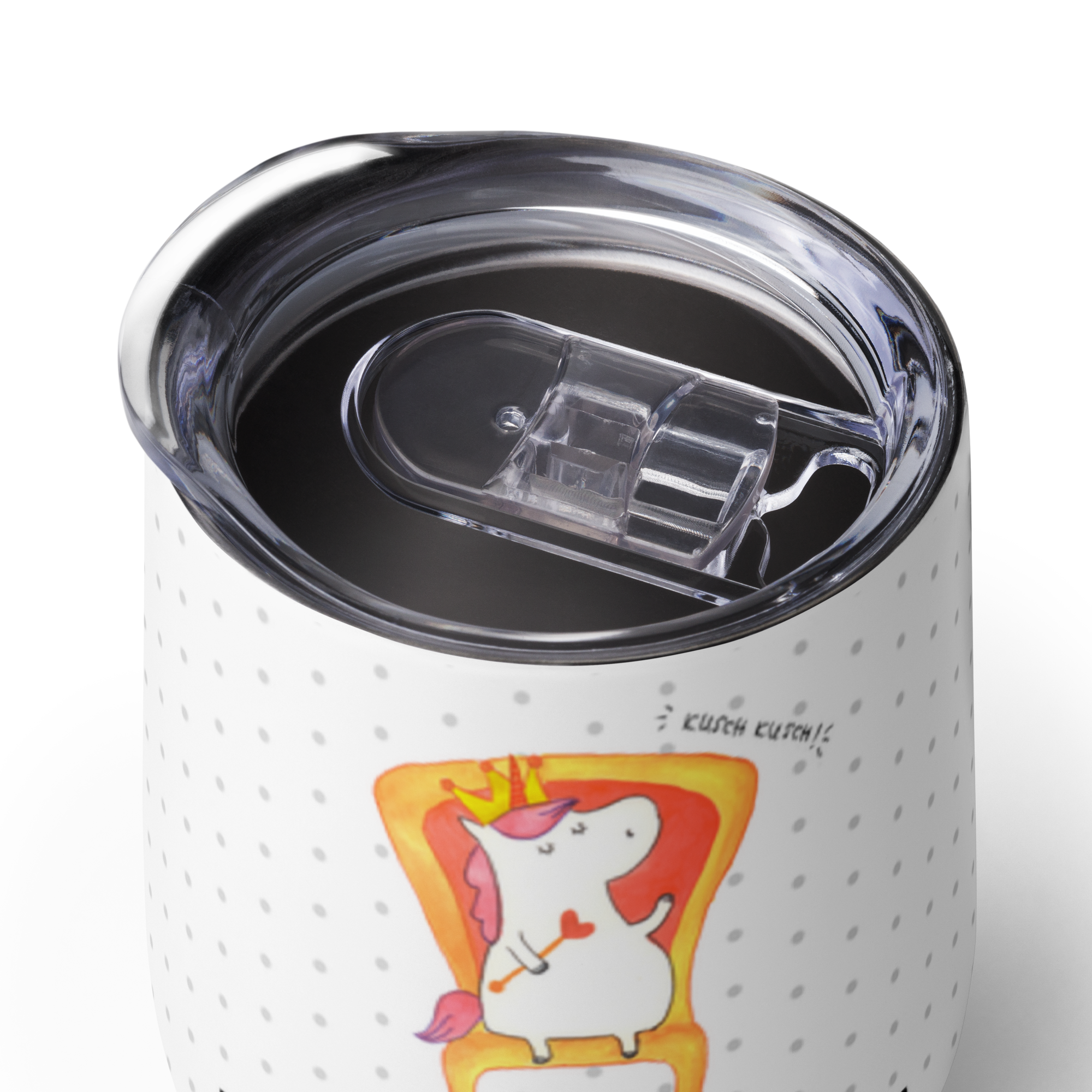 Das süße Einhorn auf dem Thron ist genau das richtige Geschenk für die beste Freundin. Denn manchmal würden wir doch alle gerne mit einer Krone auf einem Thron sitzen und Leuten, die uns nerven, ein kurzes "kusch, kusch" zurufen. Hauptsache sie lassen den Sekt da. Tipp von Mr. & Mrs. Panda: das perfekte Motiv für die Zimmertür.