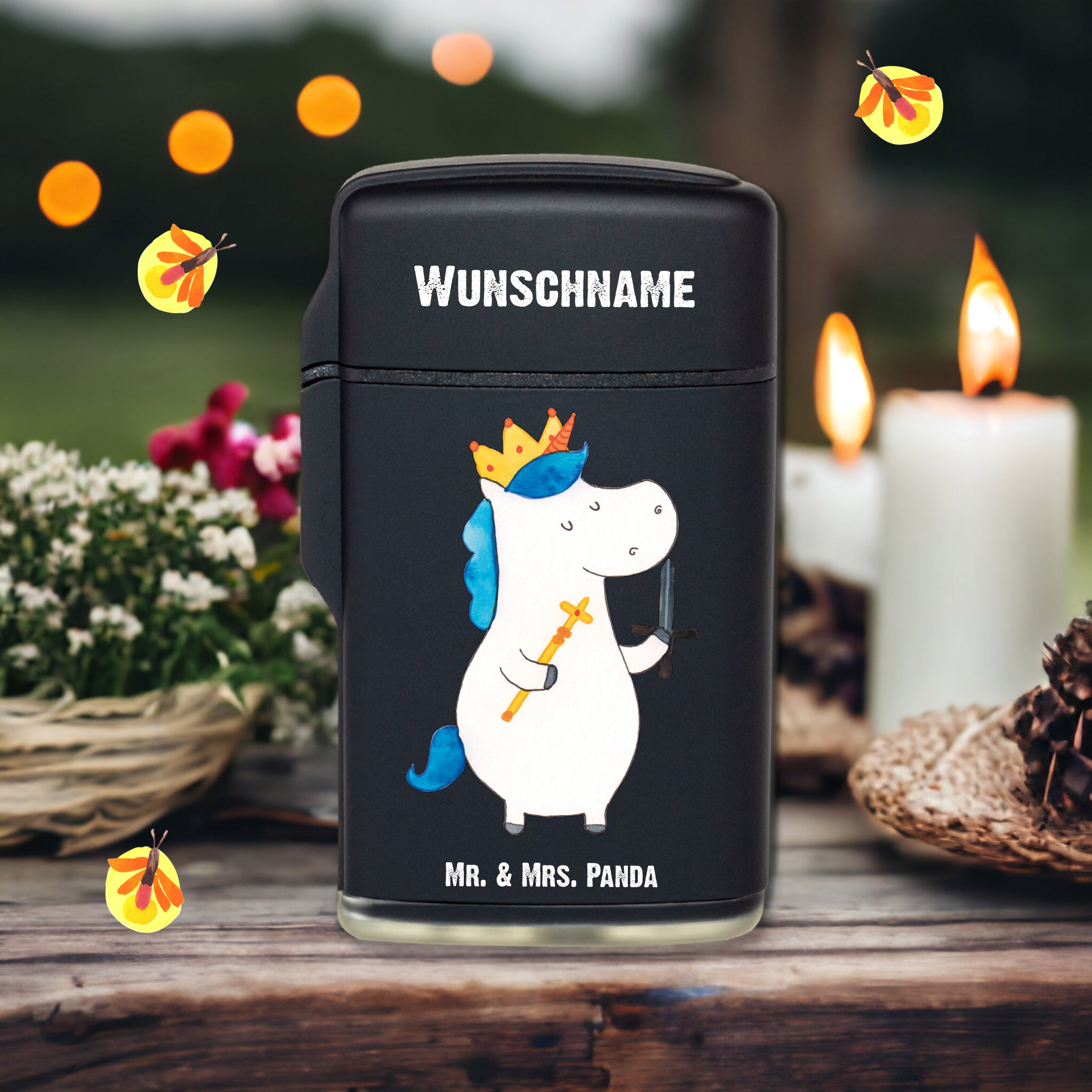 Personalisiertes Feuerzeug Einhorn König mit Schwert