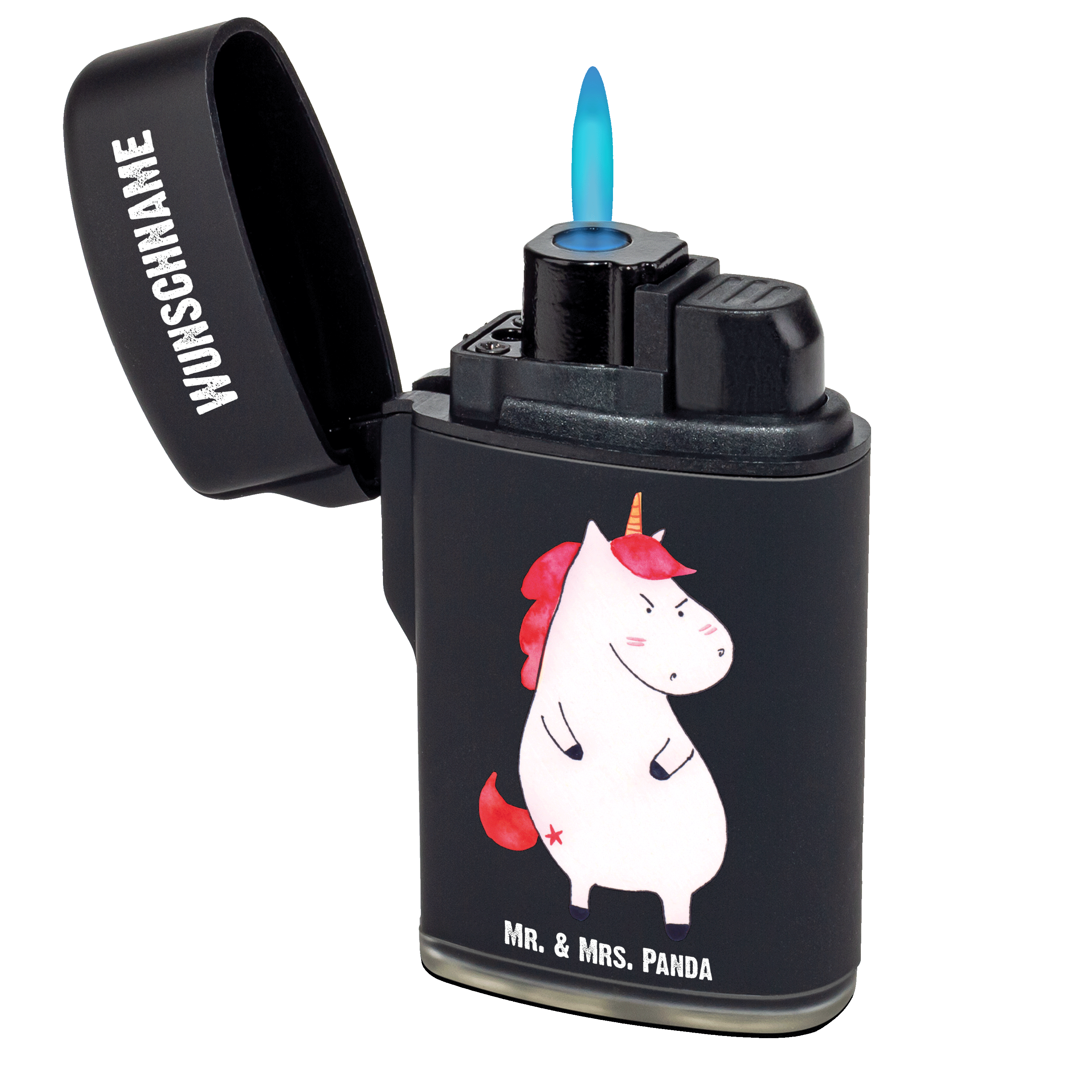 Personalisiertes Feuerzeug Einhorn wütend