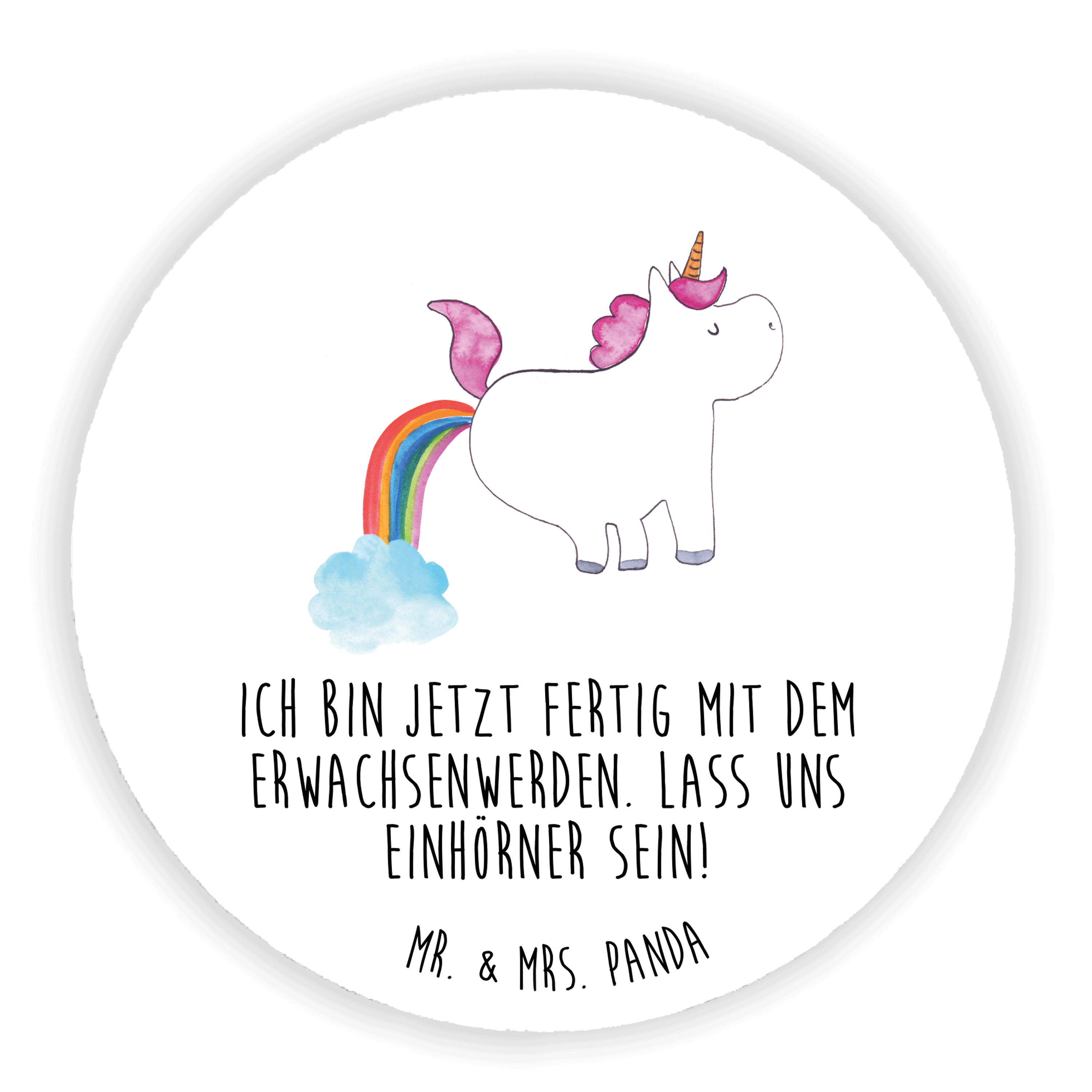 Das pupsende Einhorn ist die schönste Botschaft, um die Freundin zu fragen, ob sie das Erwachsensein manchmal auch nervt. Mit viel Glitzer über einen Regenbogen zu jagen macht auch irgendwie mehr Spaß als den Müll rauszubringen. Vielleicht ist das pupsende Einhorn daher eines der beliebtesten Motive von Mr. & Mrs. Panda.