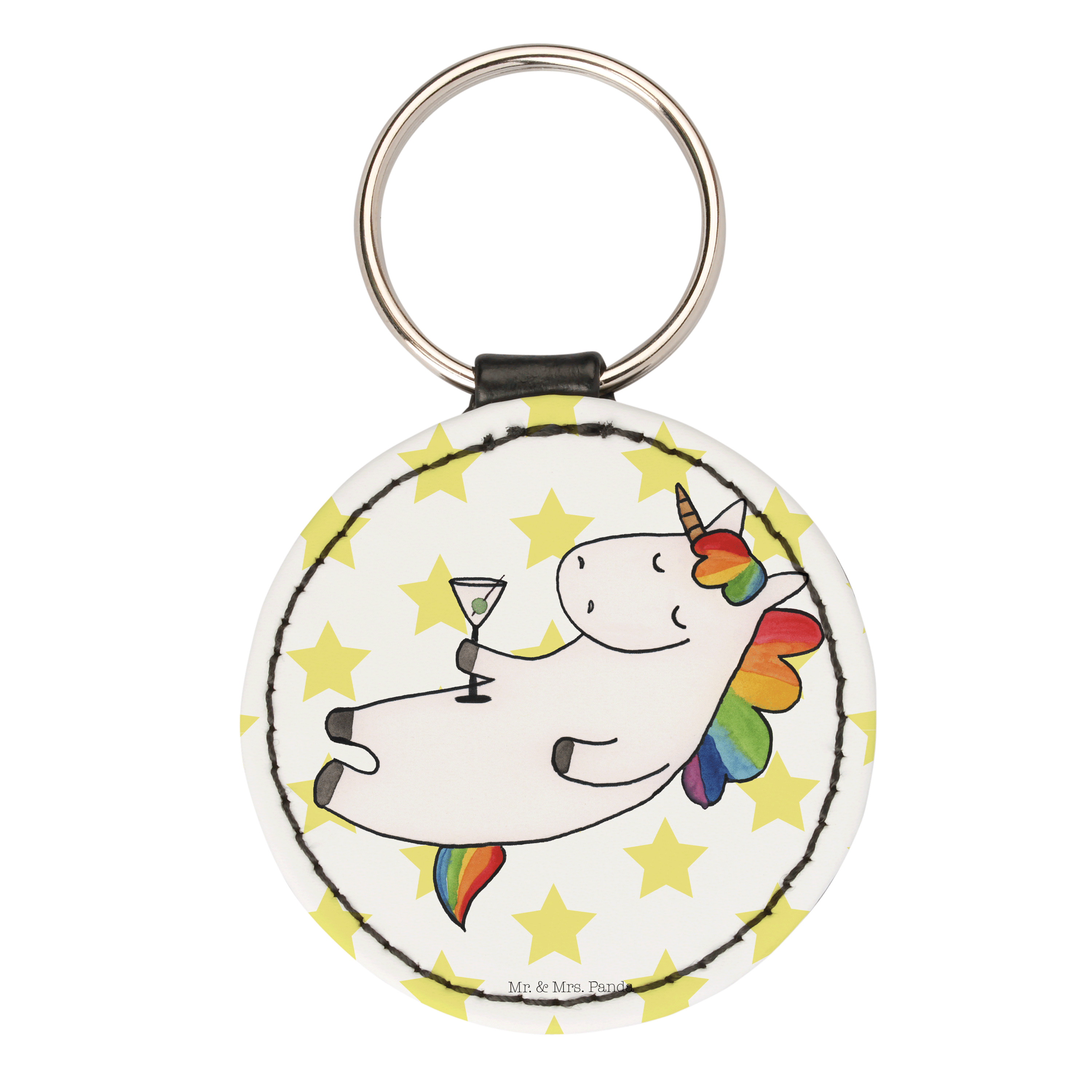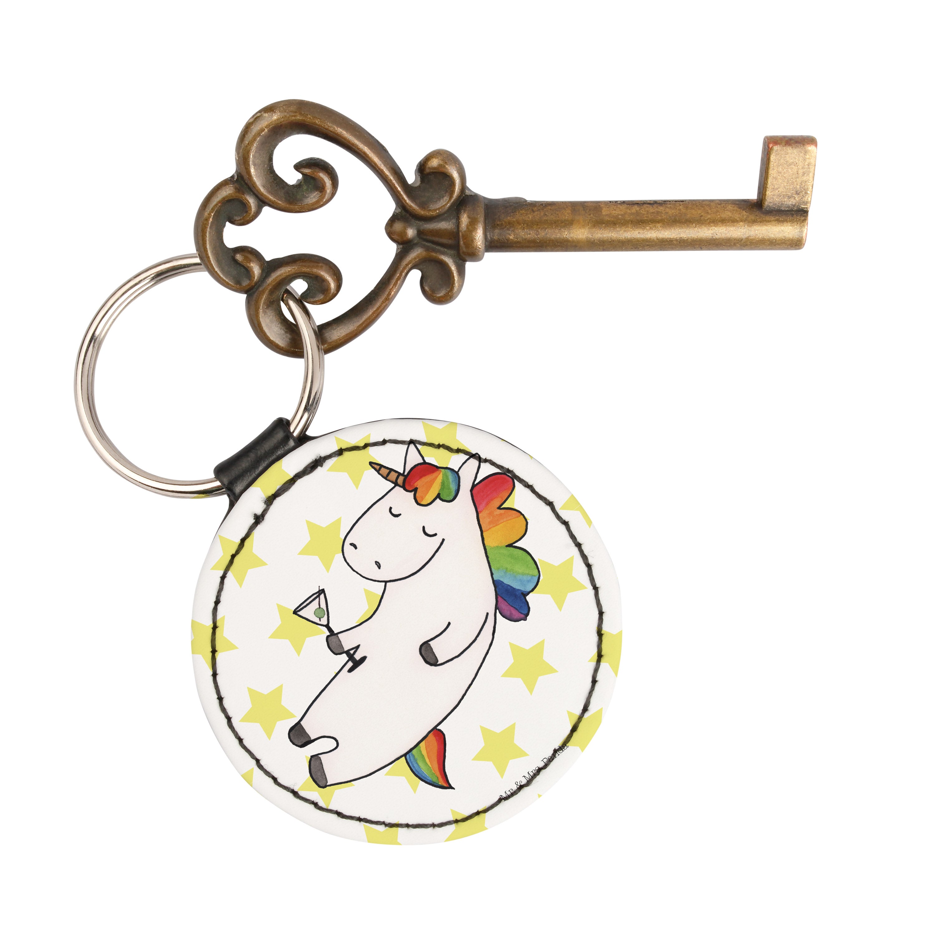 Rund Schlüsselanhänger Einhorn Cocktail - Weiß