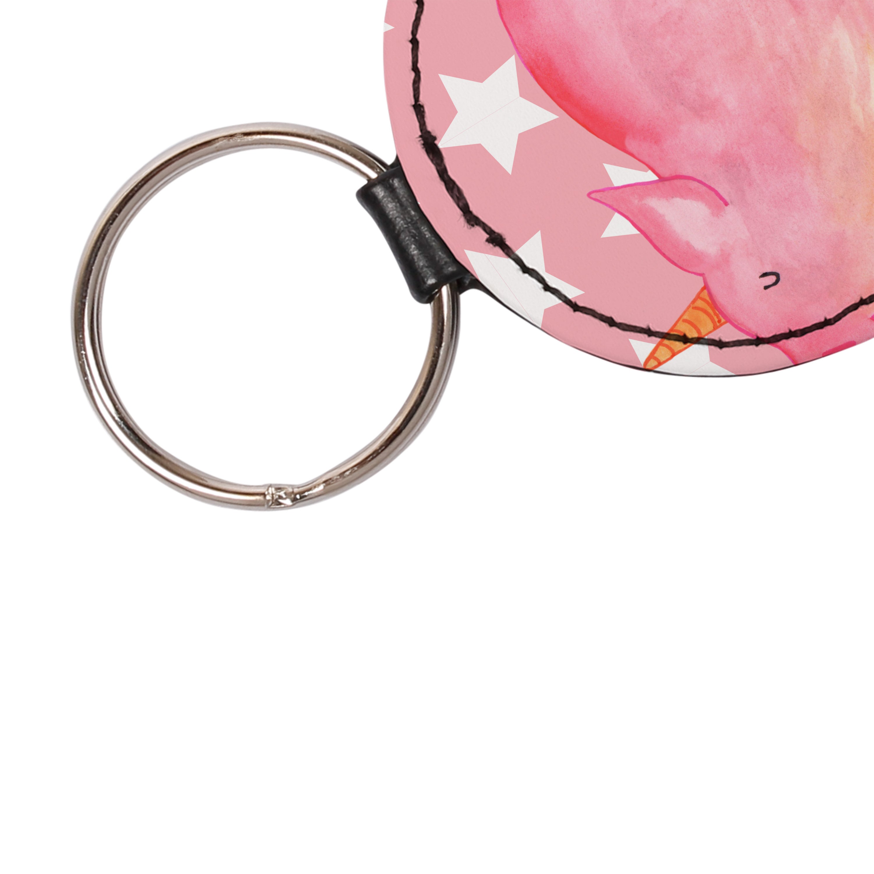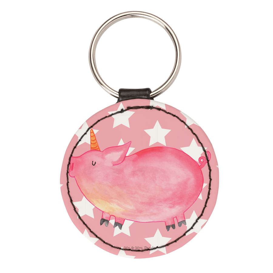 Rund Schlüsselanhänger Einhorn Schweinhorn - Rot Pastell