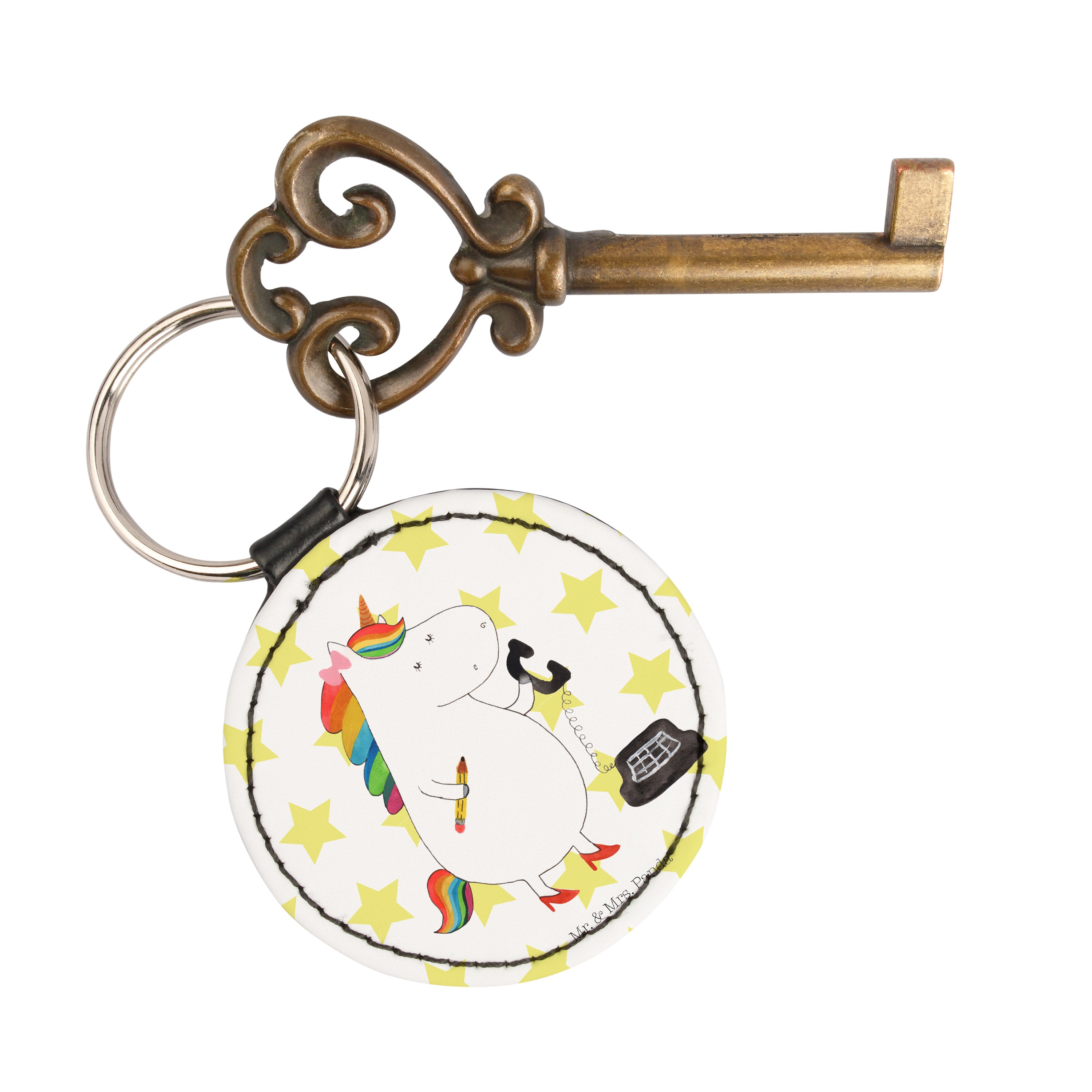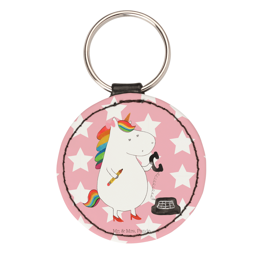 Rund Schlüsselanhänger Einhorn Sekretärin - Rot Pastell