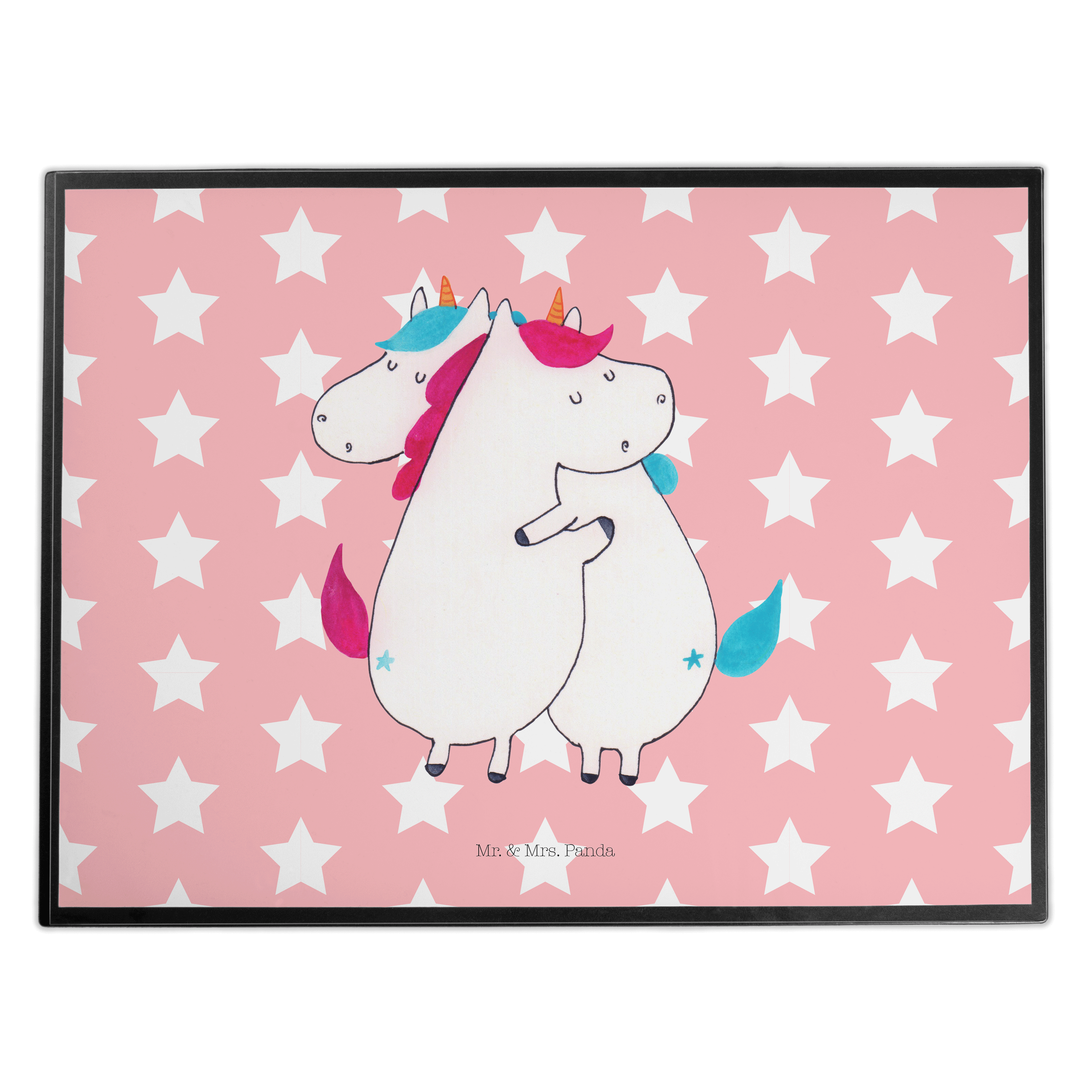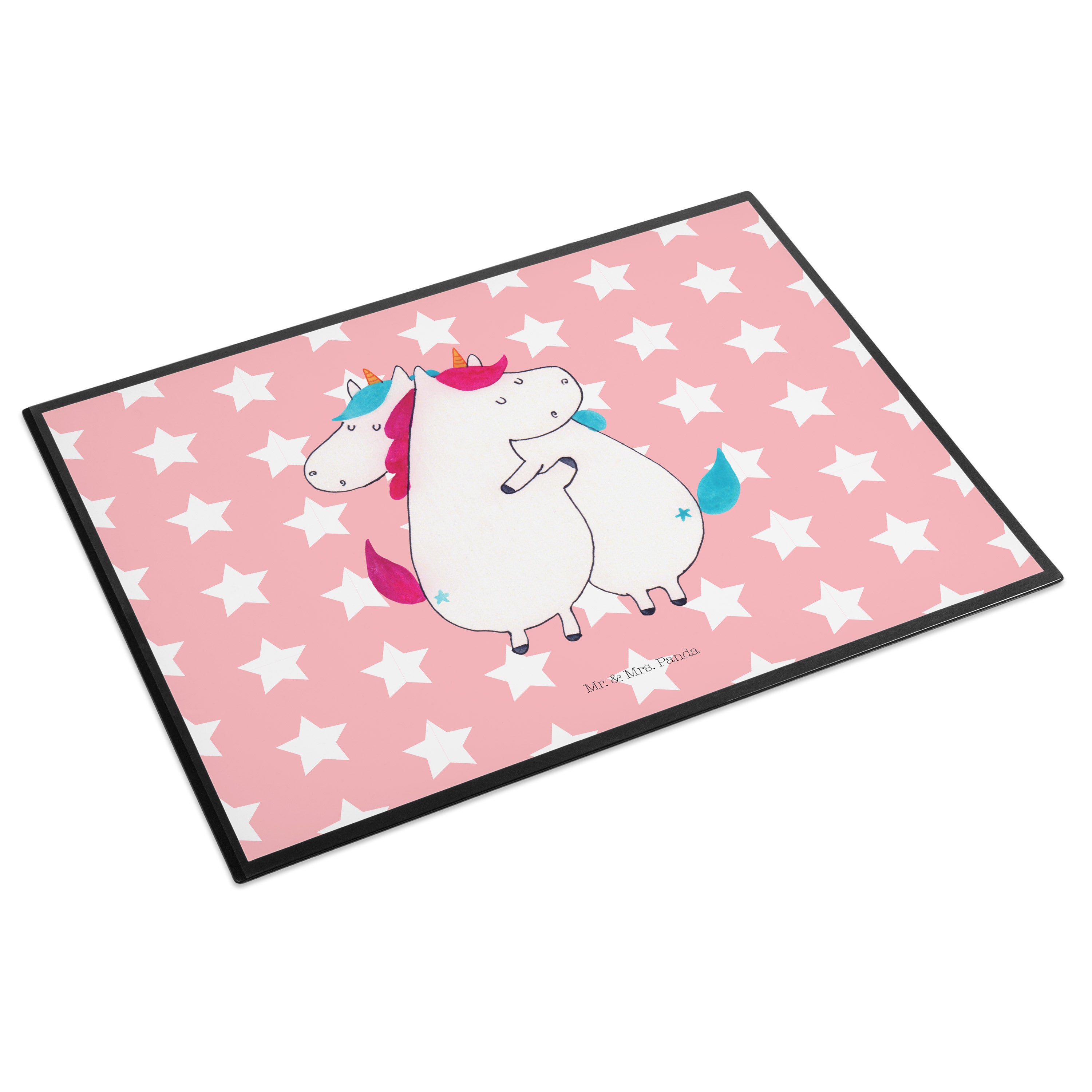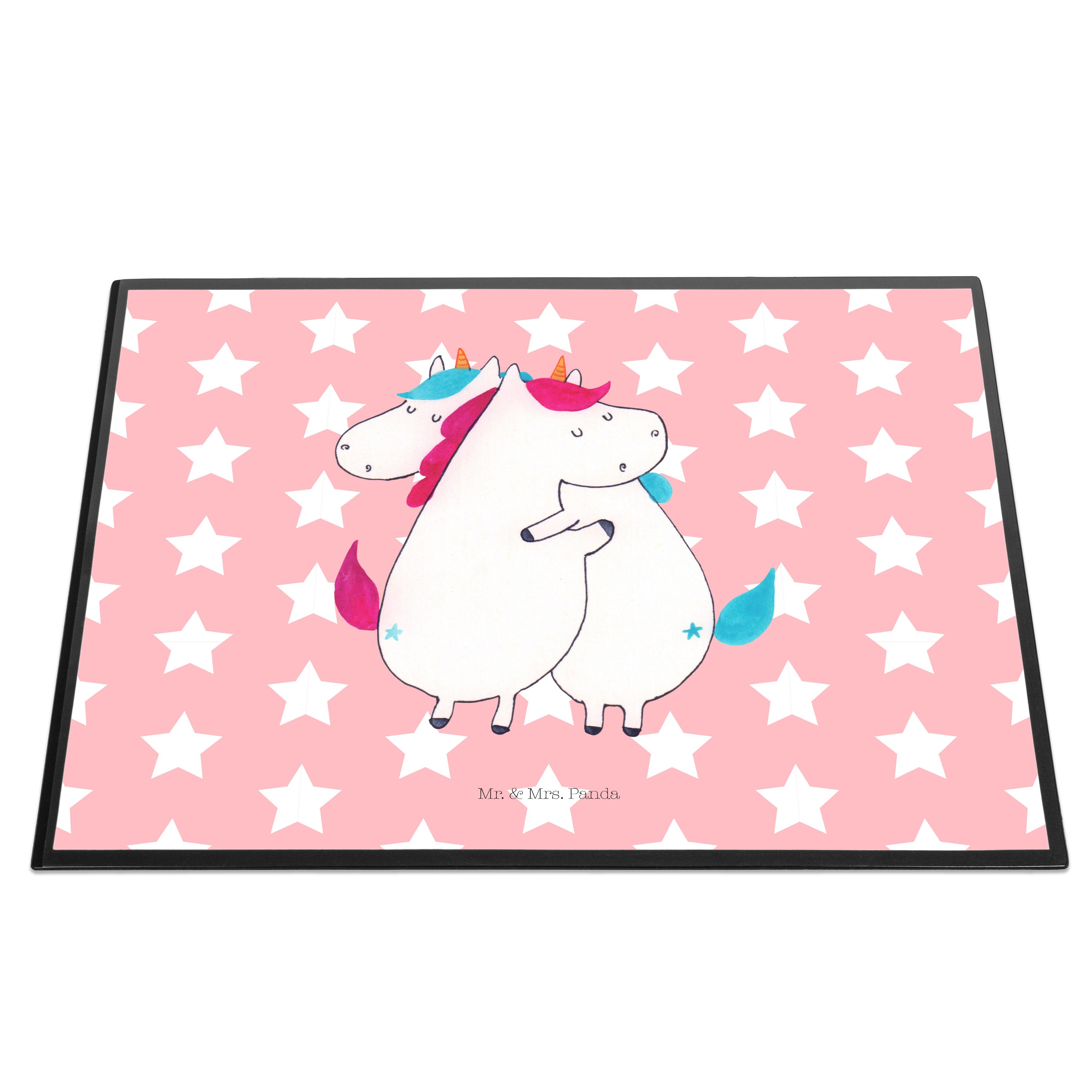 Schreibtischunterlage Einhörner Umarmen - mit Spruch - Rot Pastell