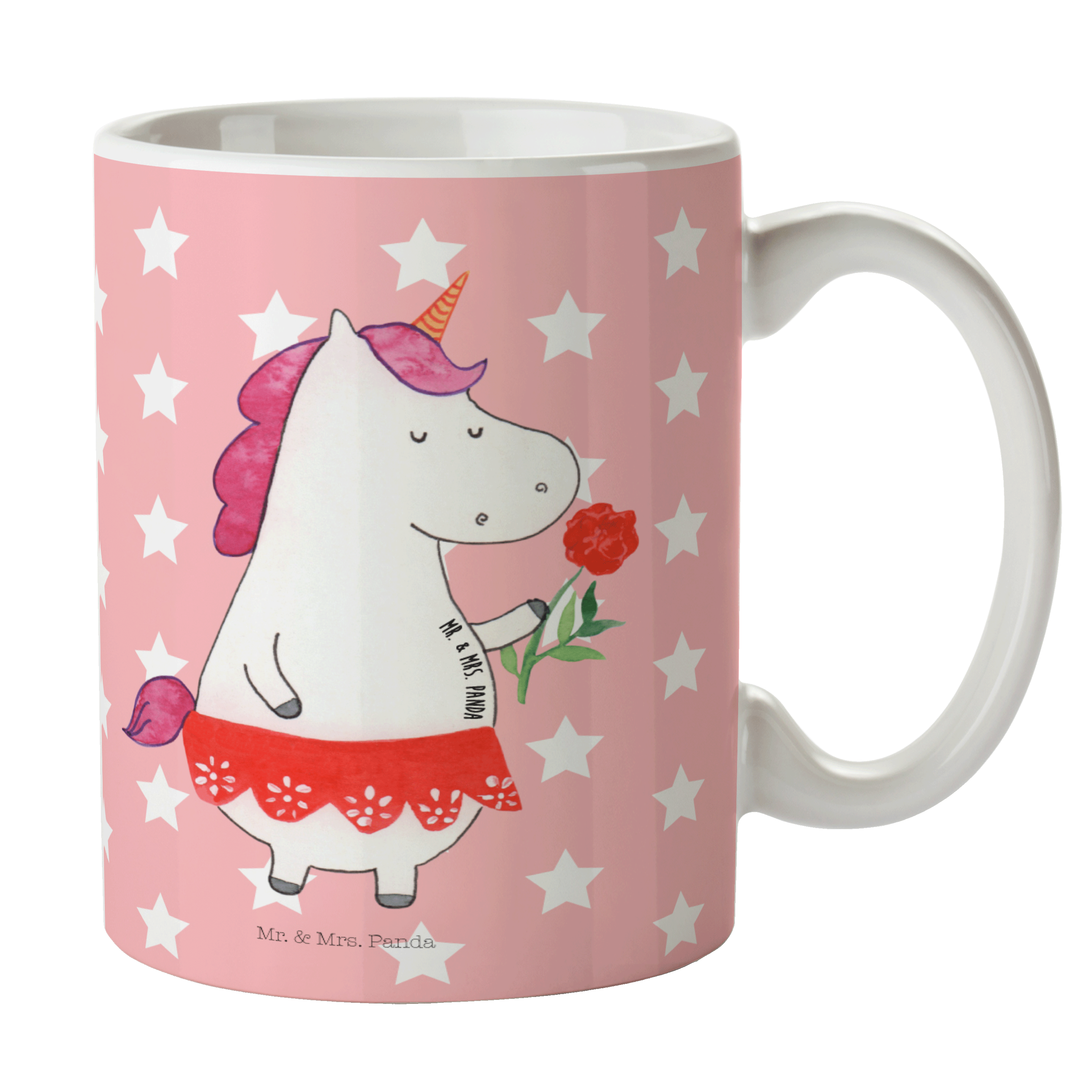 Tasse Einhorn Dame - mit Spruch - Rot Pastell