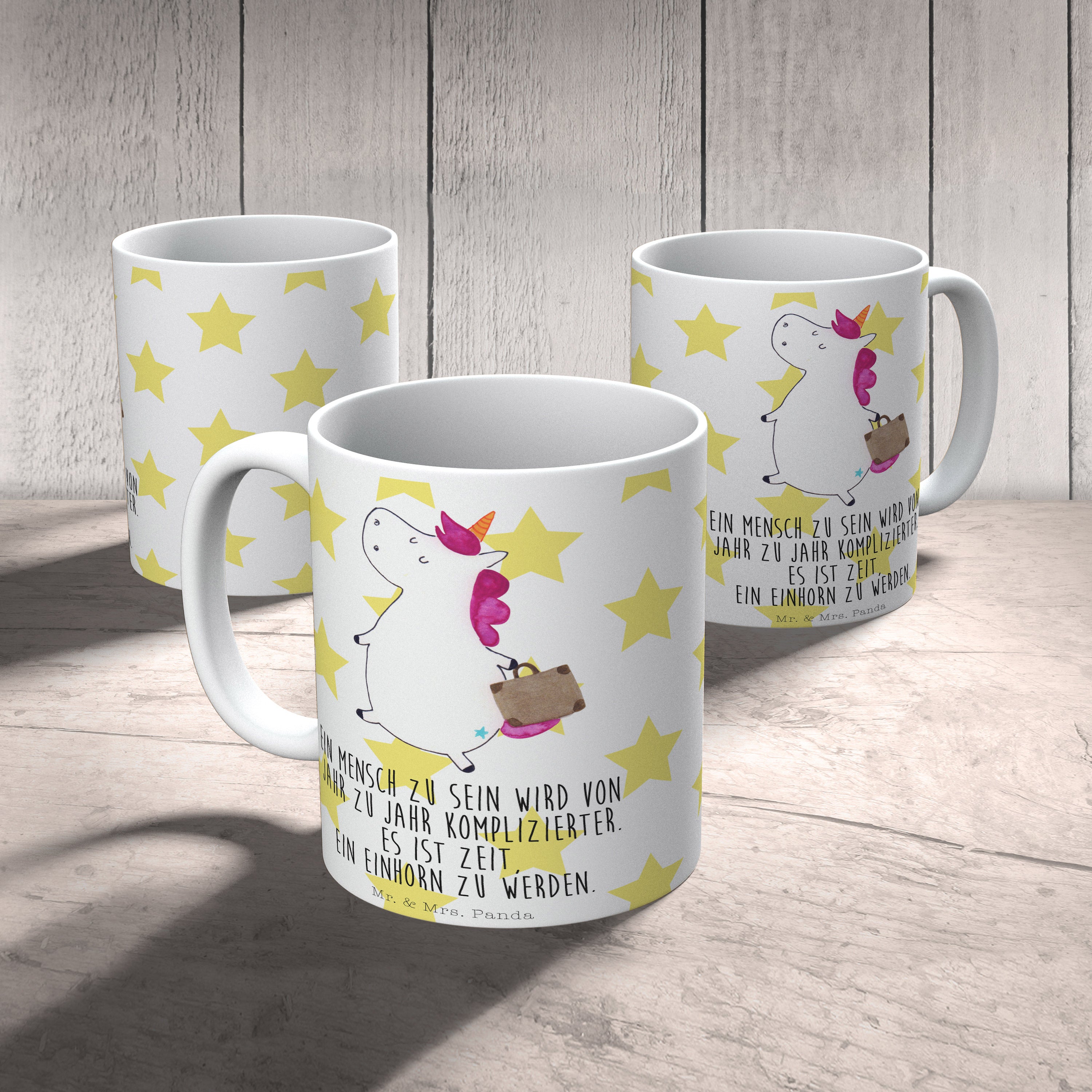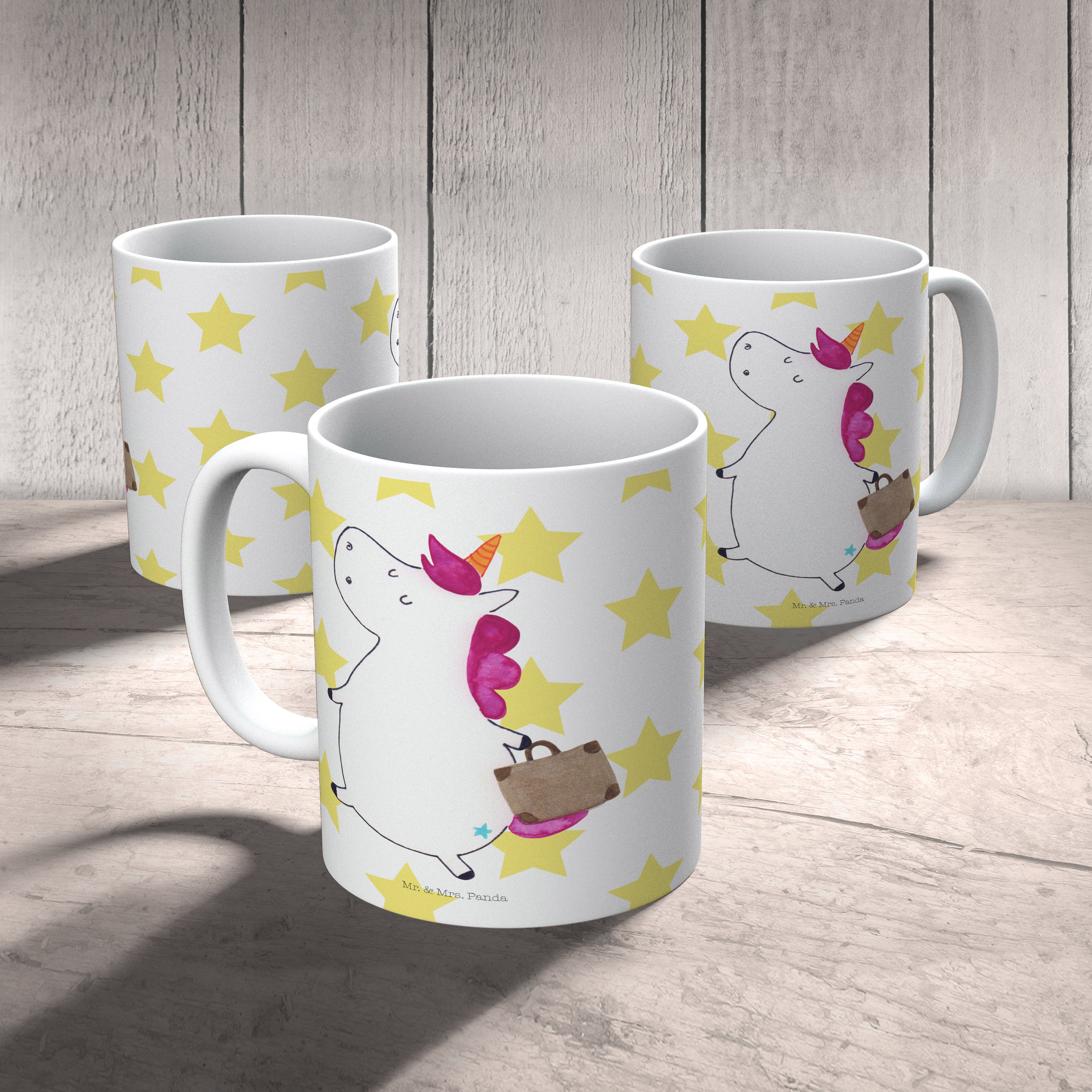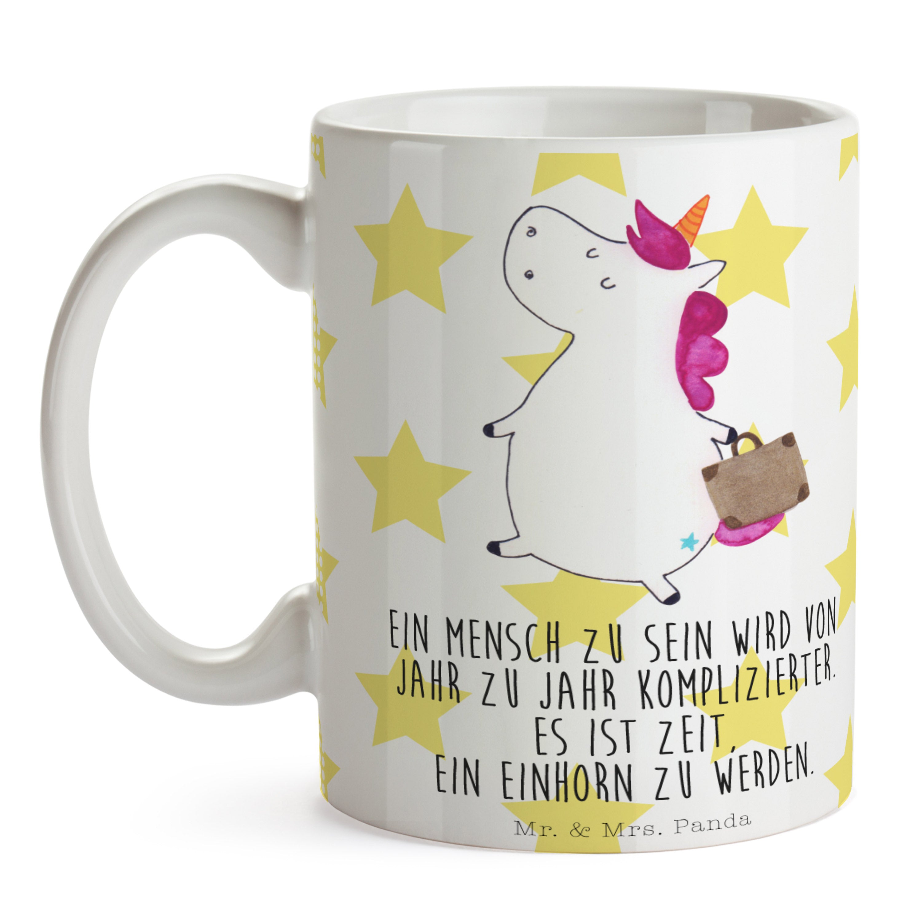 Tasse Einhorn Koffer Einhorn, unicorn, Einhörner, Koffer, Verreisen, Reise, Gepäck, Abenteuer, Erwachsen, Kind, albern, Spaß, lustig, witzig,  Becher, Kaffeetasse, Kaffeebecher, Tee, Frühstück, Büro  Einhorn, Einhörner, Einhorn Deko, Pegasus, Unicorn