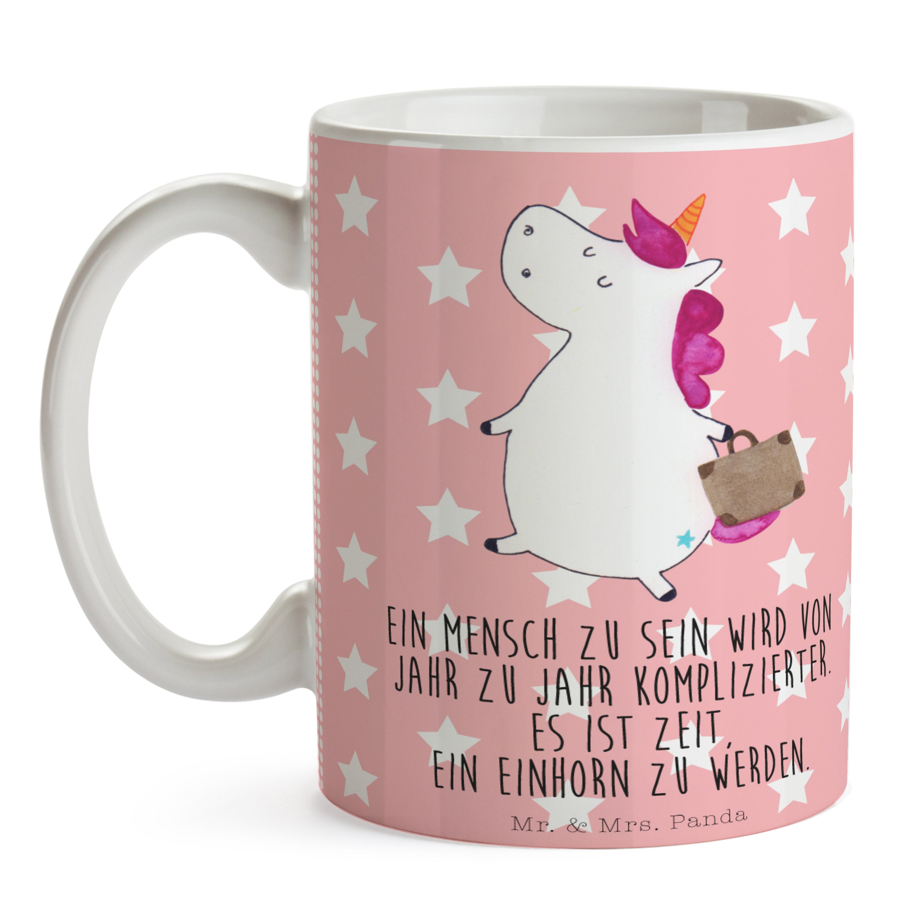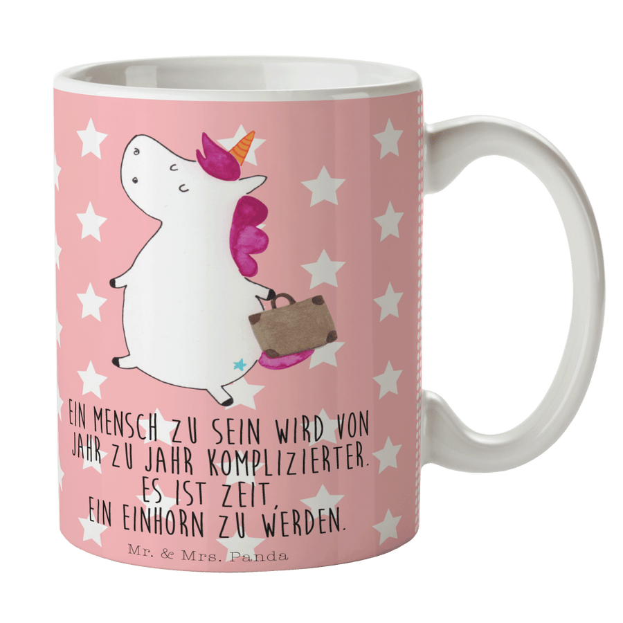 Tasse Einhorn Koffer - mit Spruch - Rot Pastell