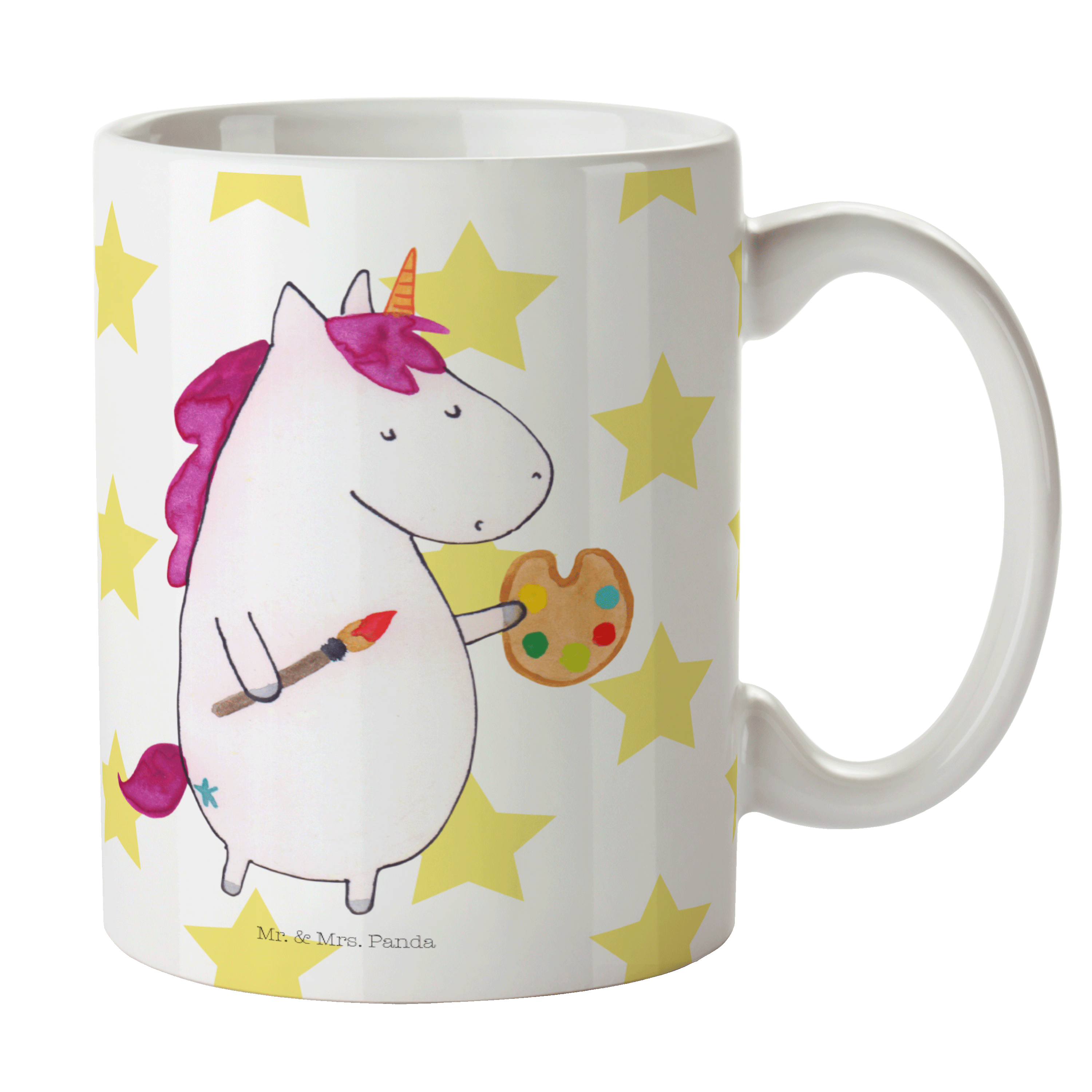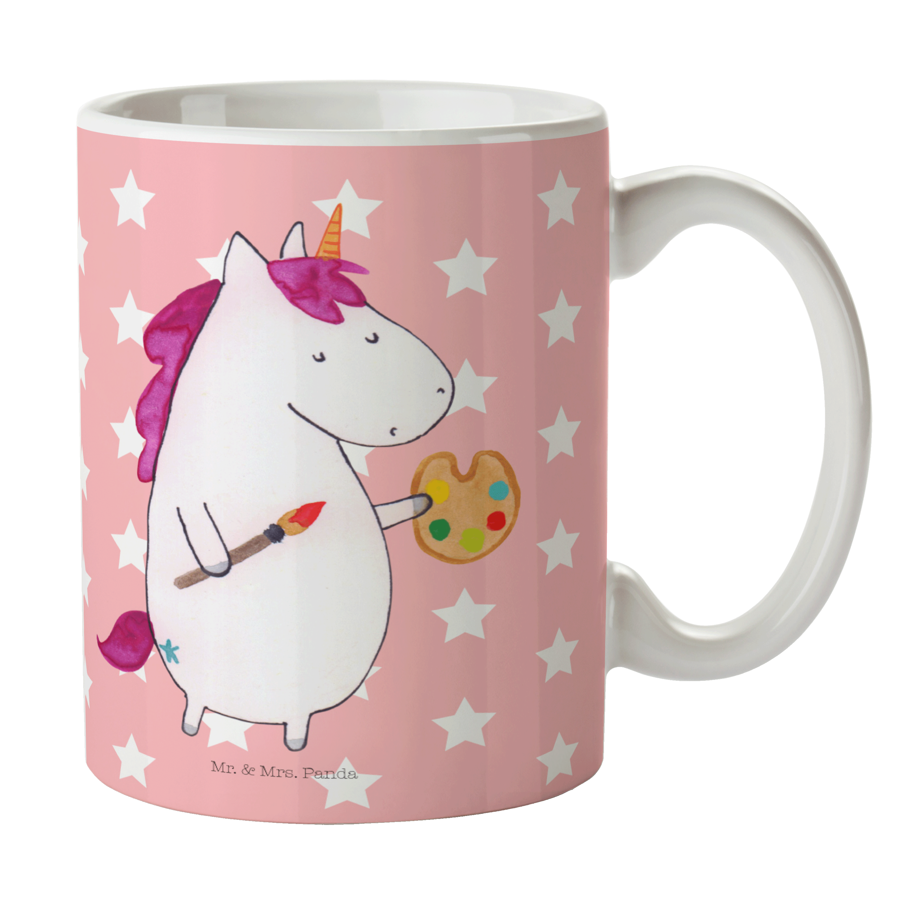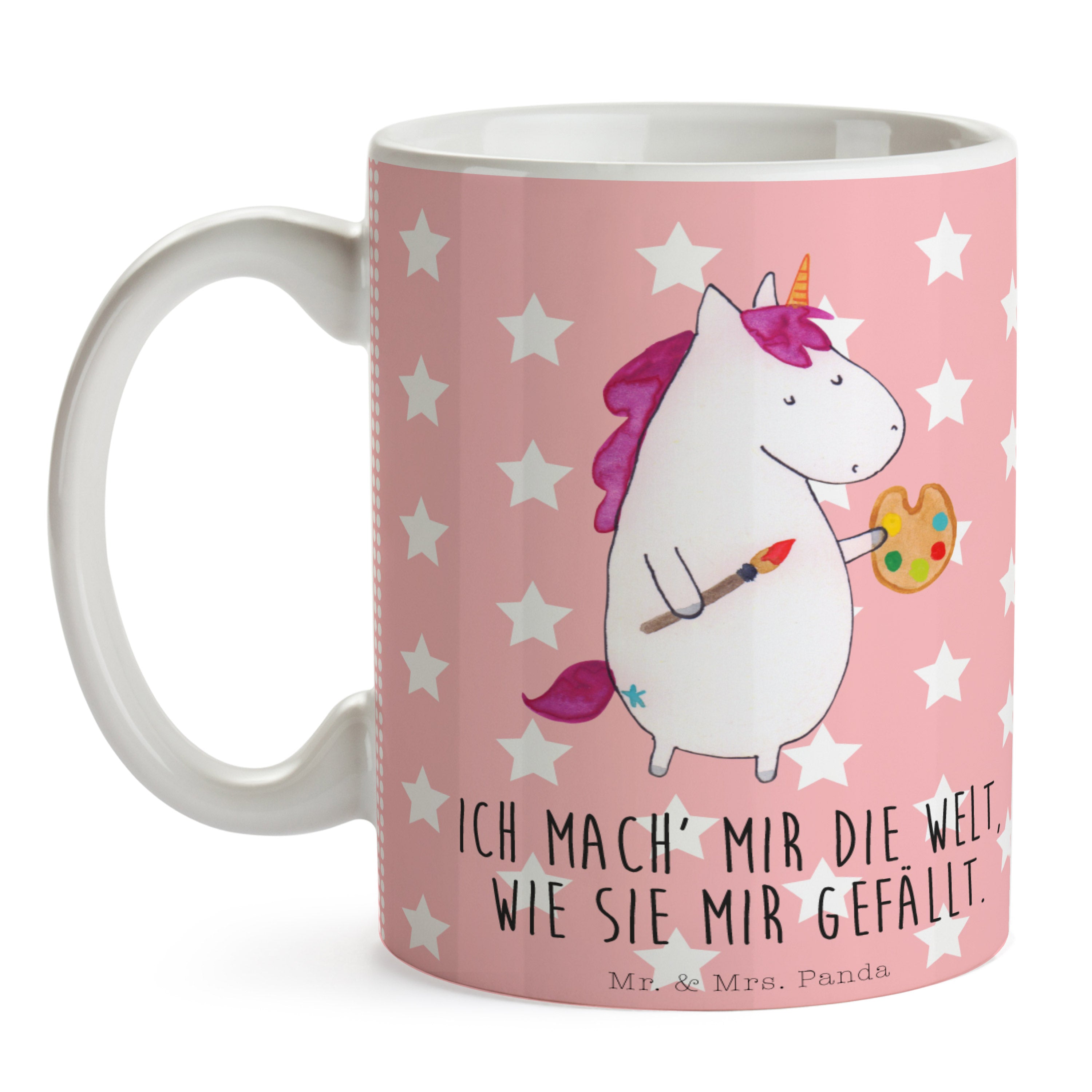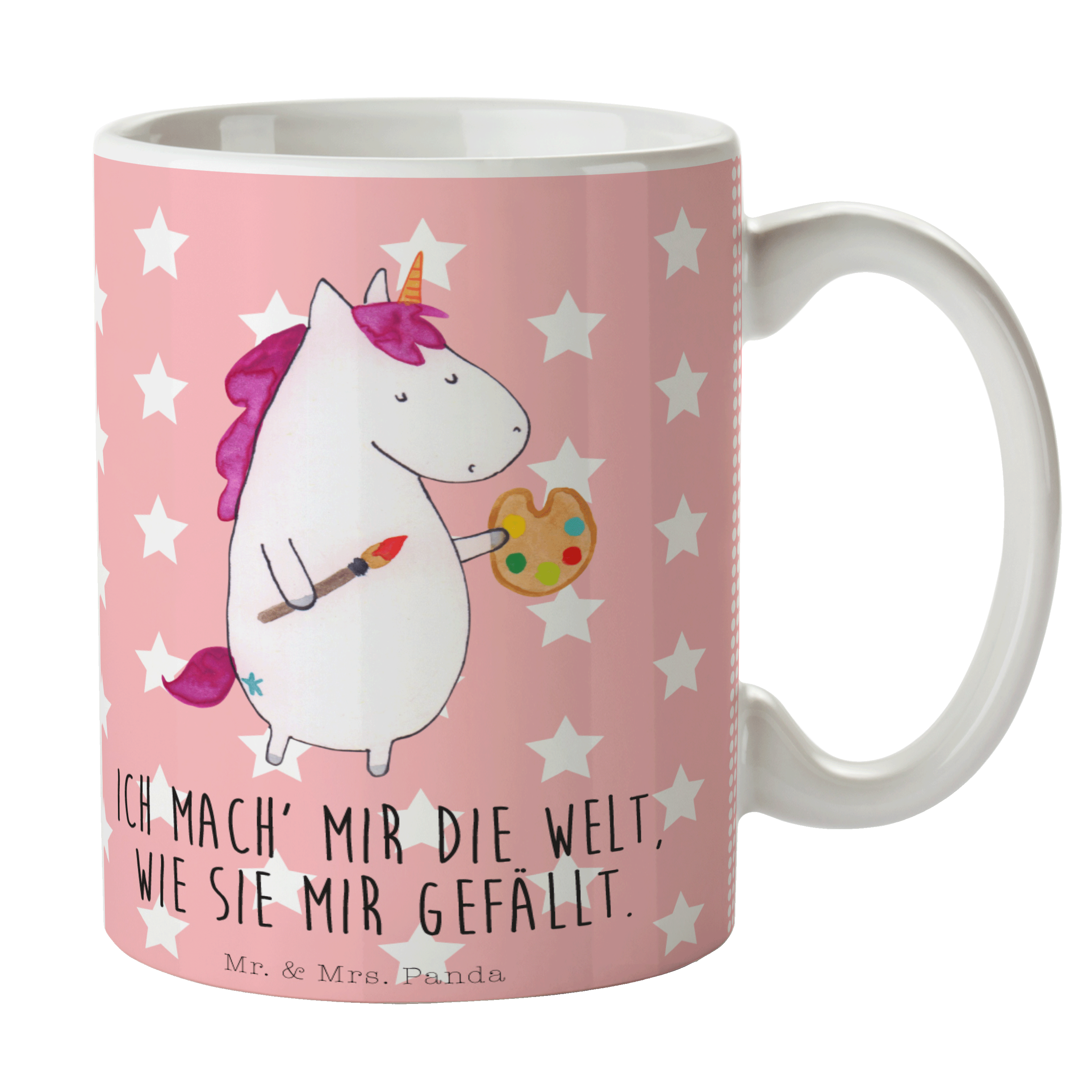 Tasse Einhorn Künstler - mit Spruch - Rot Pastell