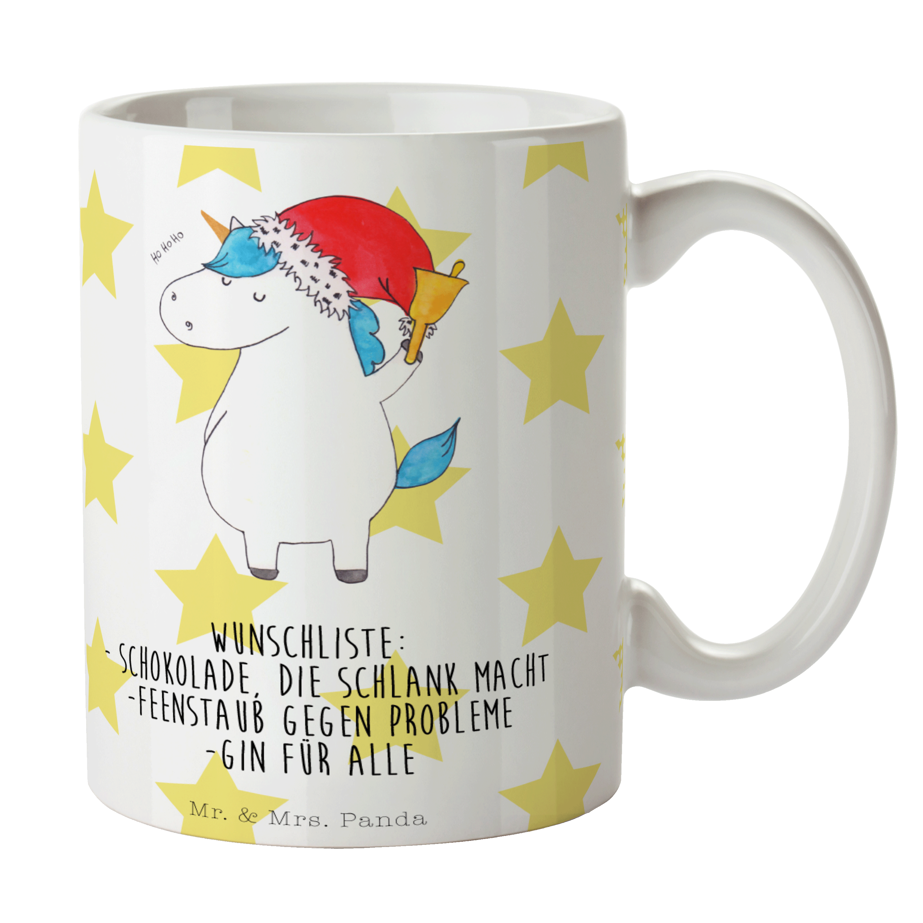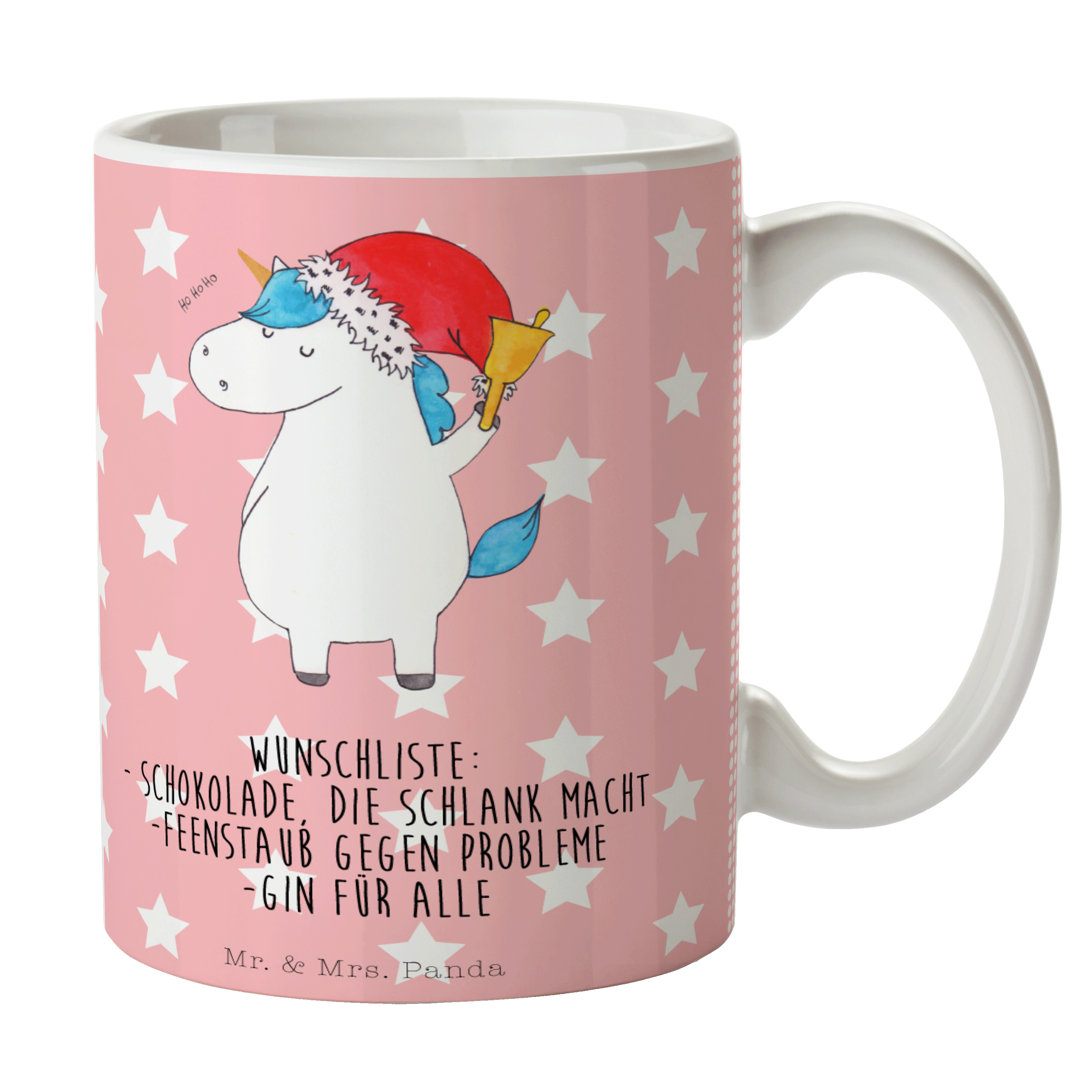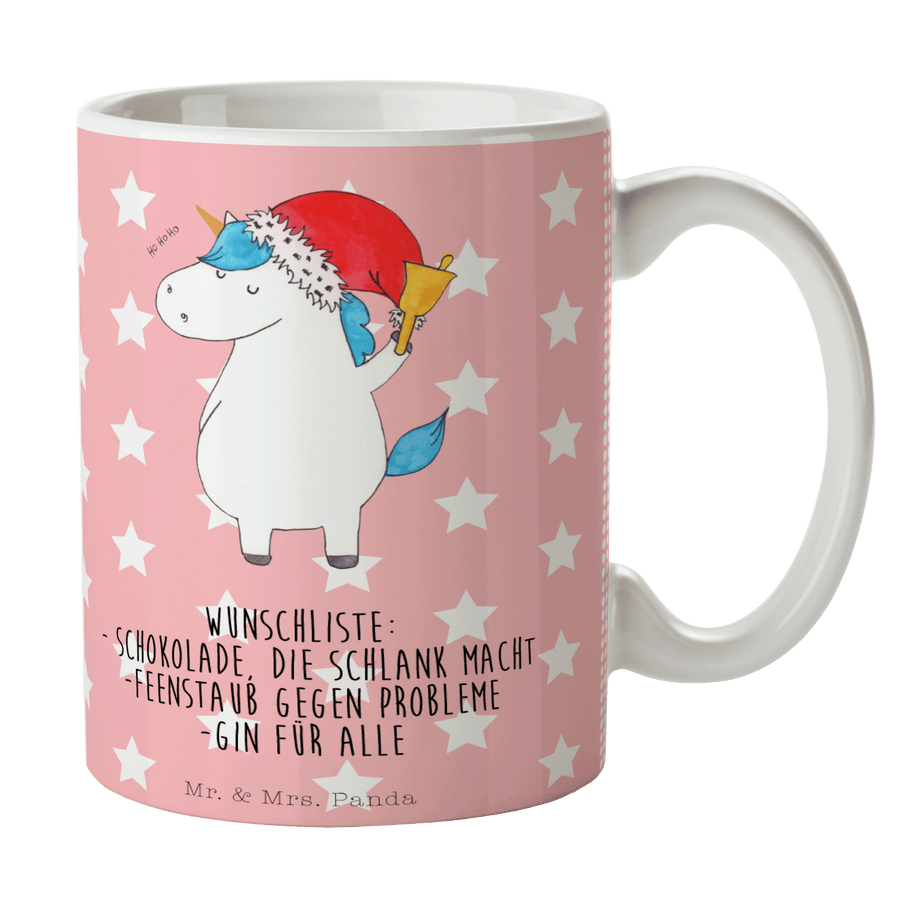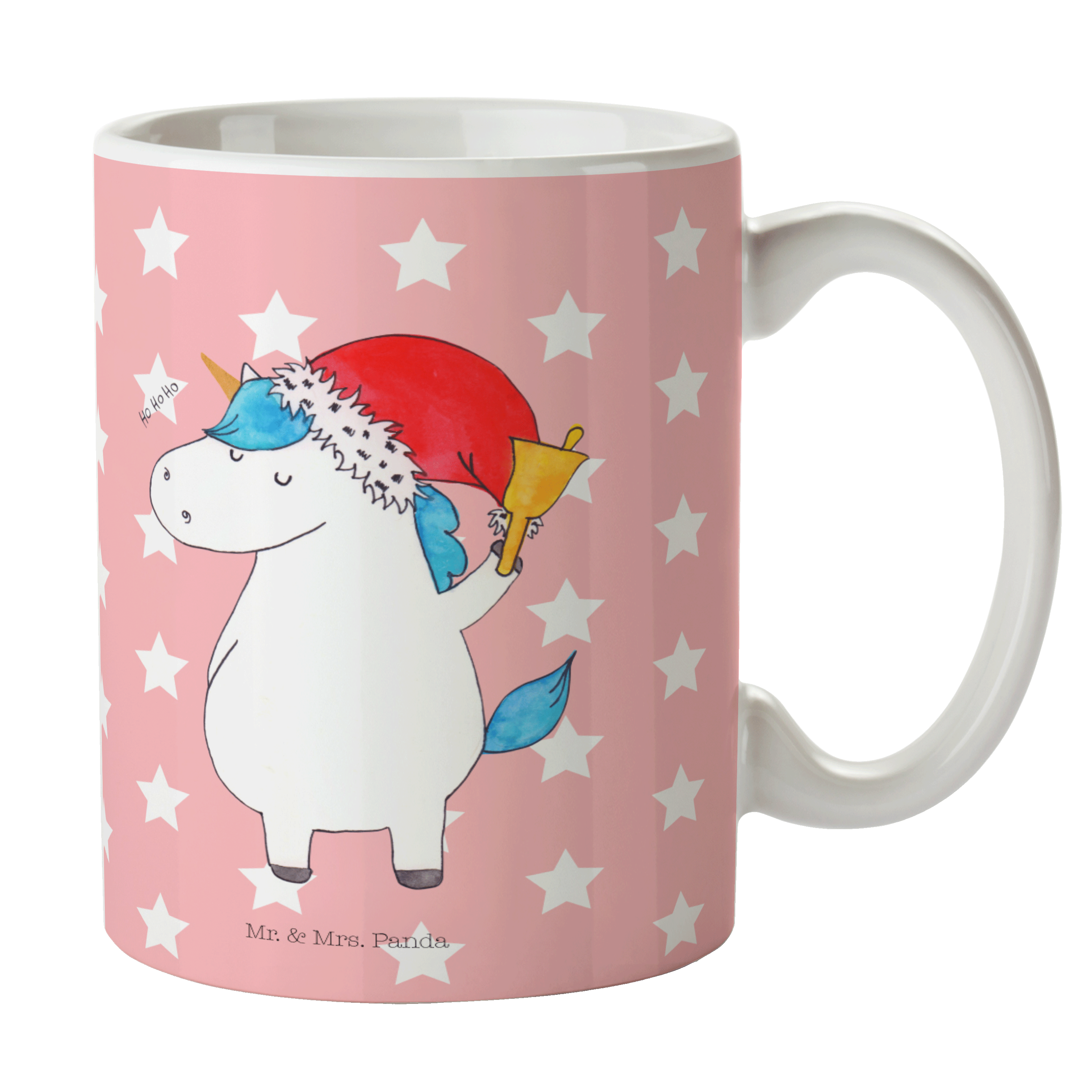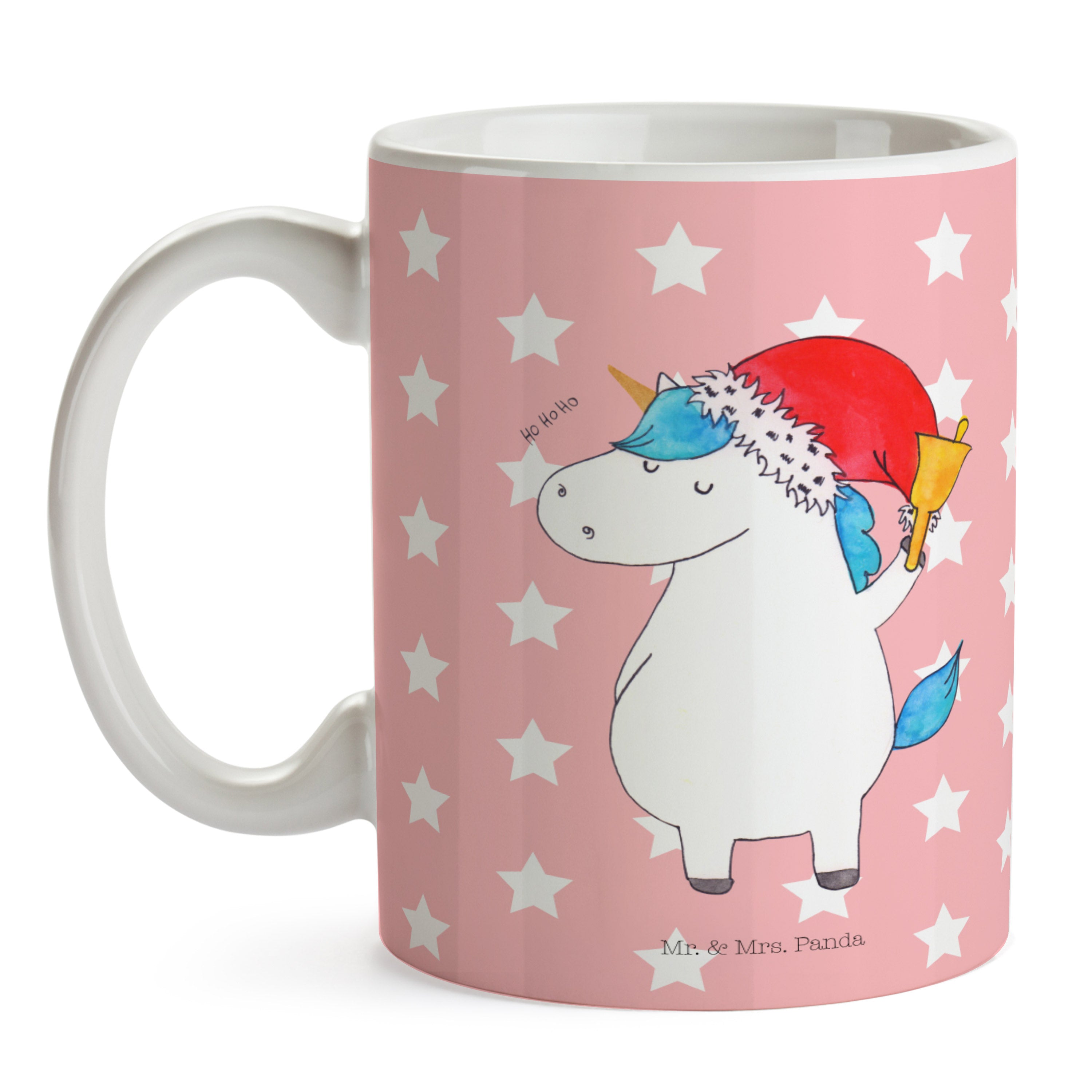 Tasse Einhorn Weihnachtsmann - mit Spruch - Rot Pastell