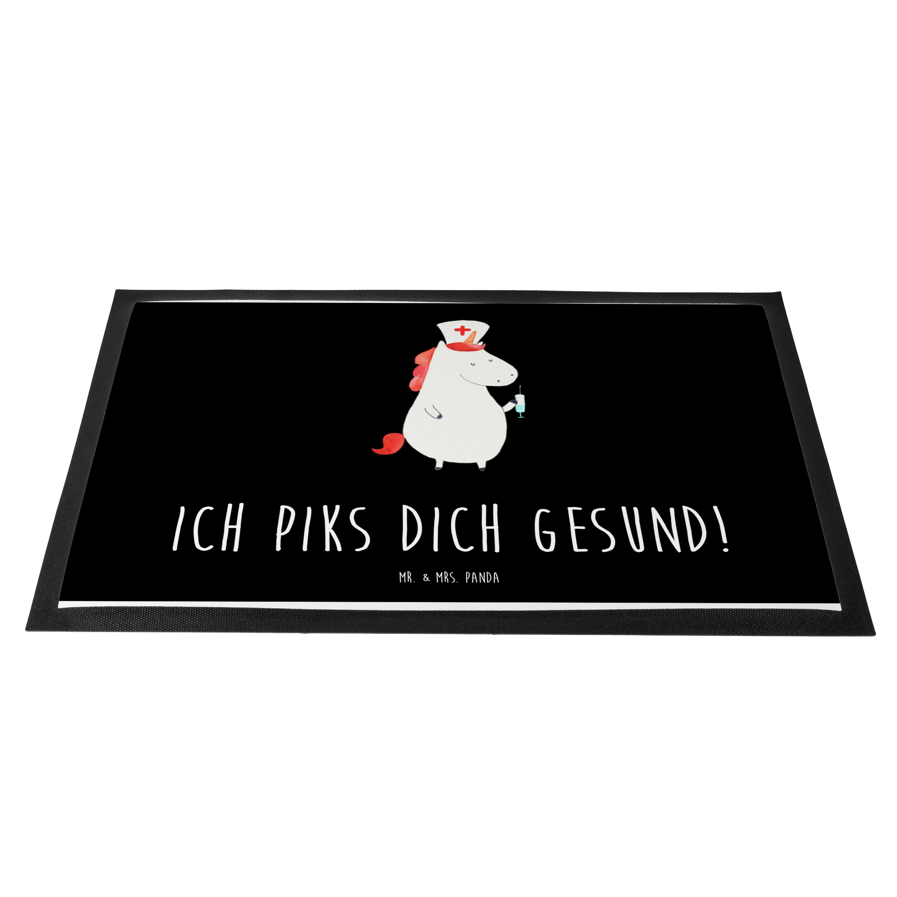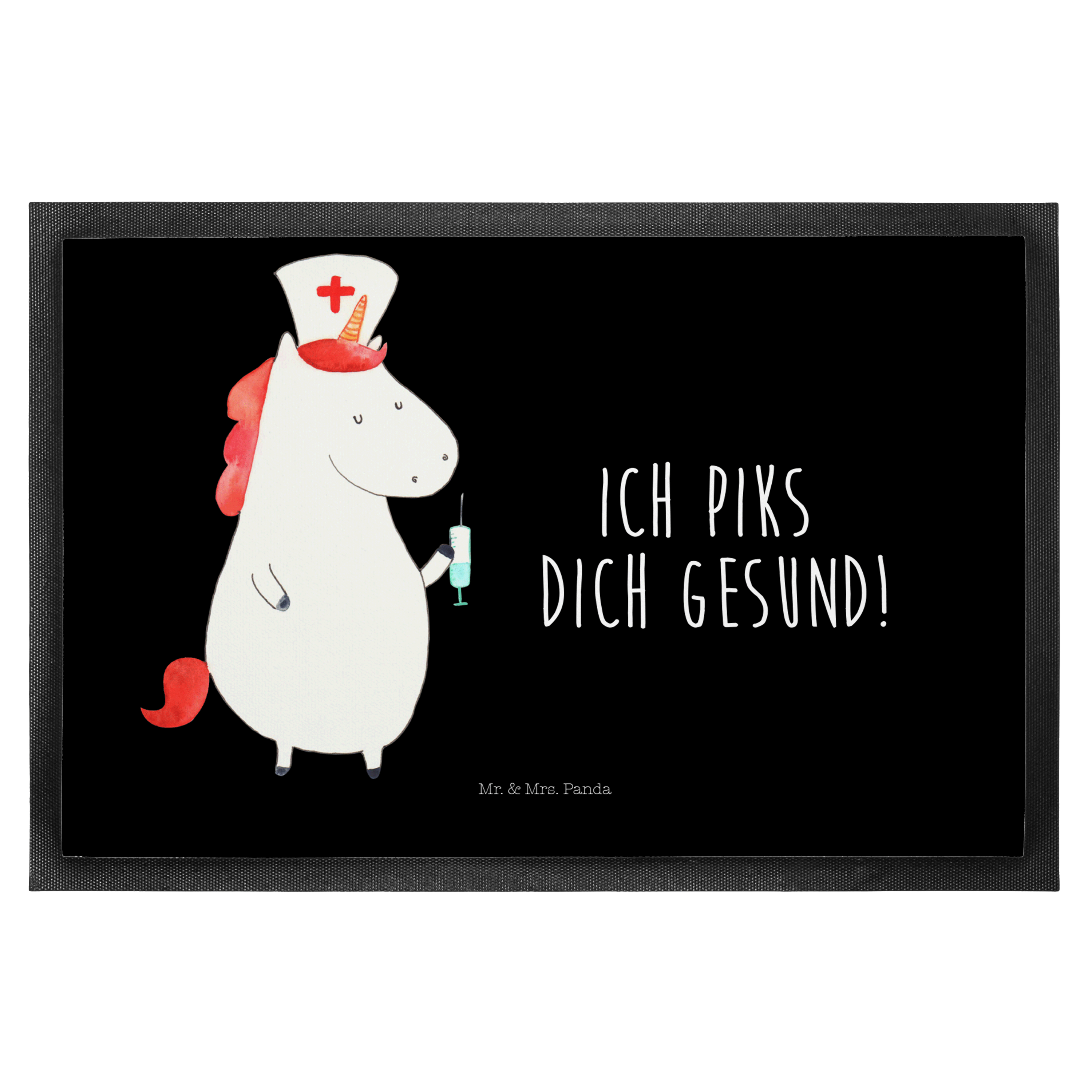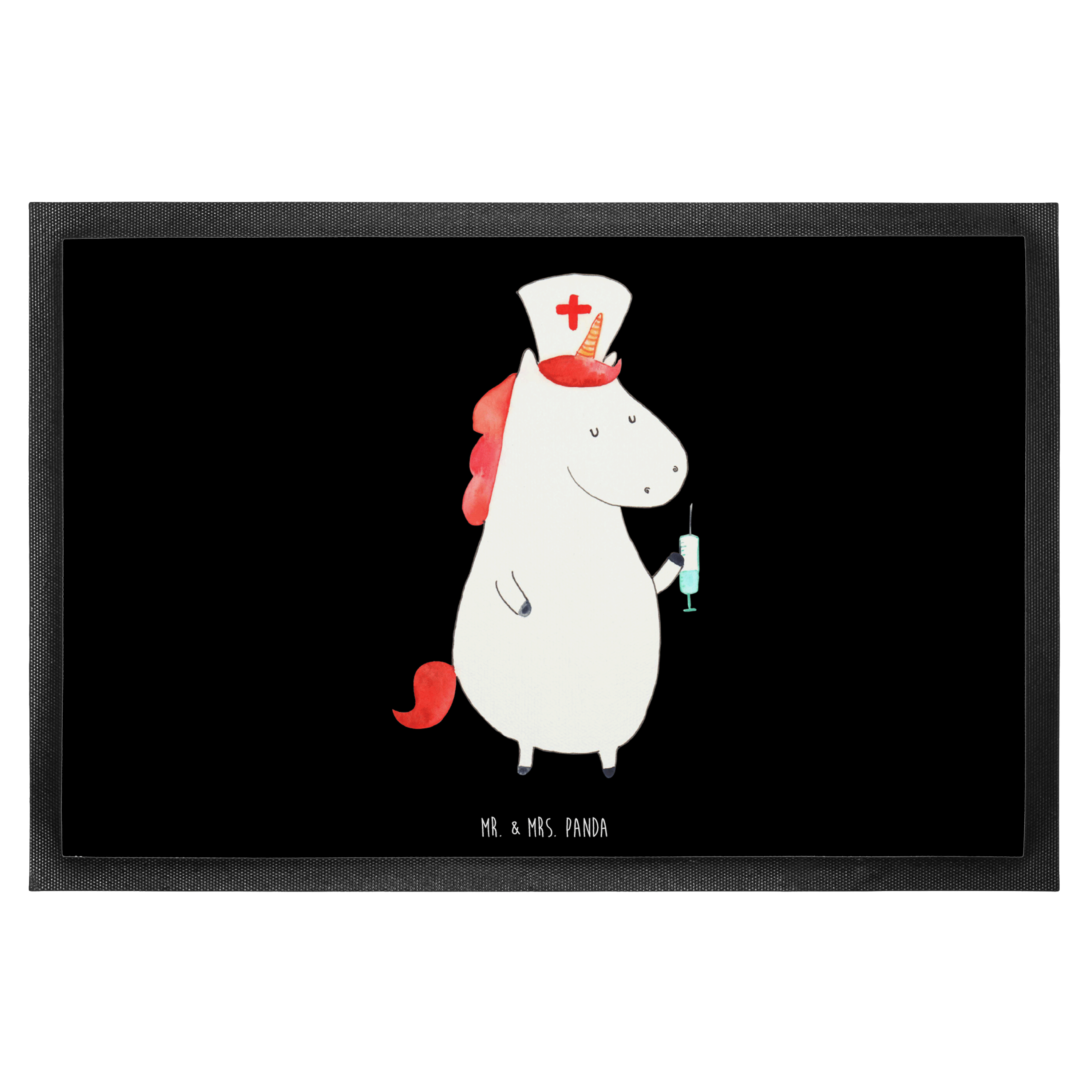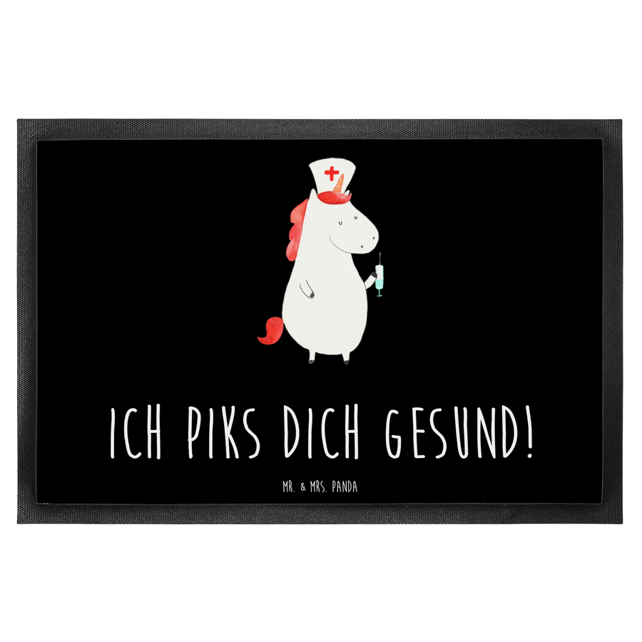 Fußmatte Einhorn Krankenschwester - 60 x 90 cm - mit Spruch - Schwarz